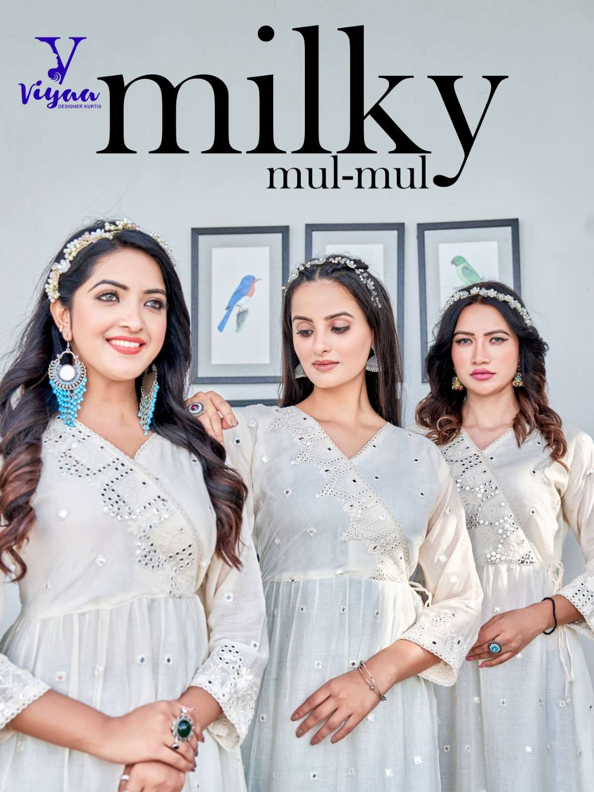 viyaa designer present milky mul mul beautiful anarkali ghera kurtis