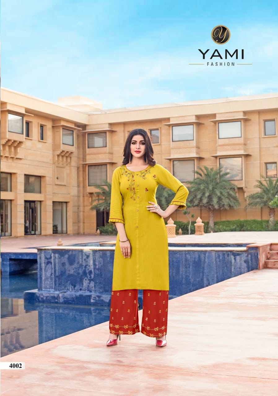 Yami Fashion Present Chemistry Rayon With Embroidery Kurti With Plazzo