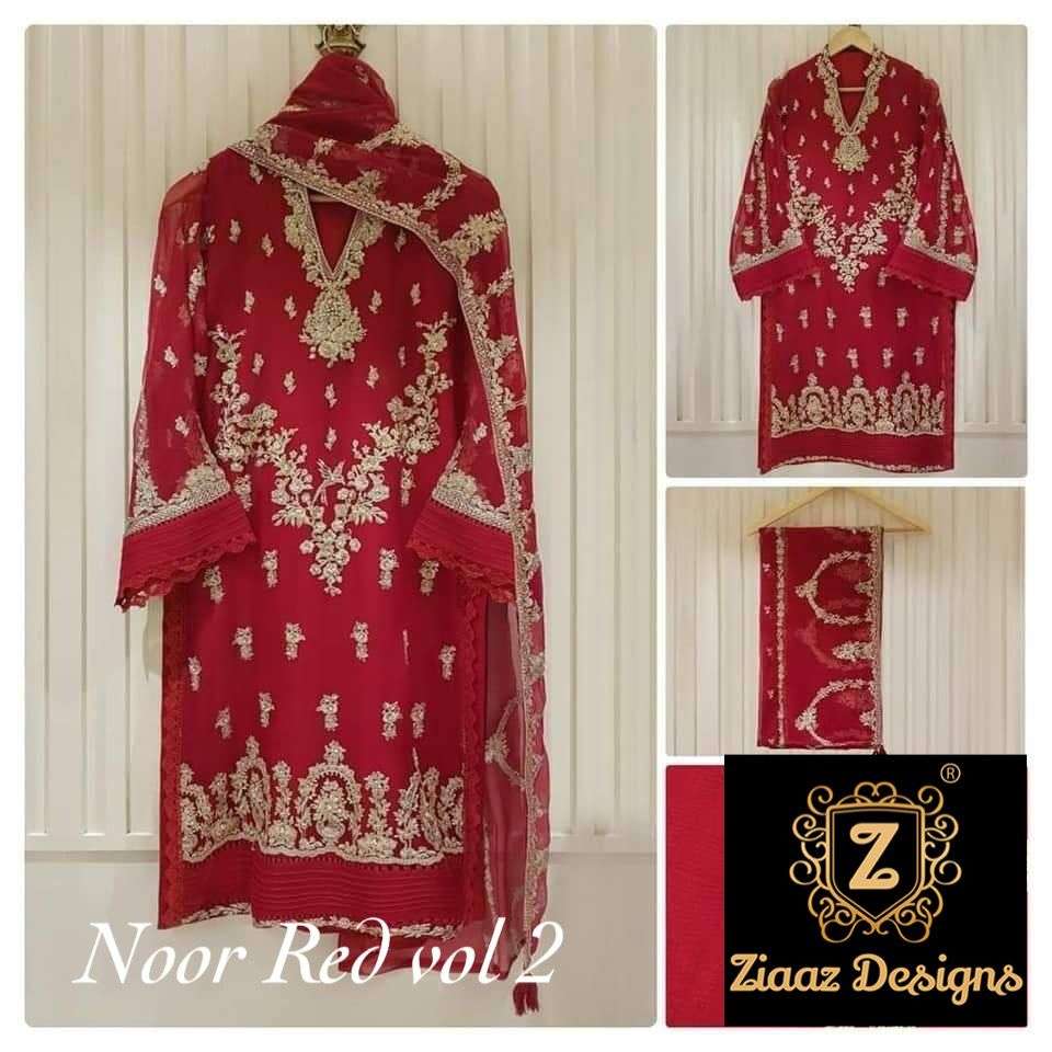 noor red vol 2 by ziaaz exclusive dori work pakistani full stitch suit wholesaler