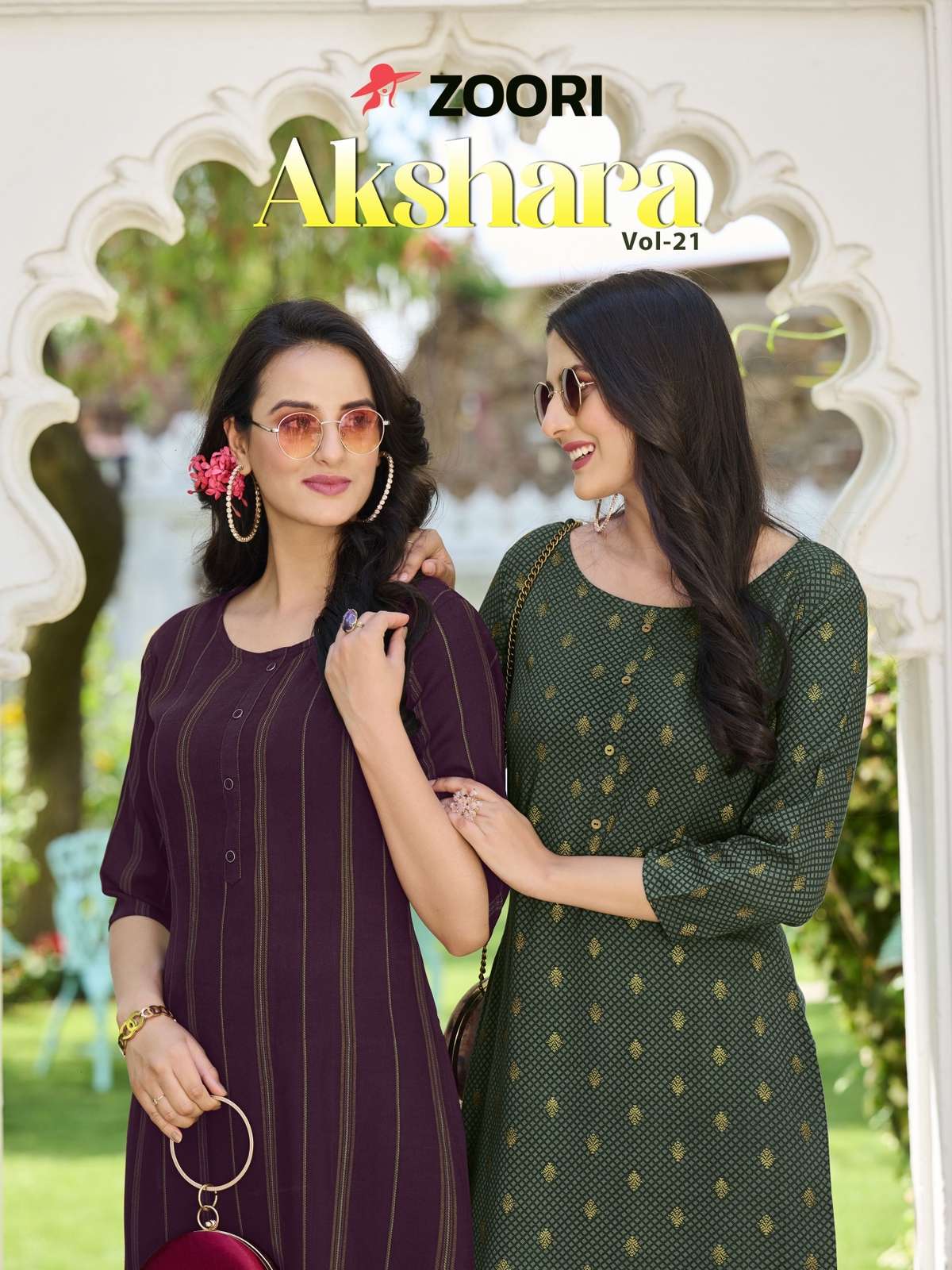 zoori akshara vol 26 stitched fancy rayon straight kurti catalog