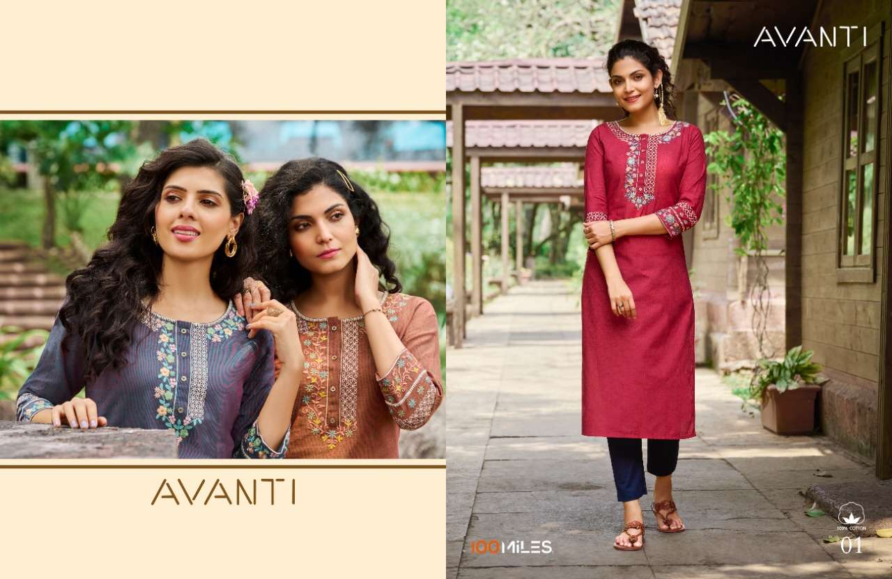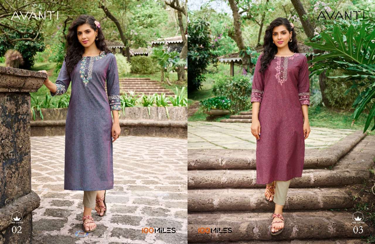 Catalog : AVANTI Style : Pure yarn dyed Jaquard Cotton fancy embroidered work kurti. BRAND : 100MILES®️ SIZES : S to 3XL |