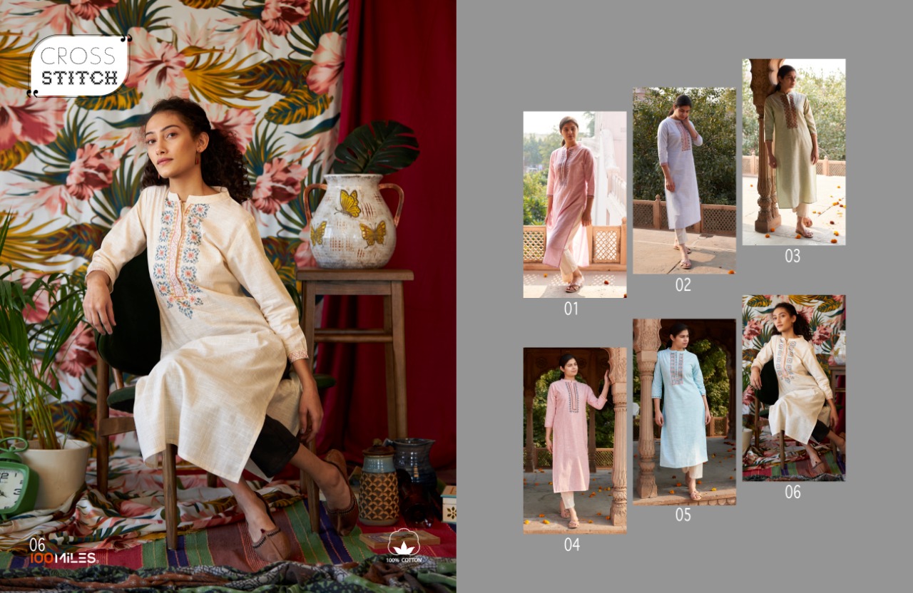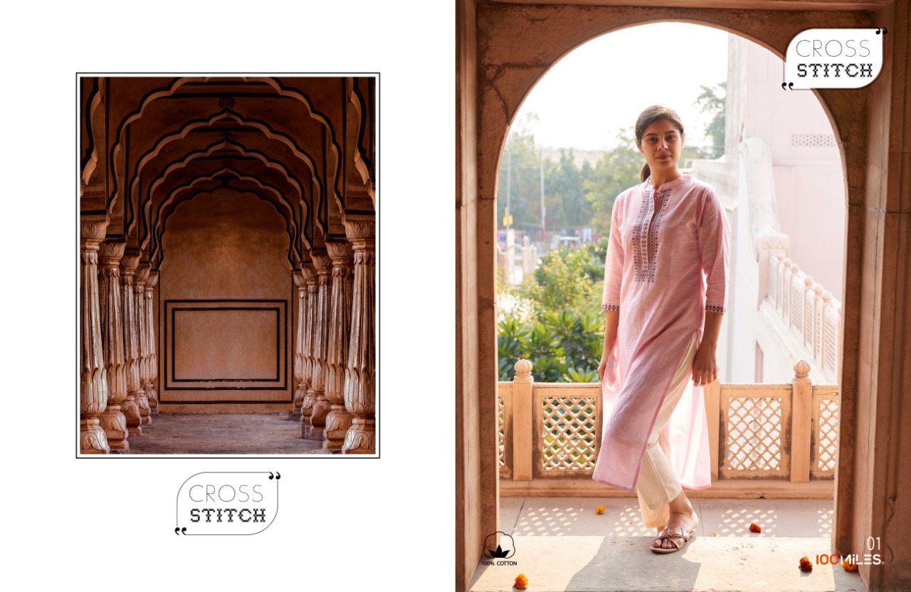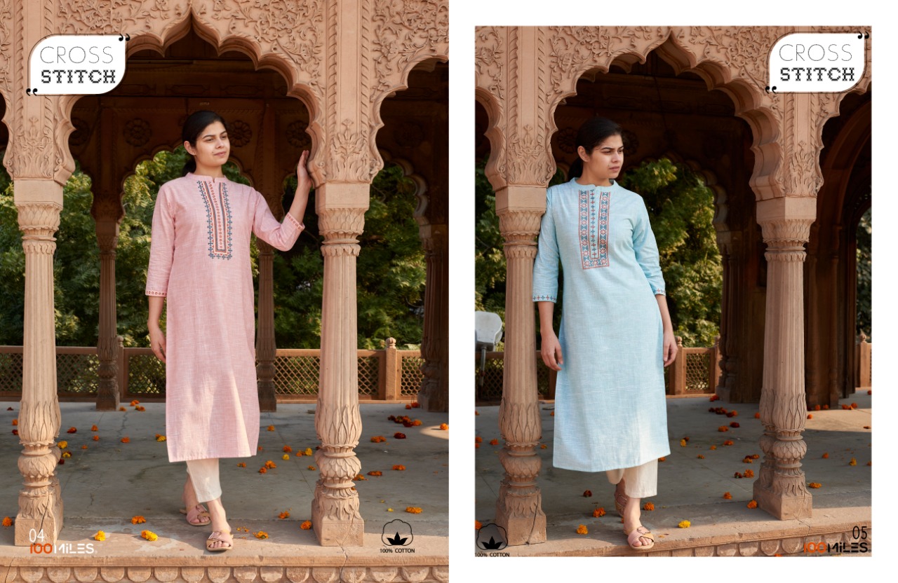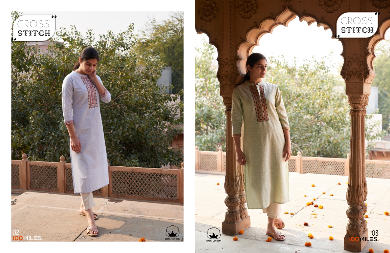100 Miles Cross Stitch Cotton Embroidery Long Kurti Wholesaler