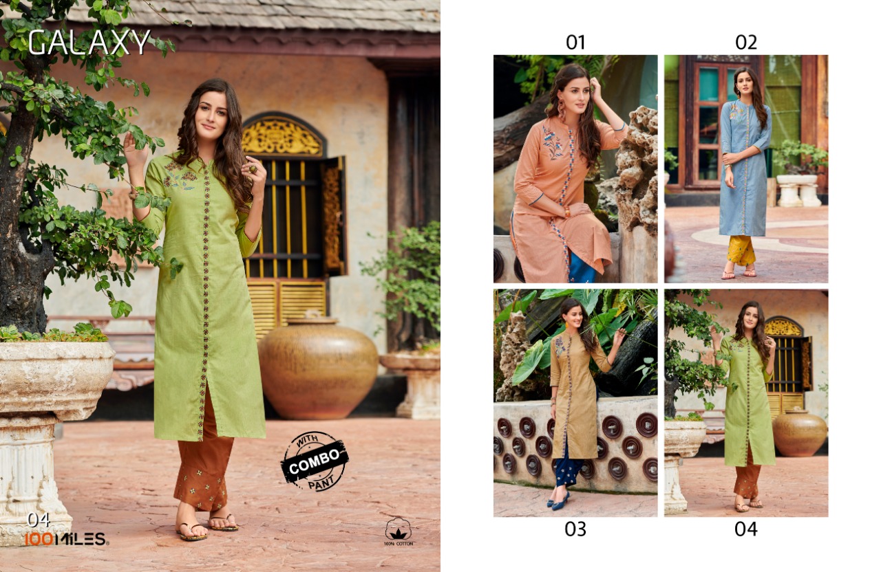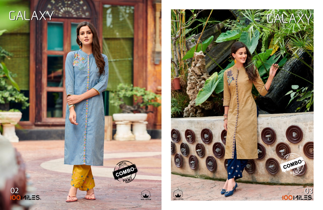 100 Miles Galaxy Pure Cotton Kurtis With Pant Collection