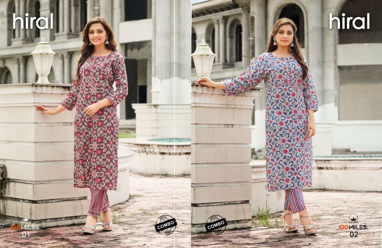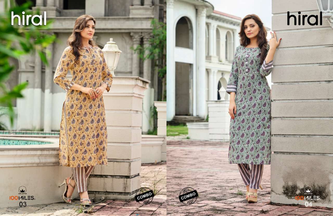 Catalog : HIRAL TYPE : Pure cotton printed Kurti with lace detailing and combo pure cotton pants also with lace detailing. |