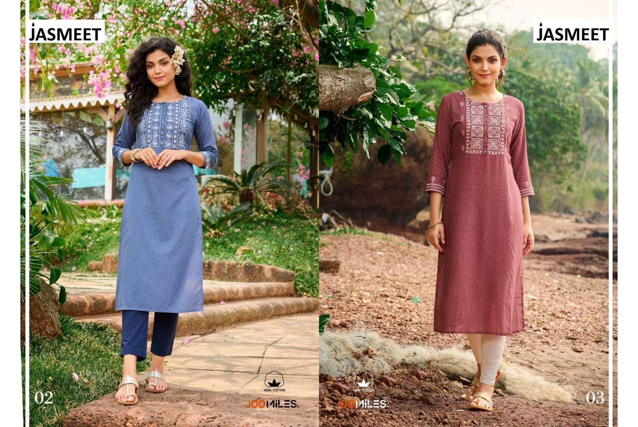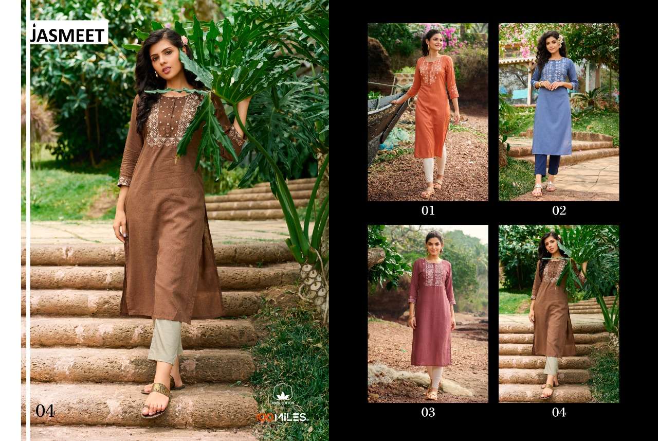 Catalog : JASMEET Style : Pure Linen Cotton heavy cross stitch work kurti. BRAND : 100MILES®️ SIZES : M to 2XL |