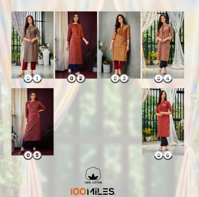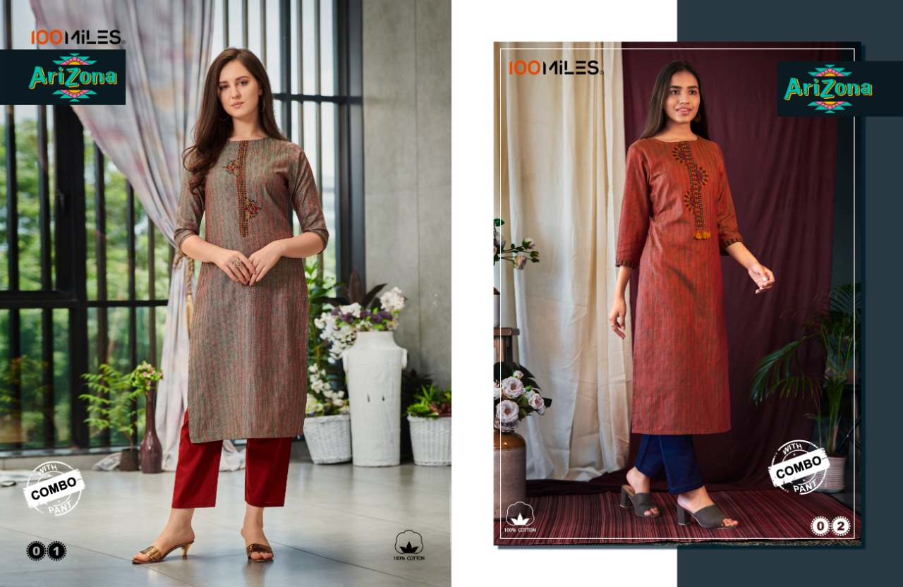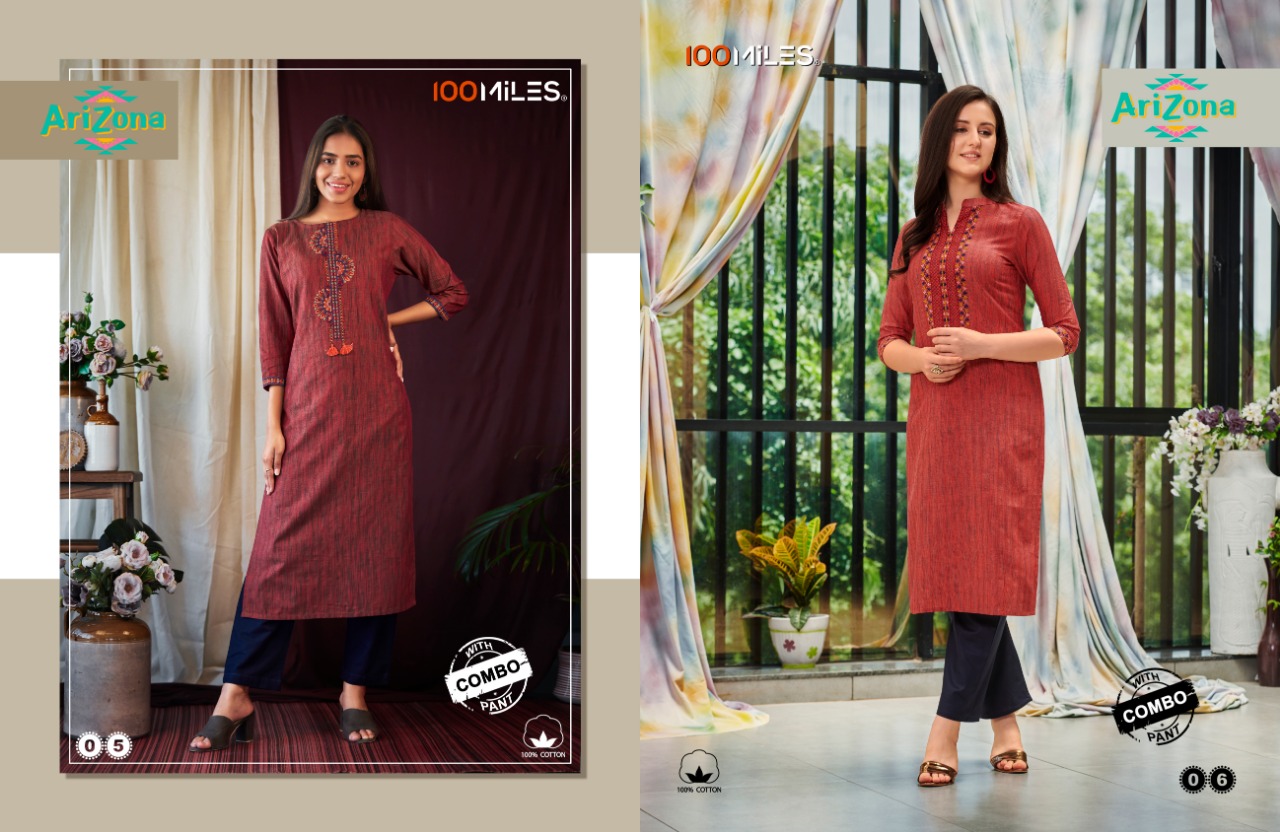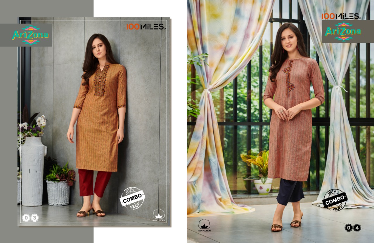 100 Miles Launch Arizona Cotton Pattern Kurti With Combo Pants Collection