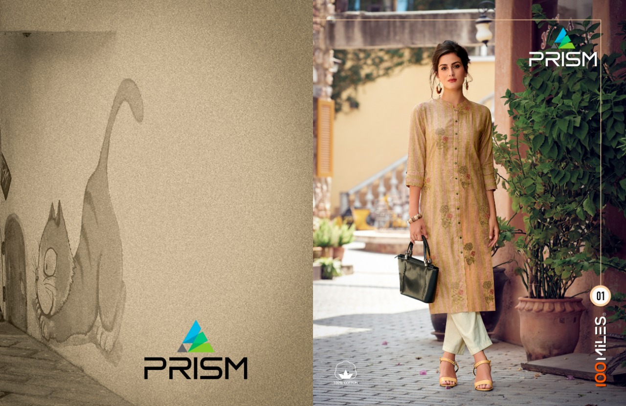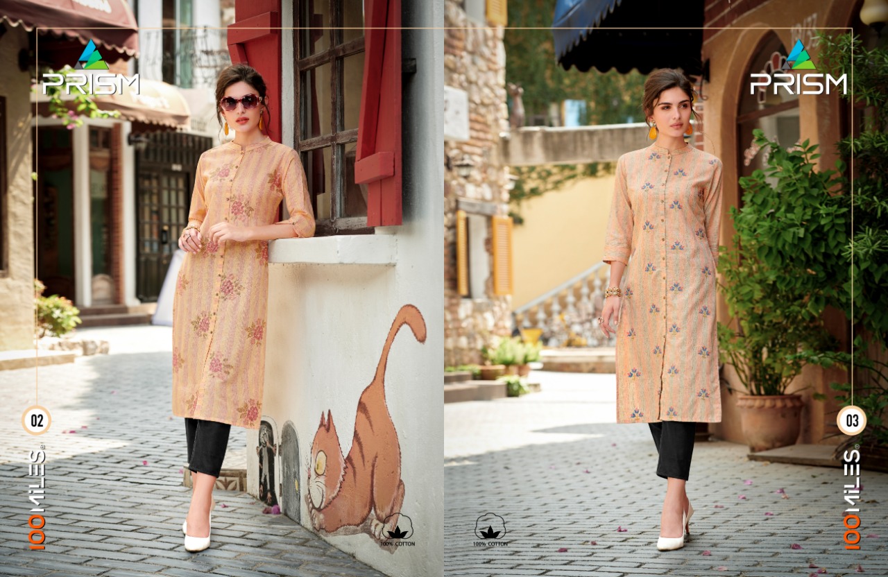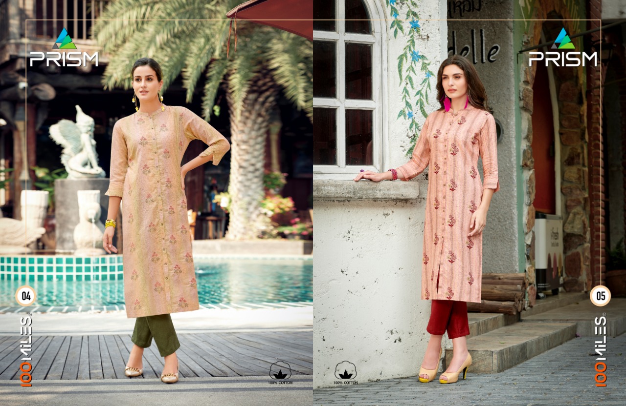 100 Miles Launch Prism Tencil Cotton Embroidered Kurti Wholesale Rate In Surat
