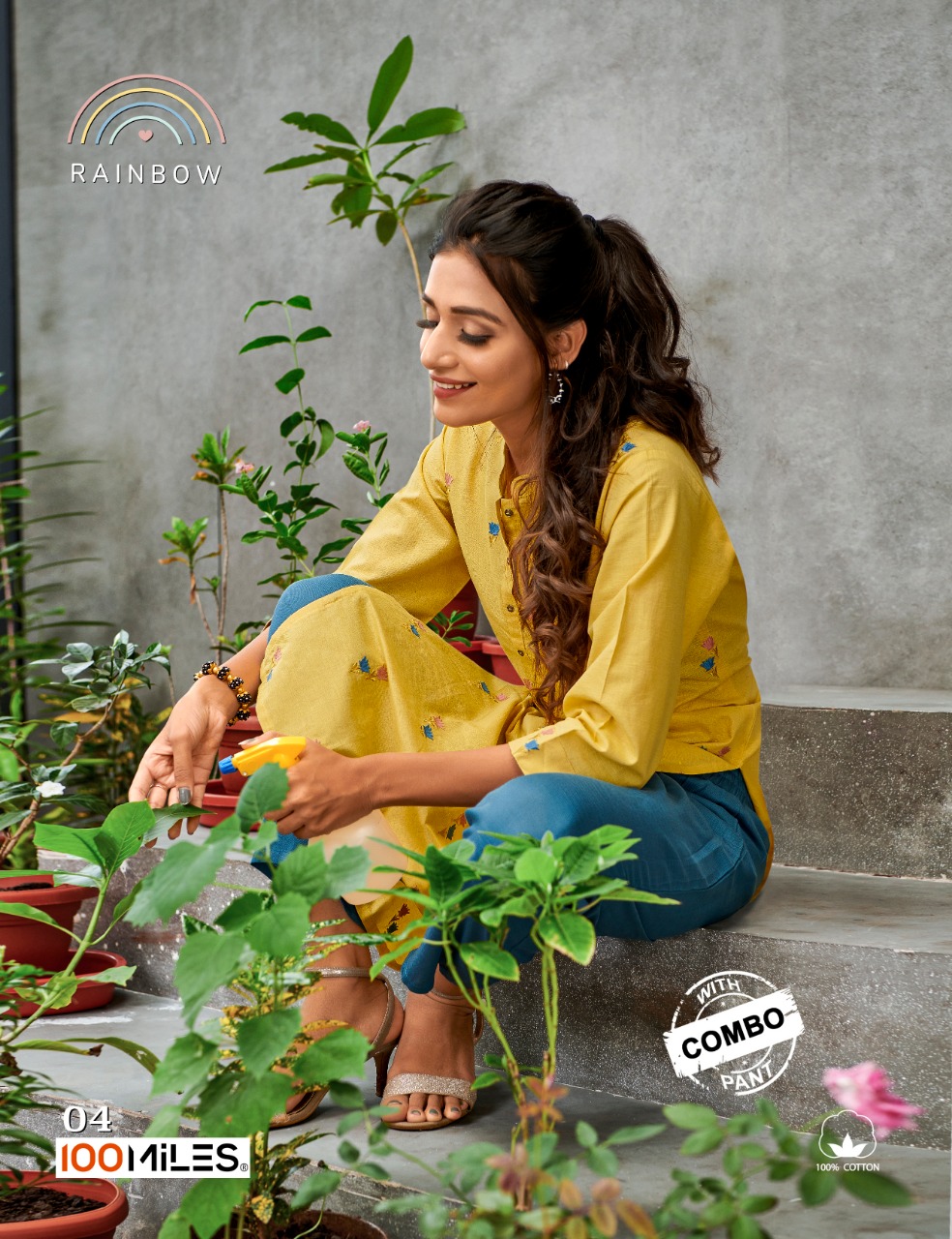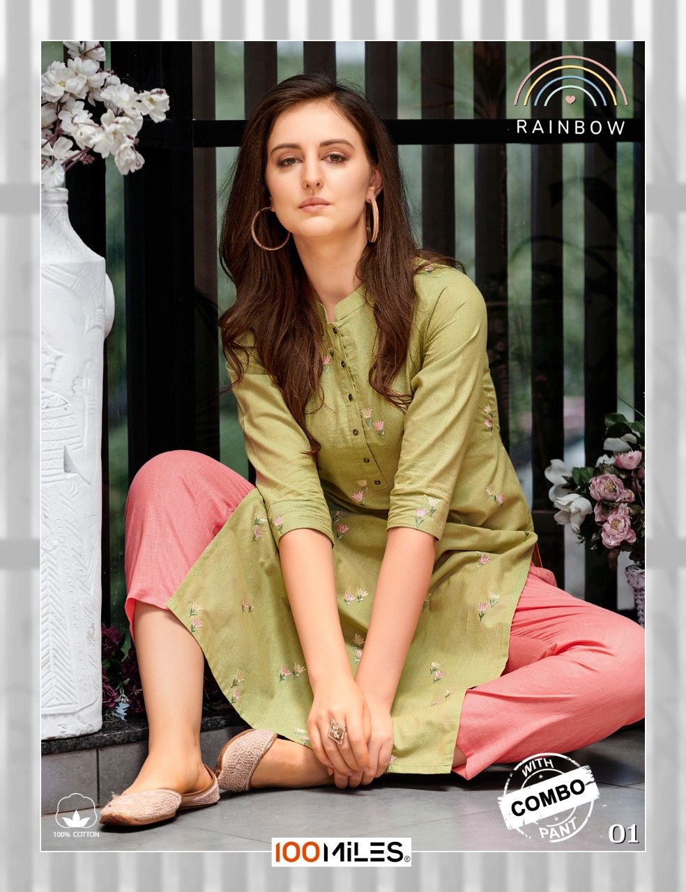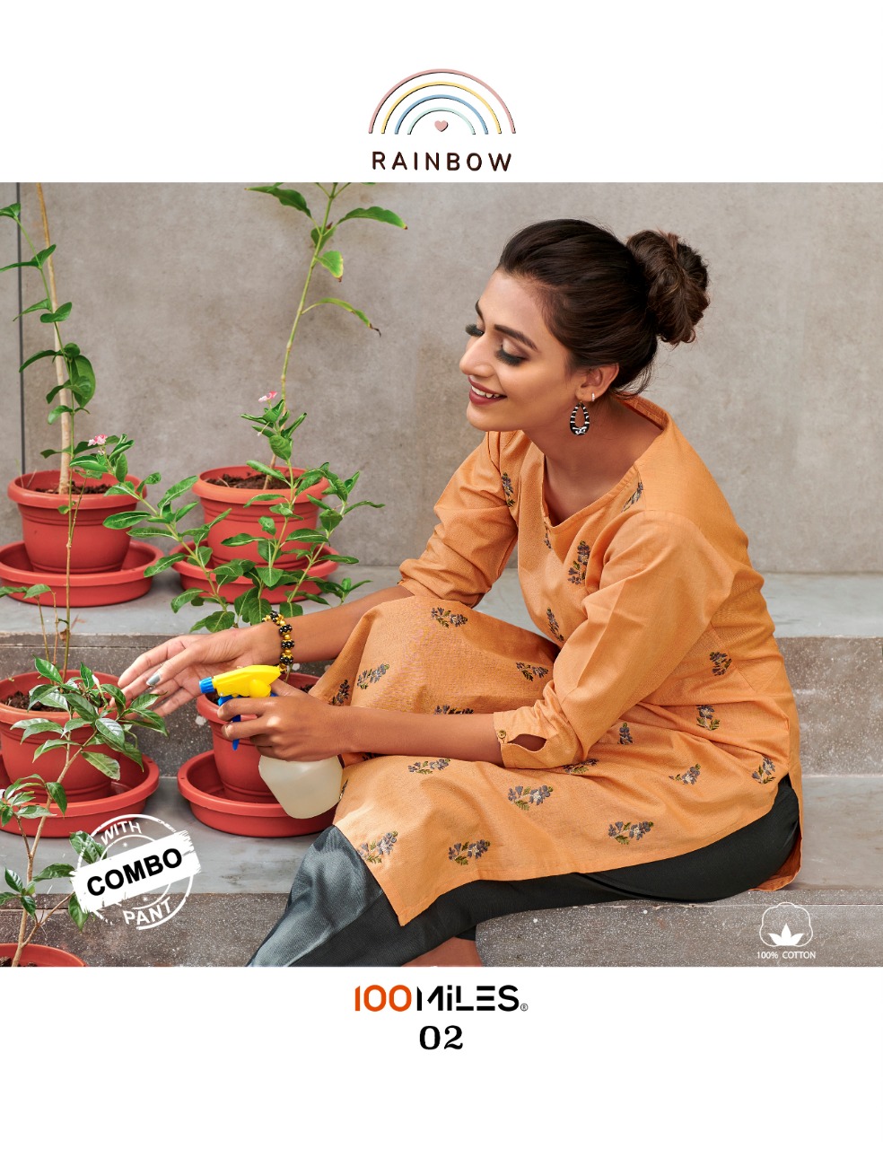 100 Miles Launch Rainbow Cotton Embroidery Kurti With Combo Bottom Exporter