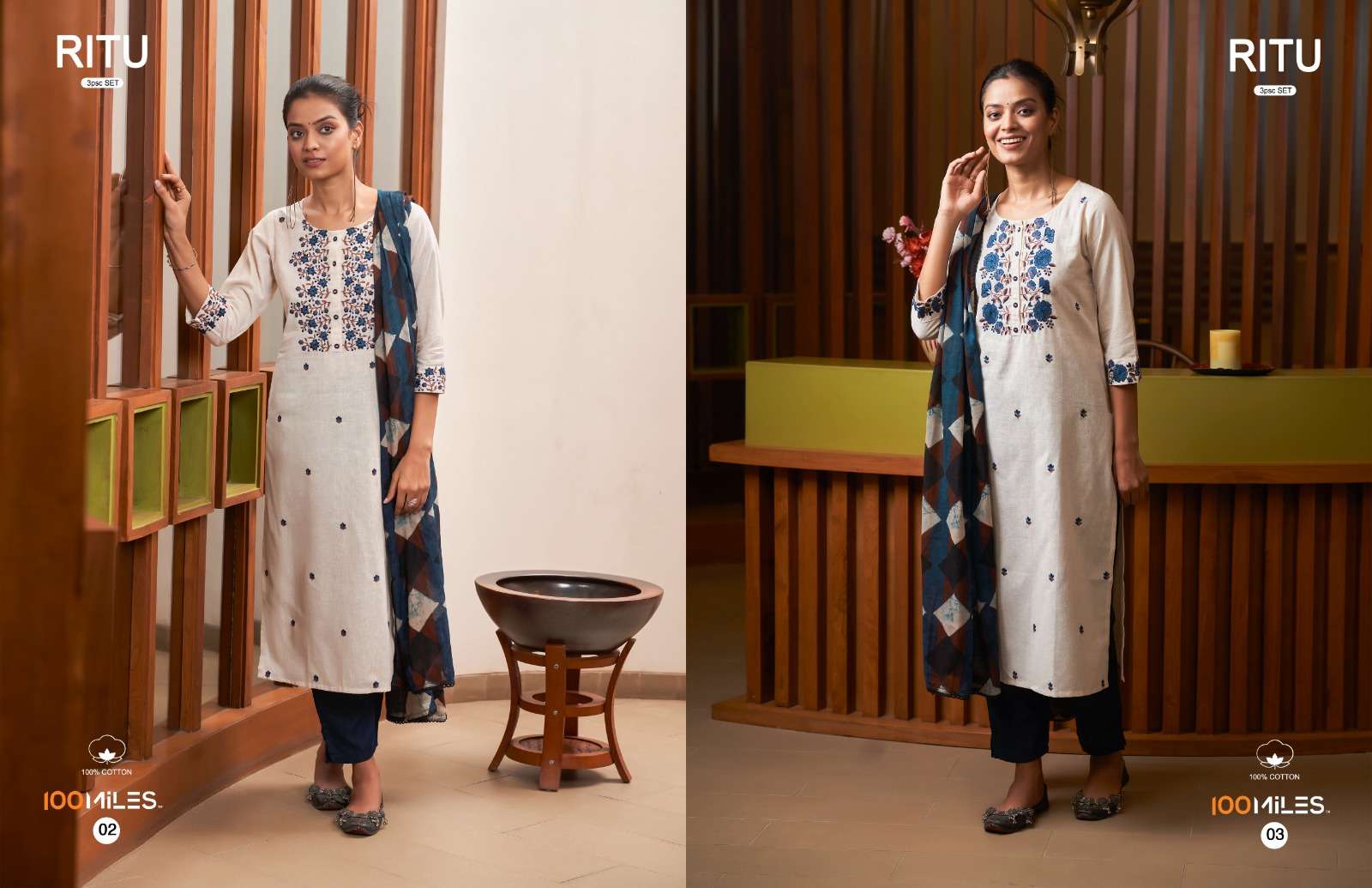 100 miles present ritu designer work cotton readyamde salwar kameez