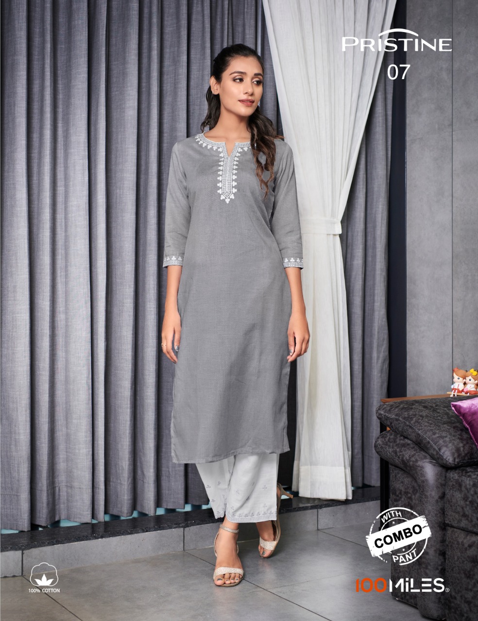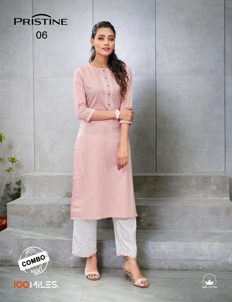 100 Miles Presents Pristine Vol 2 Linen Cotton Embroidered Kurti With Combo Pant