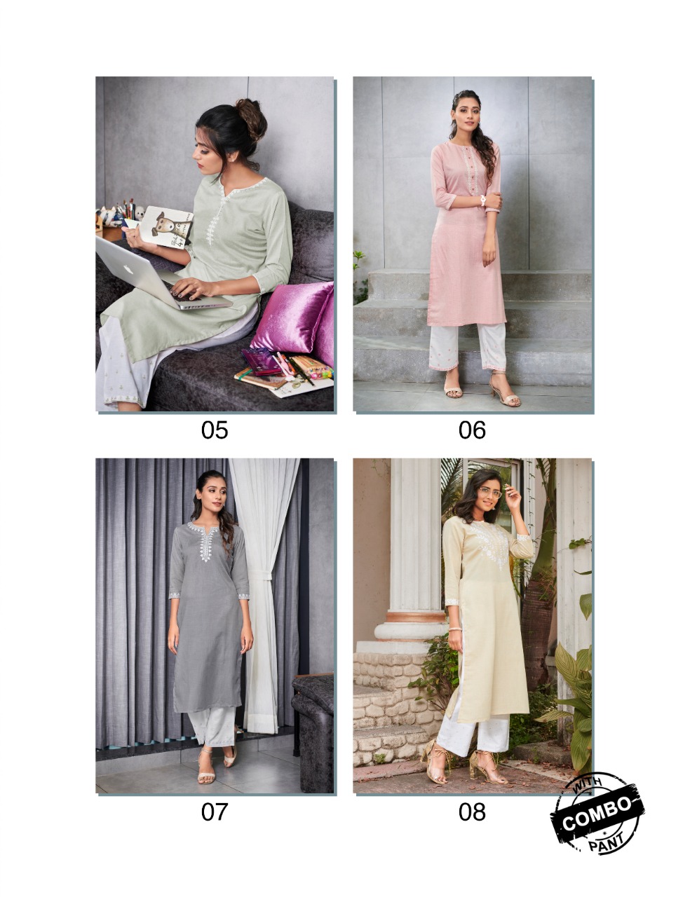 BRAND : 100MILES®️ TYPE : Premium LINEN Cotton embroidered kurtis with combo pants with work. SIZES : M to 2XL RATE : 705/-(with bottom) Pieces: 4 per Bag Dispatching within 7 days |