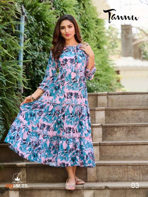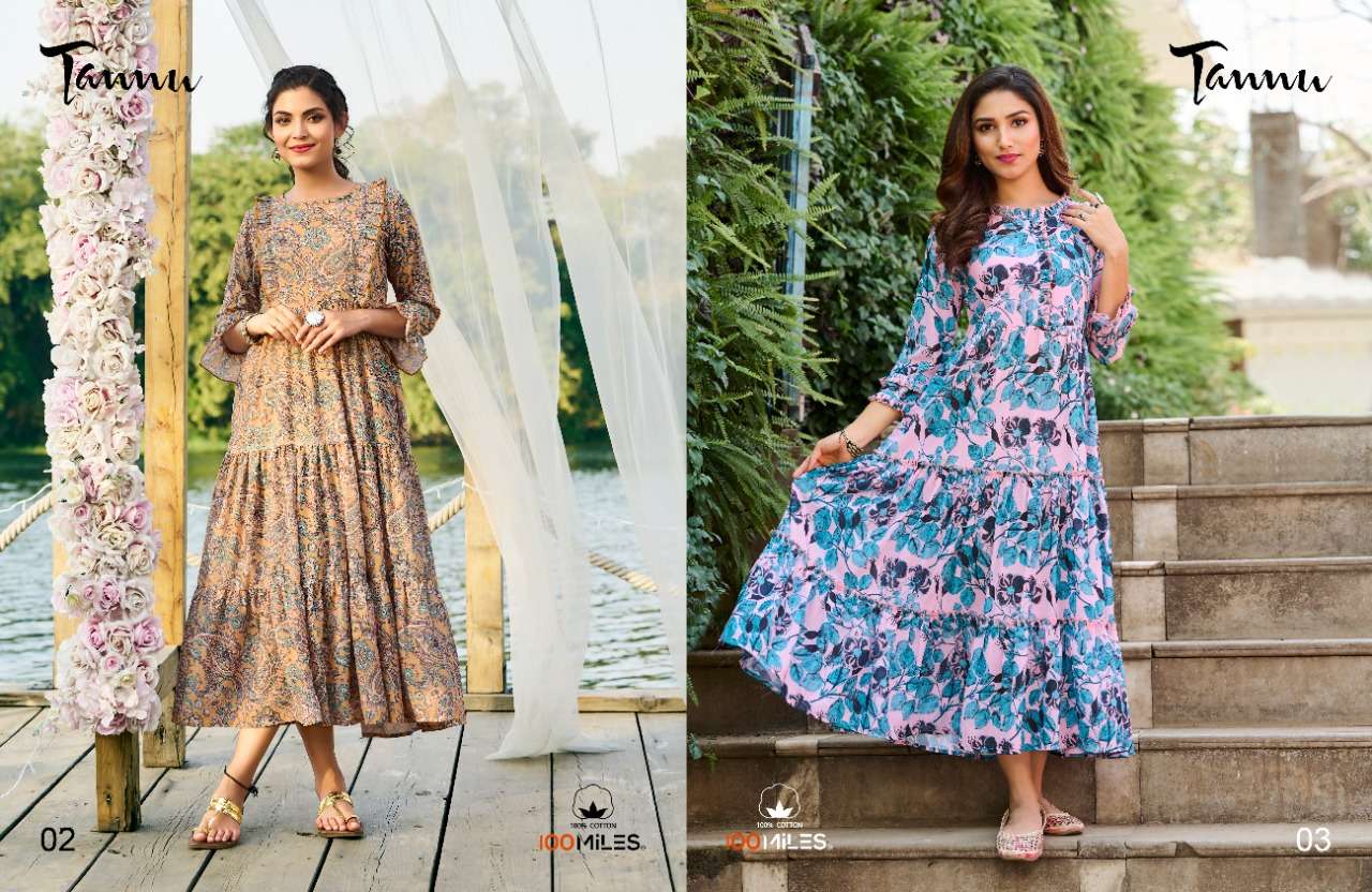 Catalog : TANNU Style : Premium georgette long dress with pure cotton inner and with detailing and flair gathers. Length: 49”-50” BRAND : 100MILES®️ SIZES : 2XL |