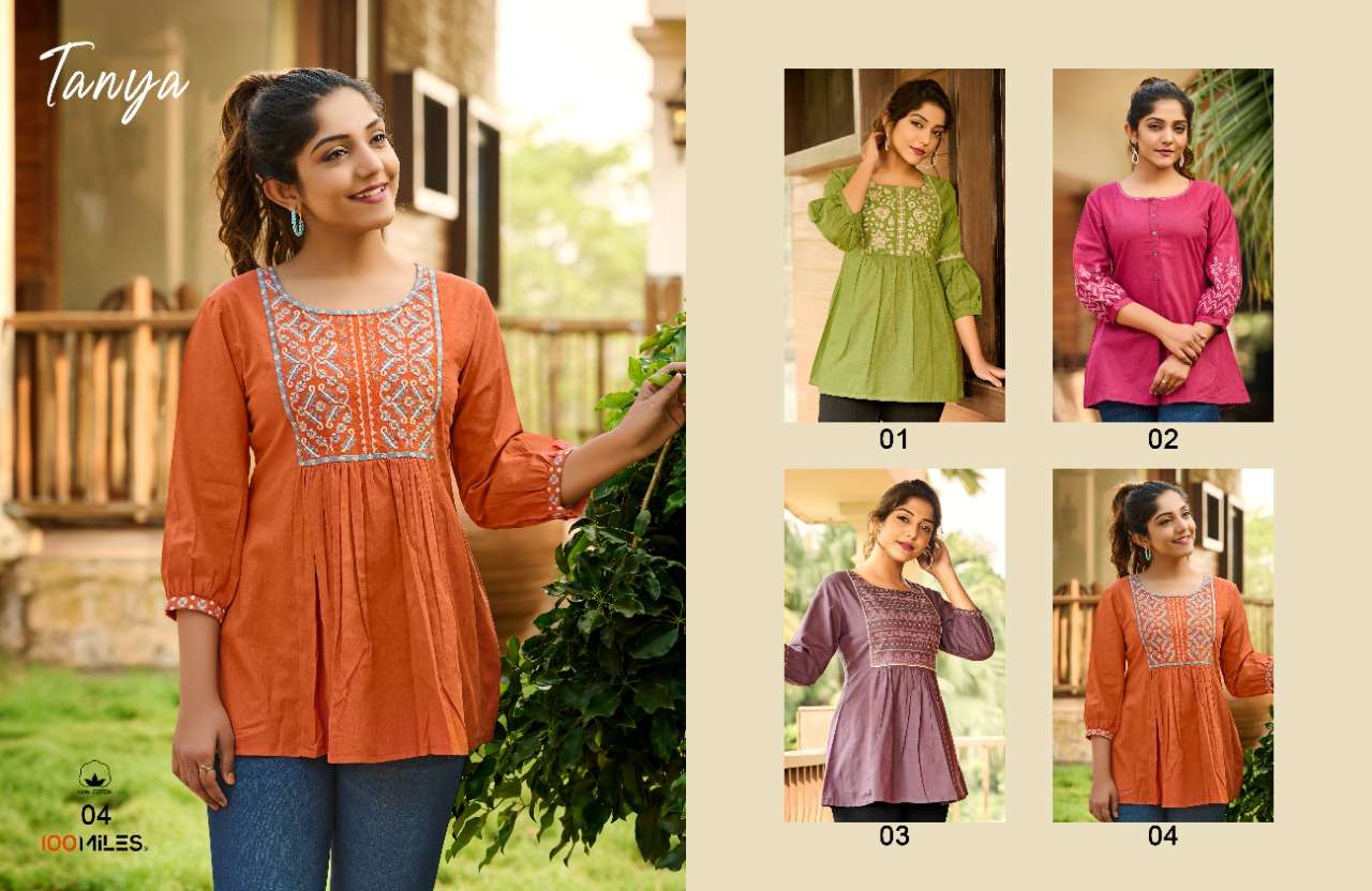 Catalog : TANYA Style : Pure cotton tops with fancy embroidery BRAND : 100MILES®️ SIZES : S to 2XL |