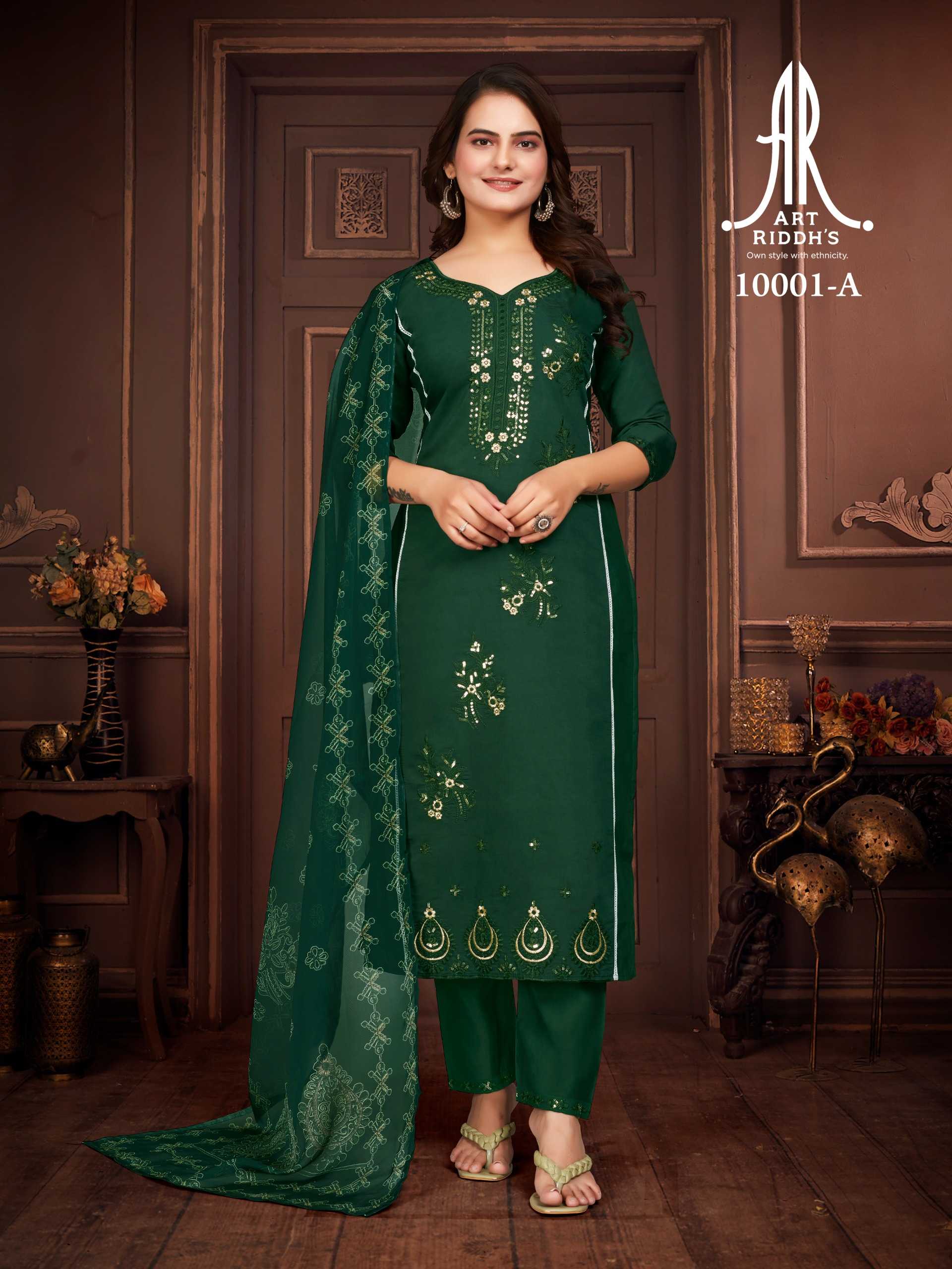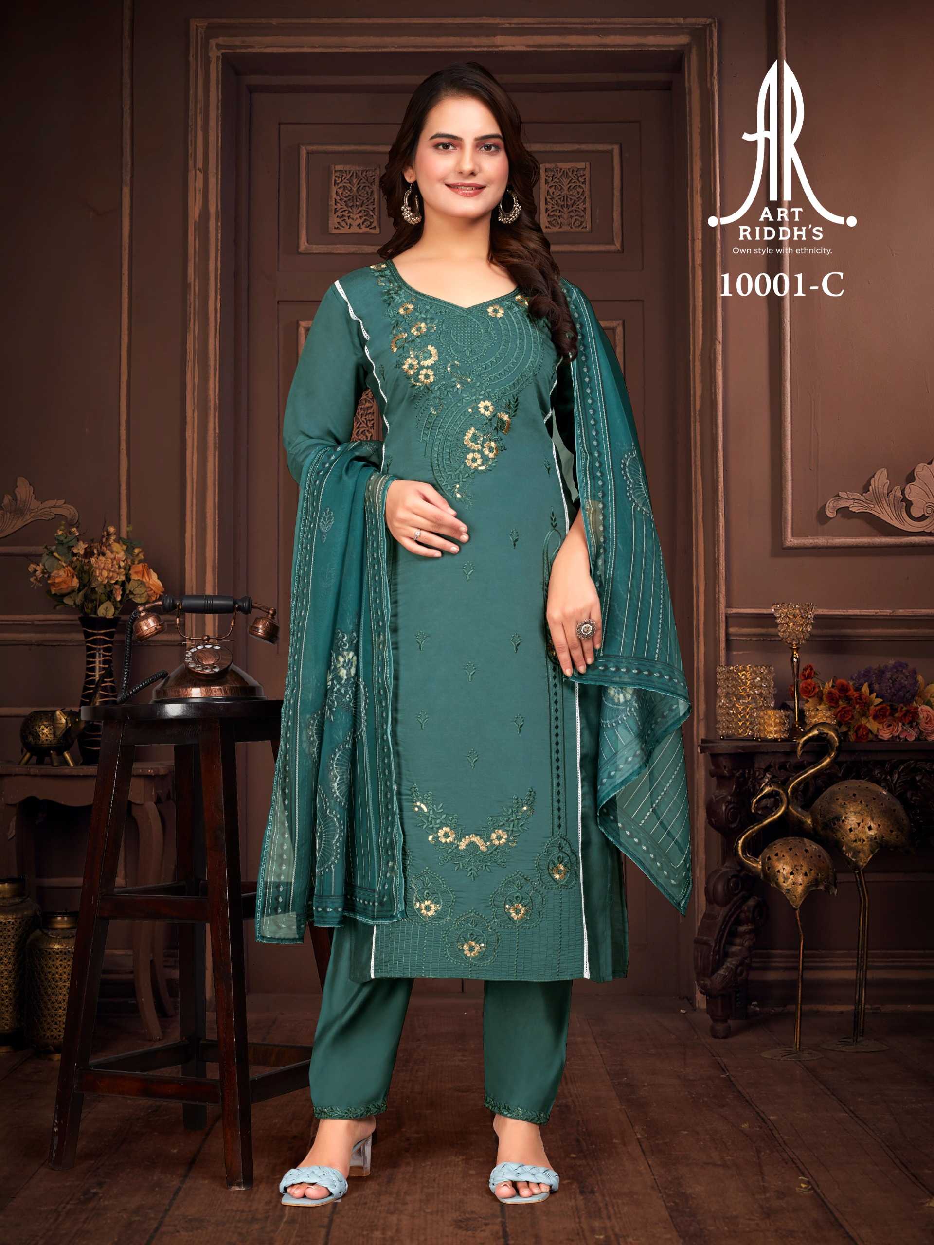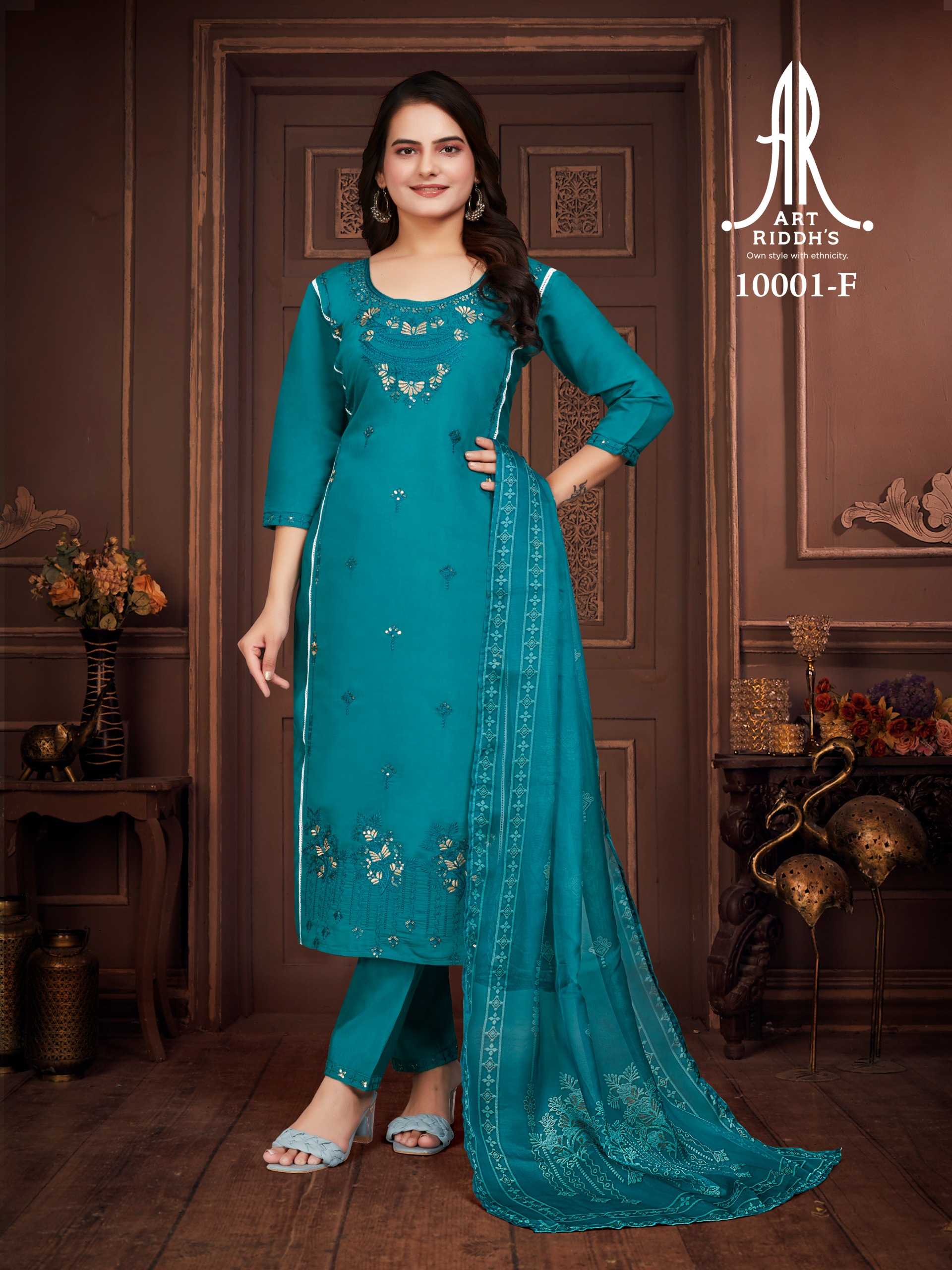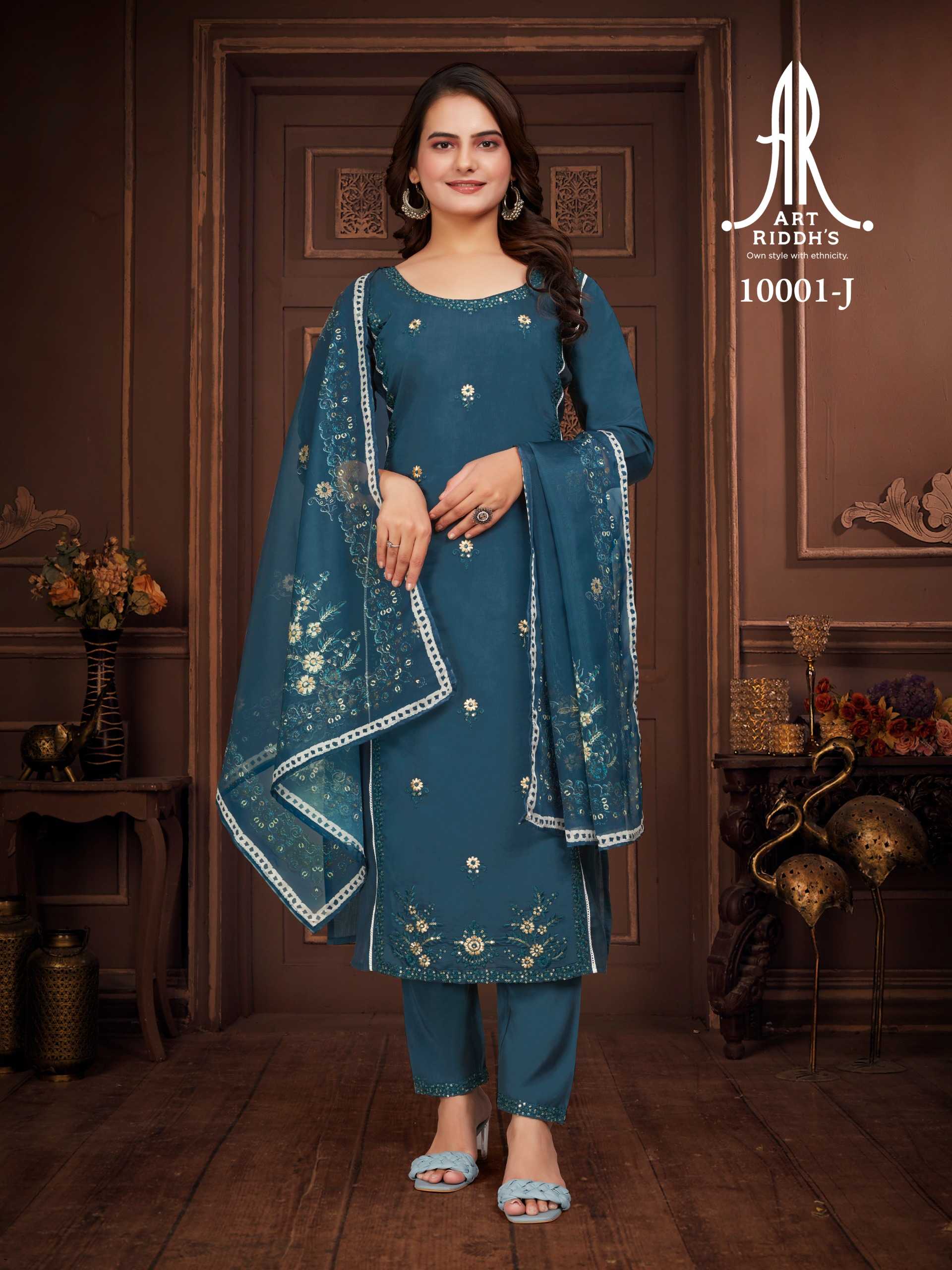 10001 by art riddhs modal chanderi amazing work readymade function wear salwar suit