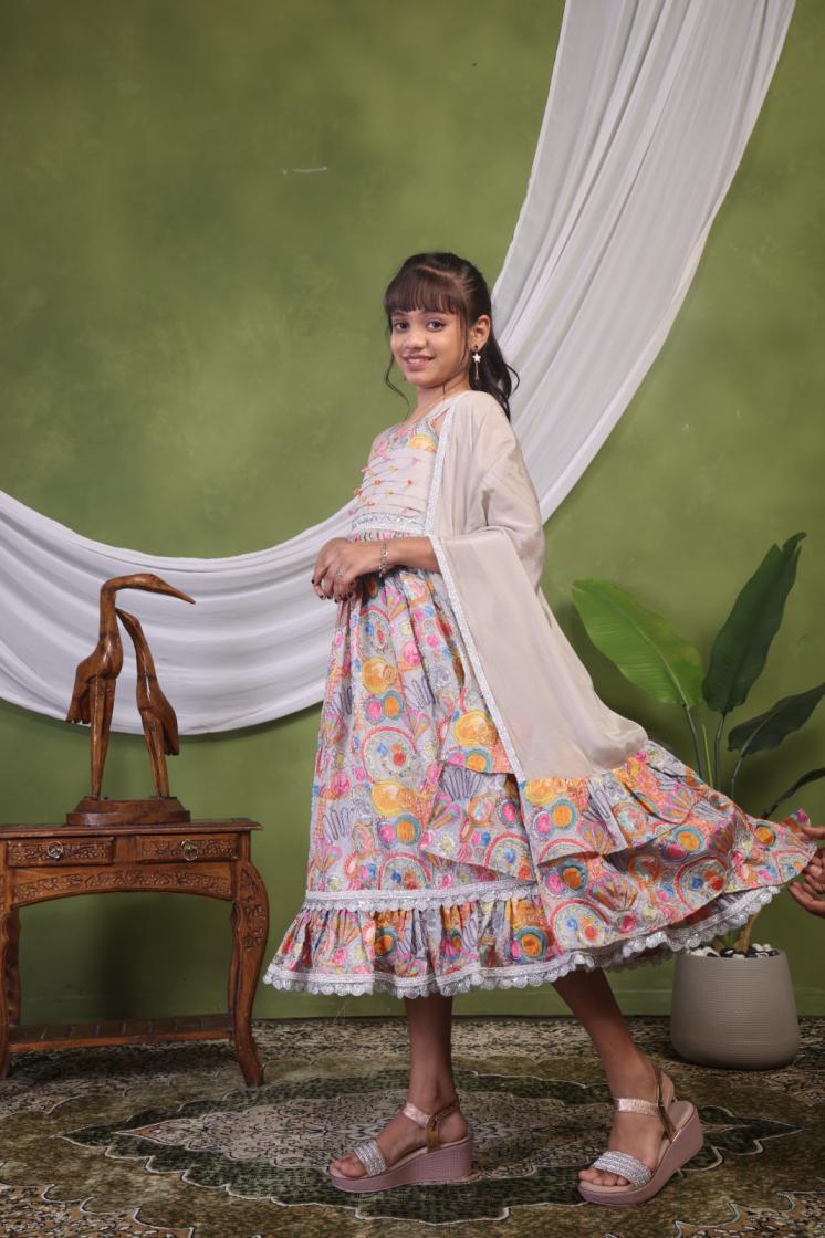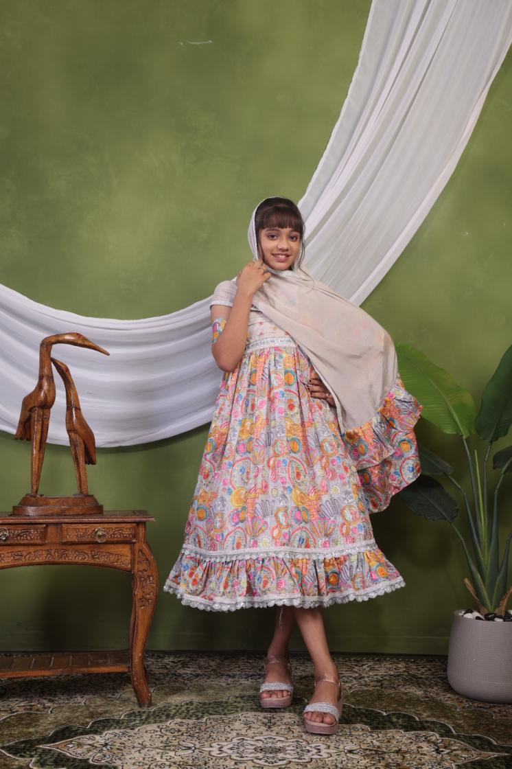 1009 chinon daily wear stylish full stitch kids combo gown with dupatta