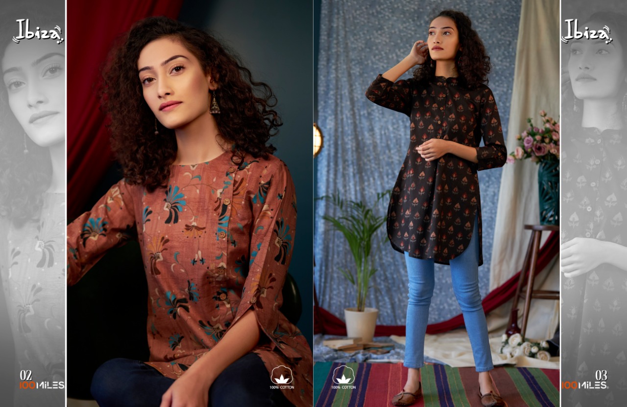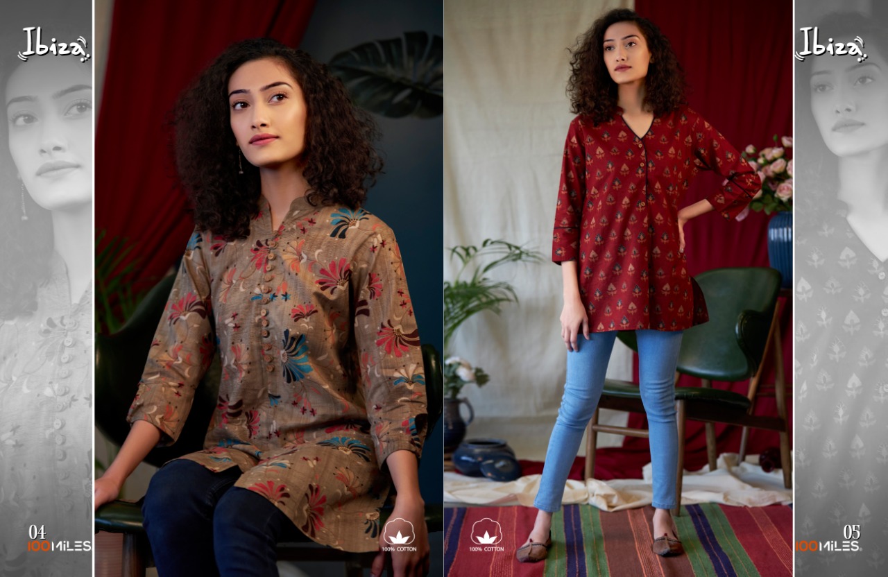 Catalog : IBIZA BRAND : 100MILESî TYPE : Pure cotton printed designer tunics. Length 30âÂÂ-32â SIZES : S to 2XL RATE : 345/- Pieces: 6 psc per Bag |