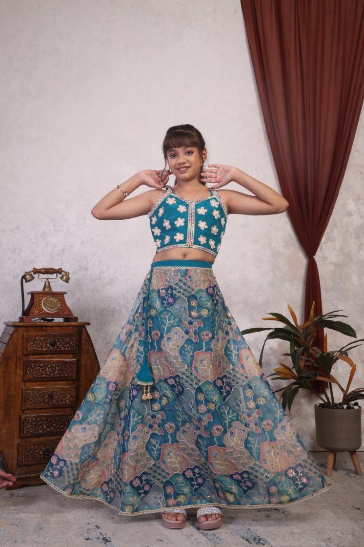 1010 tebby embroidery work natural crap fully stitch kids combo lehengas online