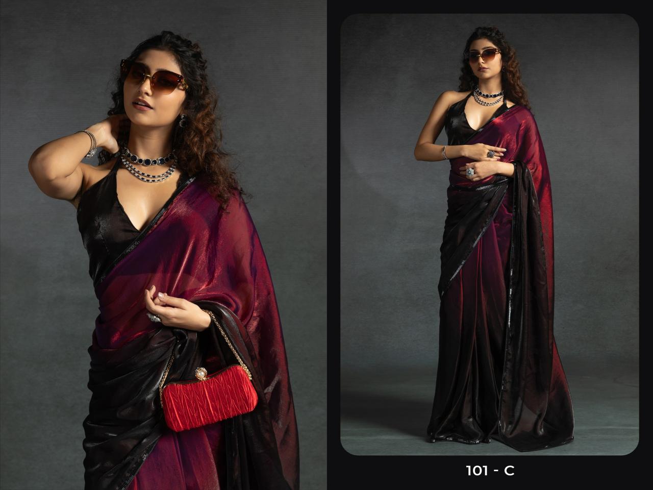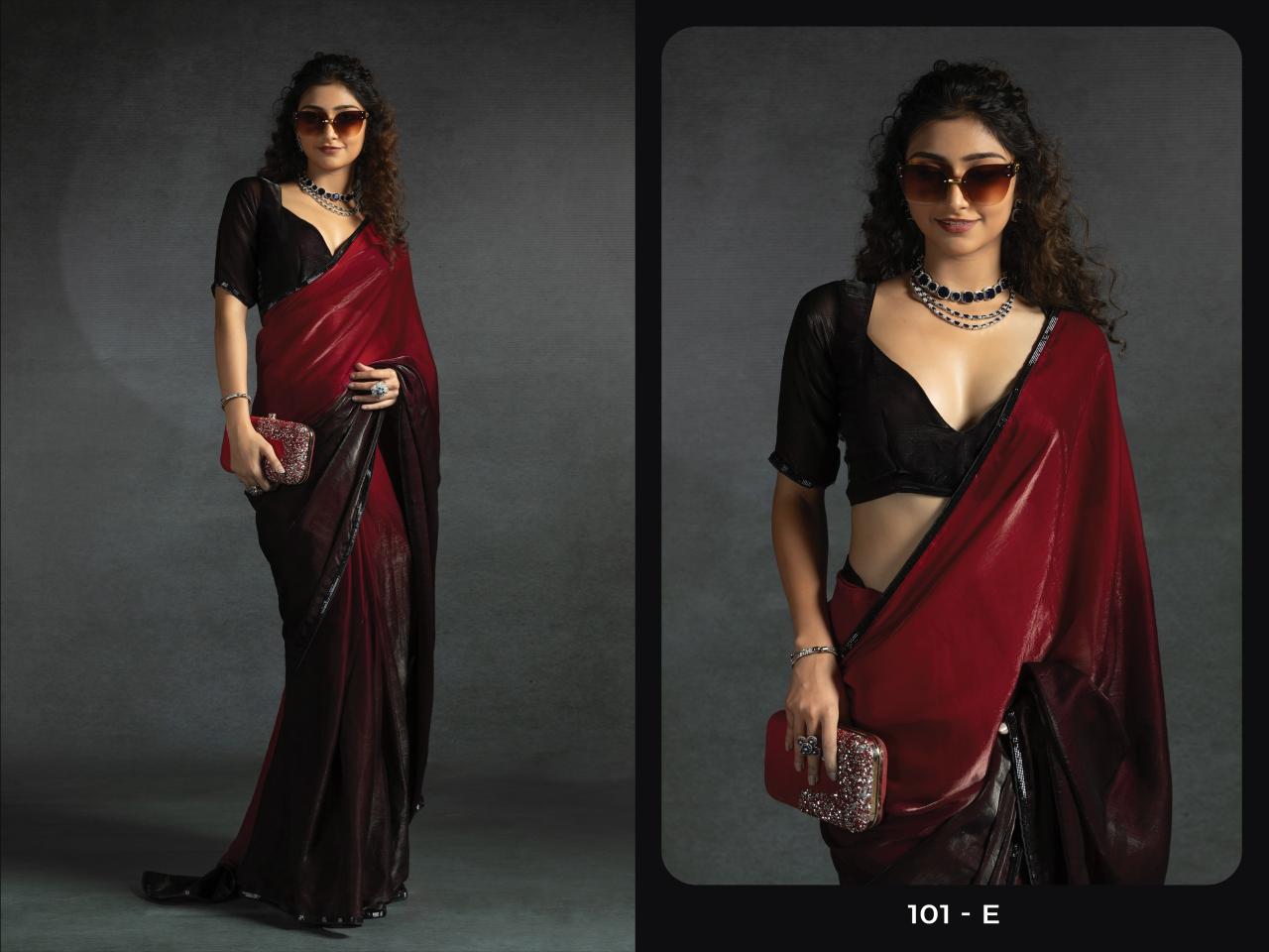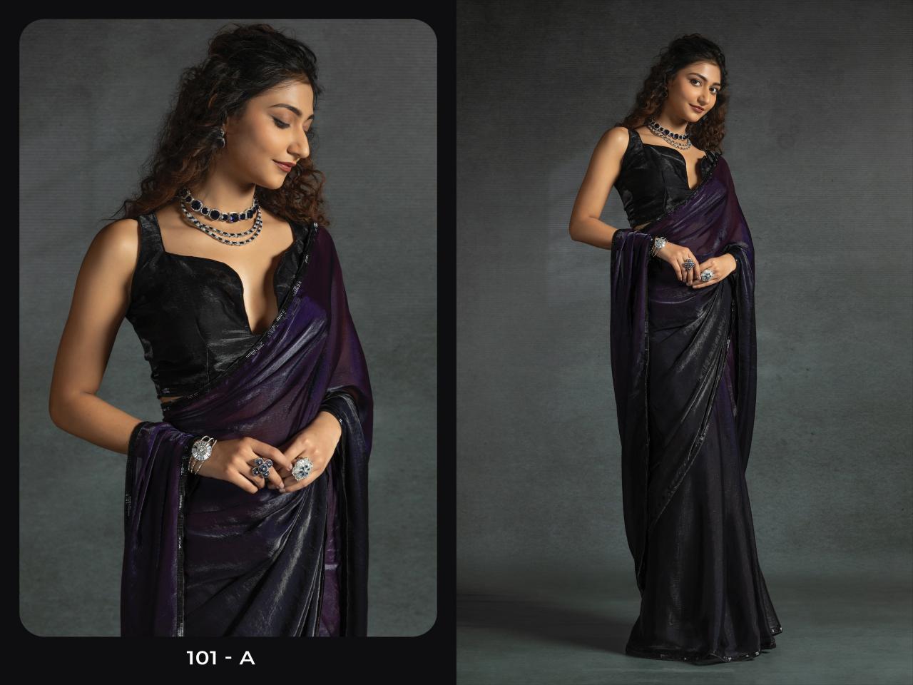 Catalog Name : 101A TO 101E Saree Fabric : Satin silk (Readymade) Blouse _ Satin silk (Unstitched) Work : Heavy Diamond Border Size – 28 Stretched upto 36 Rate : 1720/- +5% Gst Occasion: Party Wear,Festival Wear |