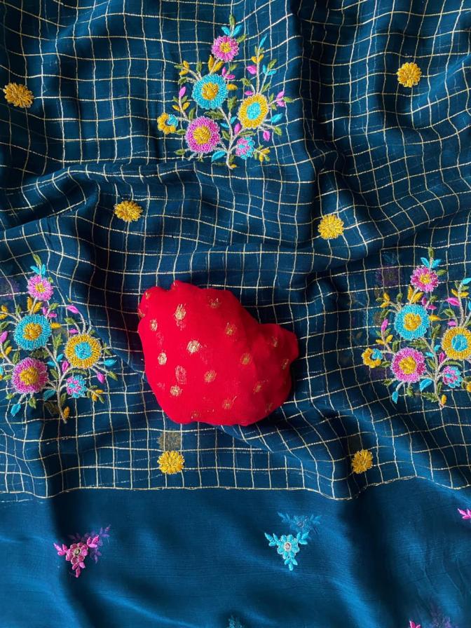 1027❤️ Pure georgate sarees with beautiful gamthi work alll ocer saree with chex design and all Teamed with contrast blouse Price :- 1450/-* +GST |