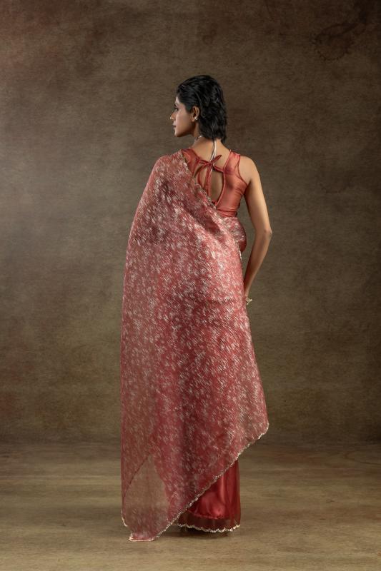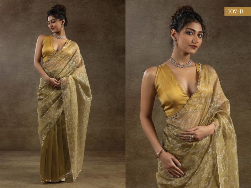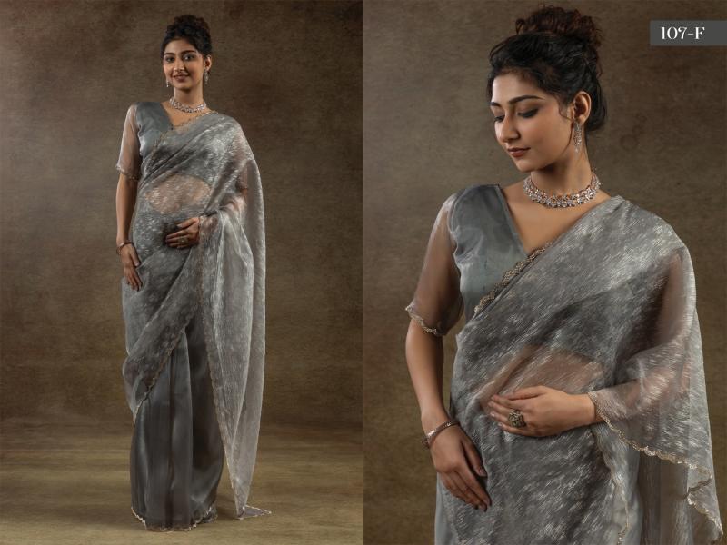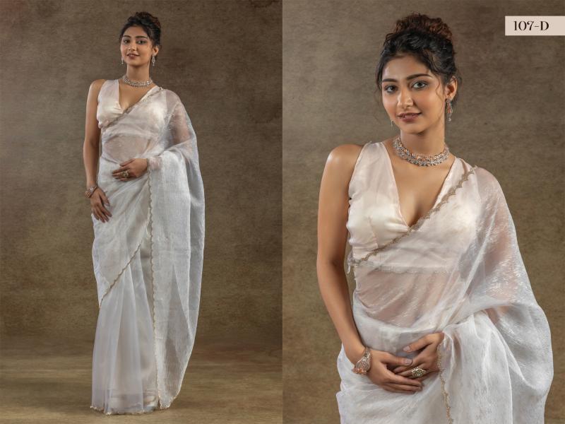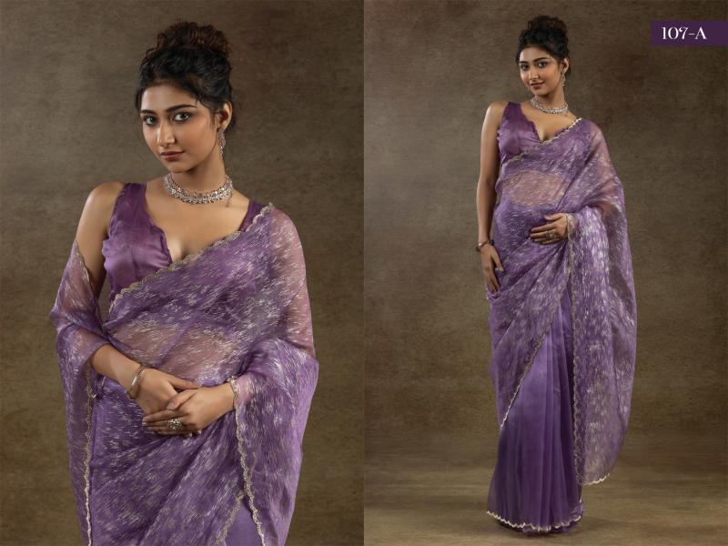 Catalog Name : 107A TO 107G Saree Fabric : Pallu - Pure Organza Cruss Foil Skirt- Pure Organza Blouse : Pure Organza (Unstitched) Size – 28 Stretched upto 36 Rate : 1690/- +5% Gst Occasion: Party Wear,Festival Wear |