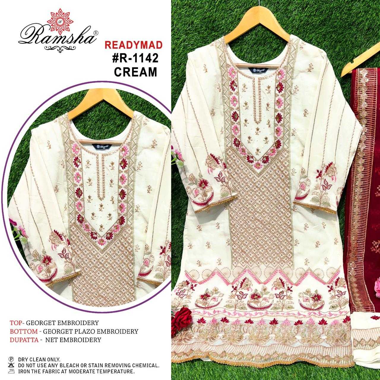 1142 by ramsha heavy pakistani georgette embroidery work readymade salwar suit