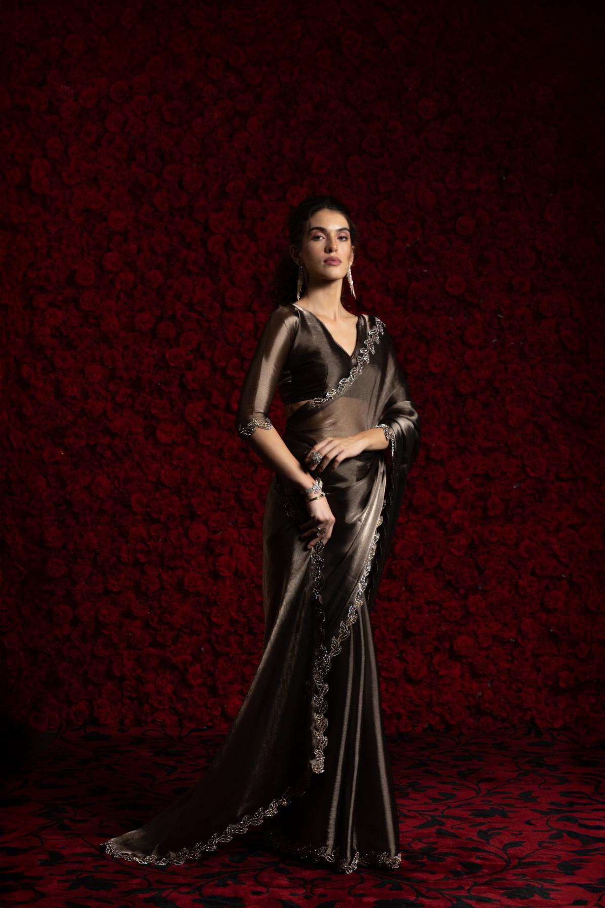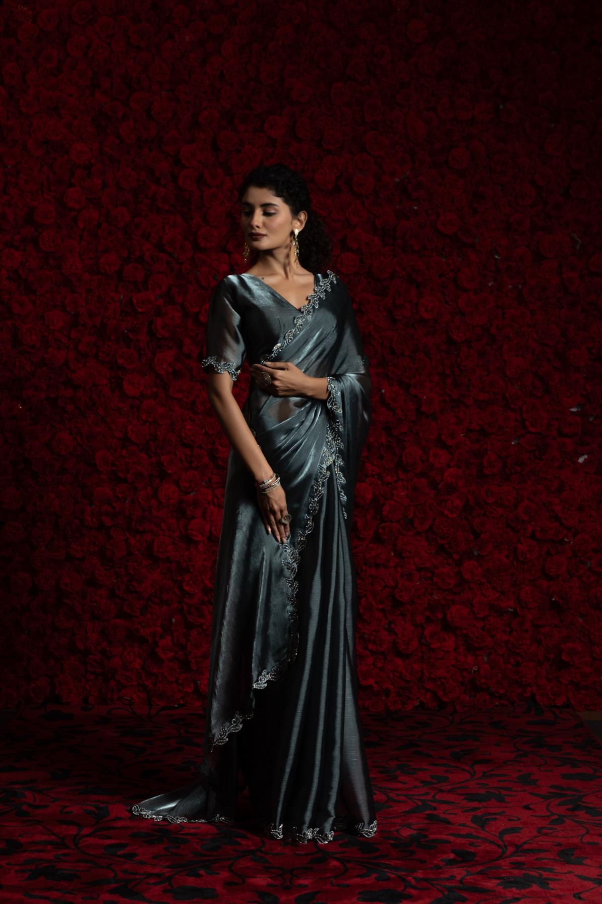 Brand : Mehek Saree Catalog: 1238 Series Series : 1238-A TO 1238-G Saree : Tissue Chiffon Hand work Jarkan ,Work Border Blouse : Tissue Chiffon With Work Border Price : 1395/-+5%GST Occasion : Carnival and Party wear |