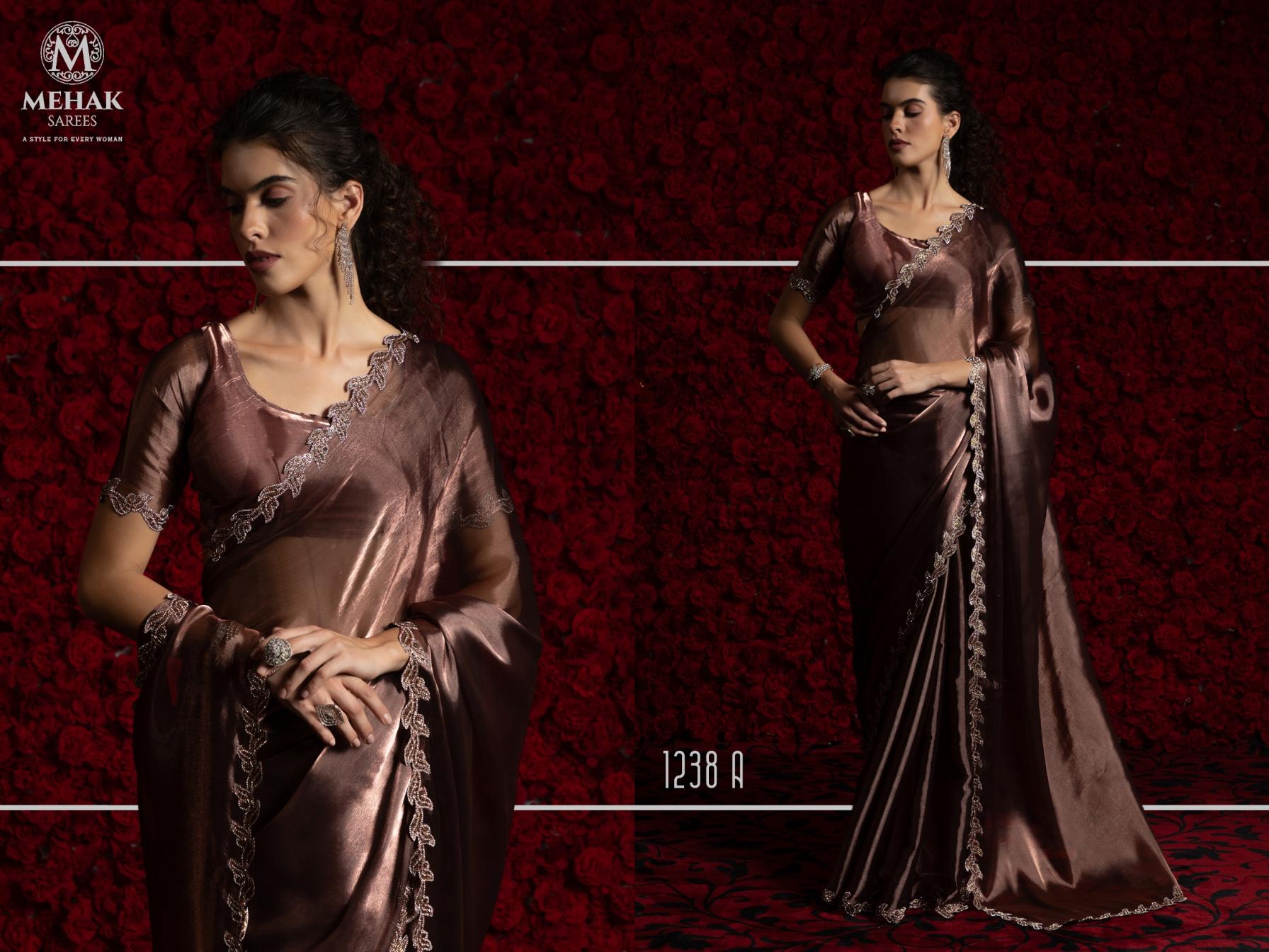 1238a-1238g by mehak tissue chiffon trendy hand work saree for womens
