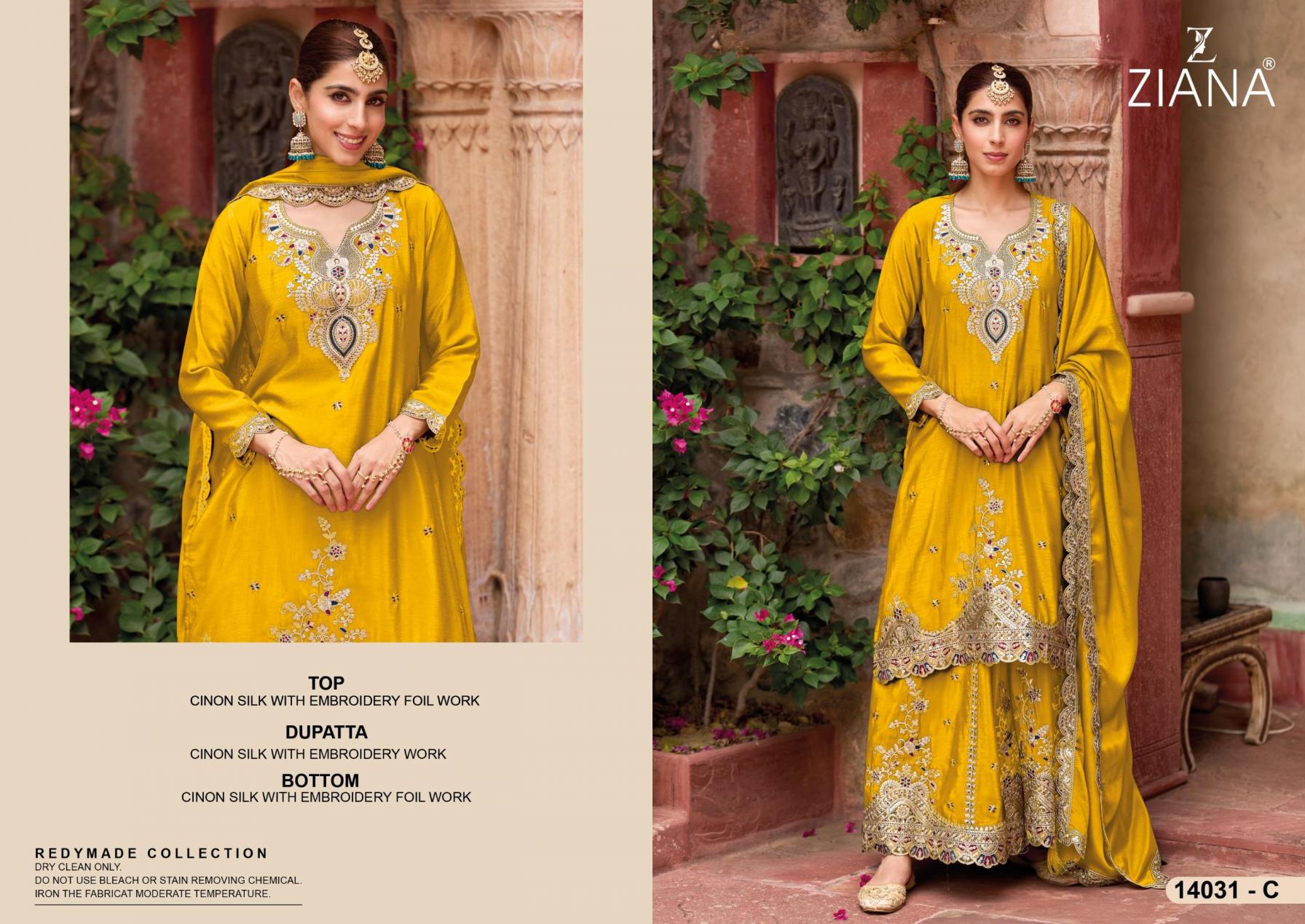 14031 by ziana chinon silk full stitch stylish combo pakistani plazzo 3pcs dress