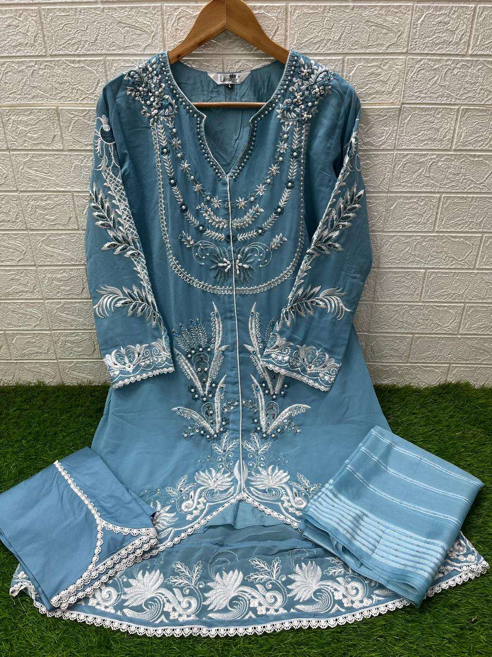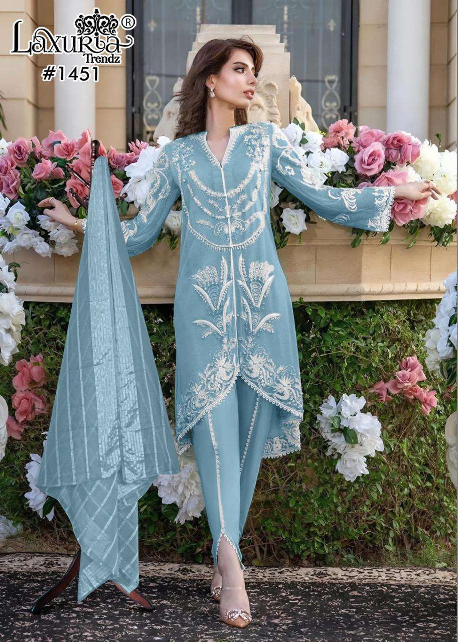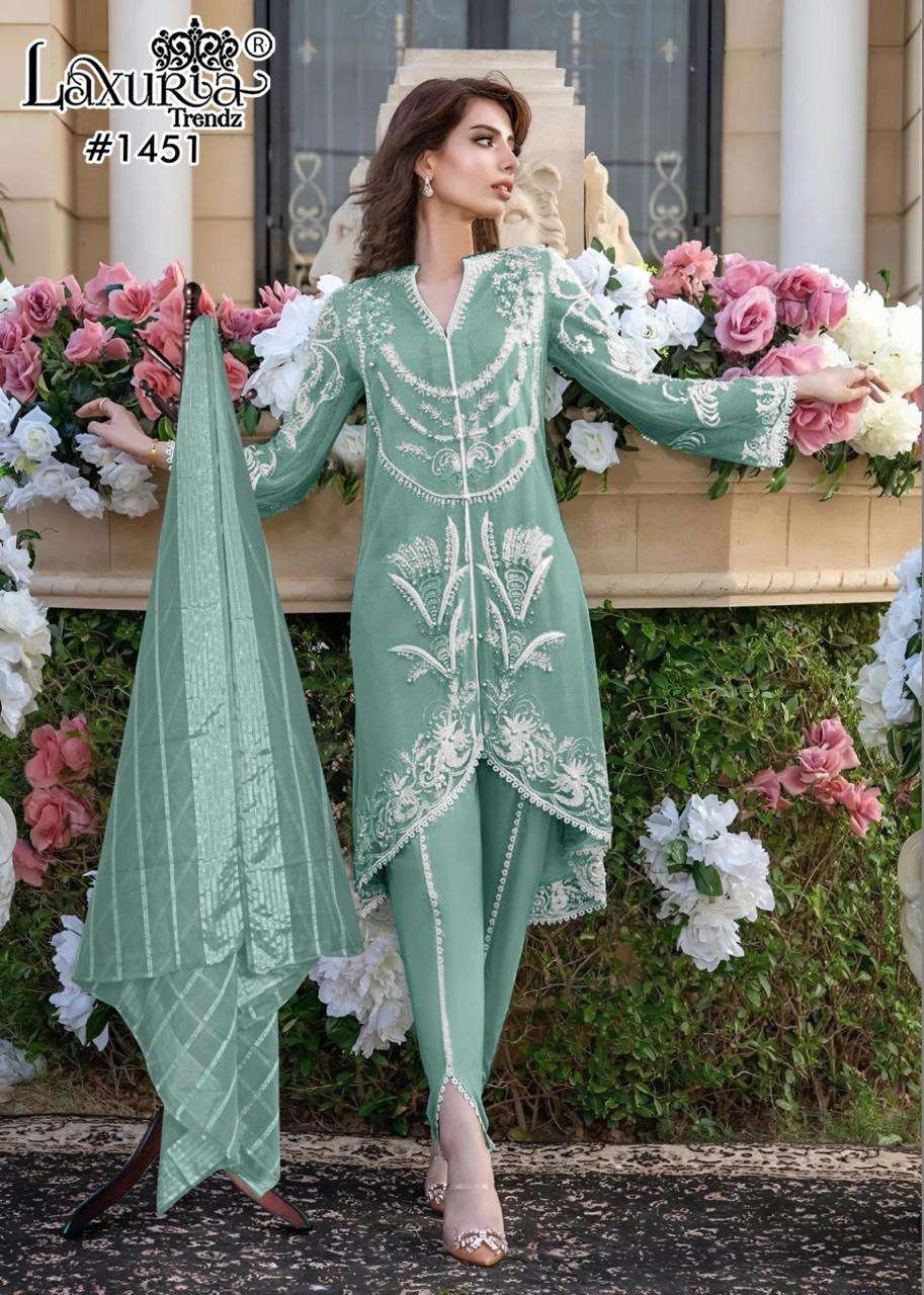 1451 by laxuria trendz georgette readymade amazing work 3pcs dress