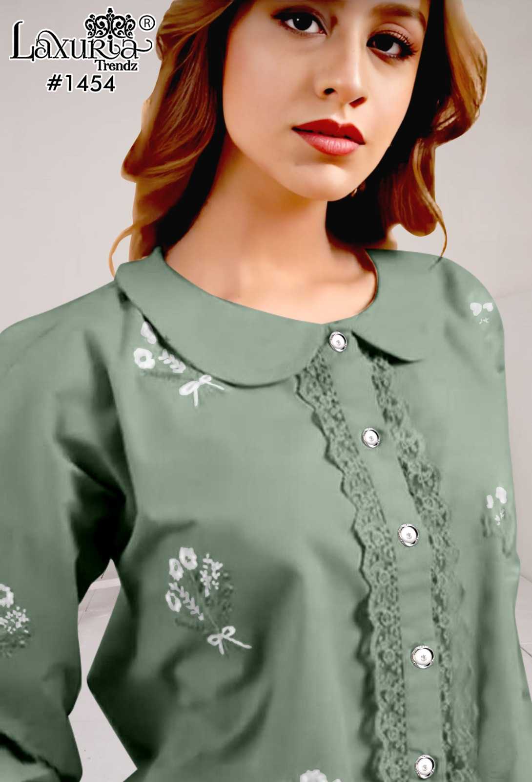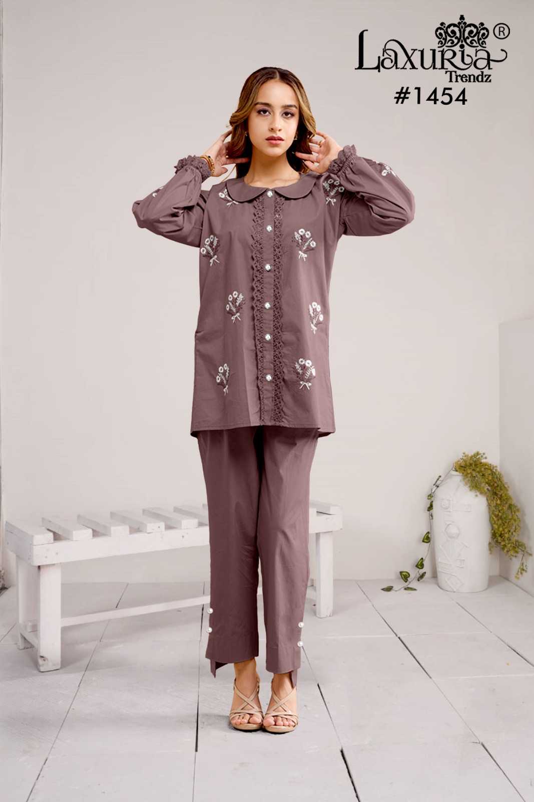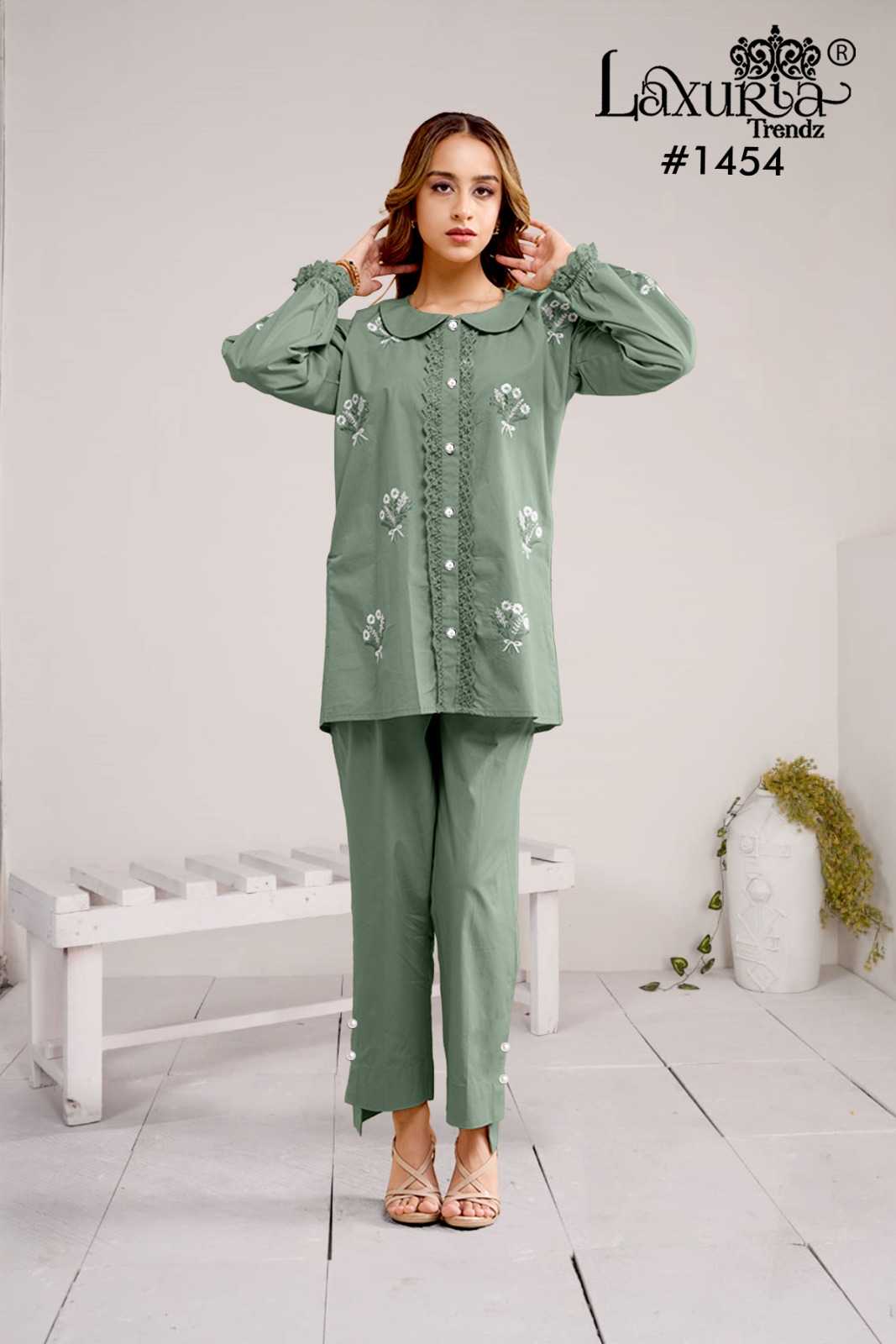 1454 by laxuria trendz gorgeous look roman silk full stitch kurti with pant