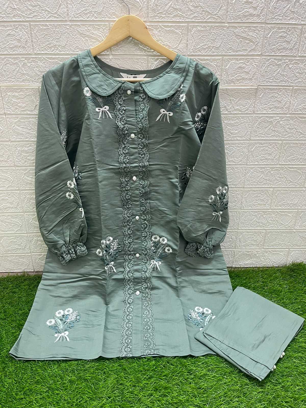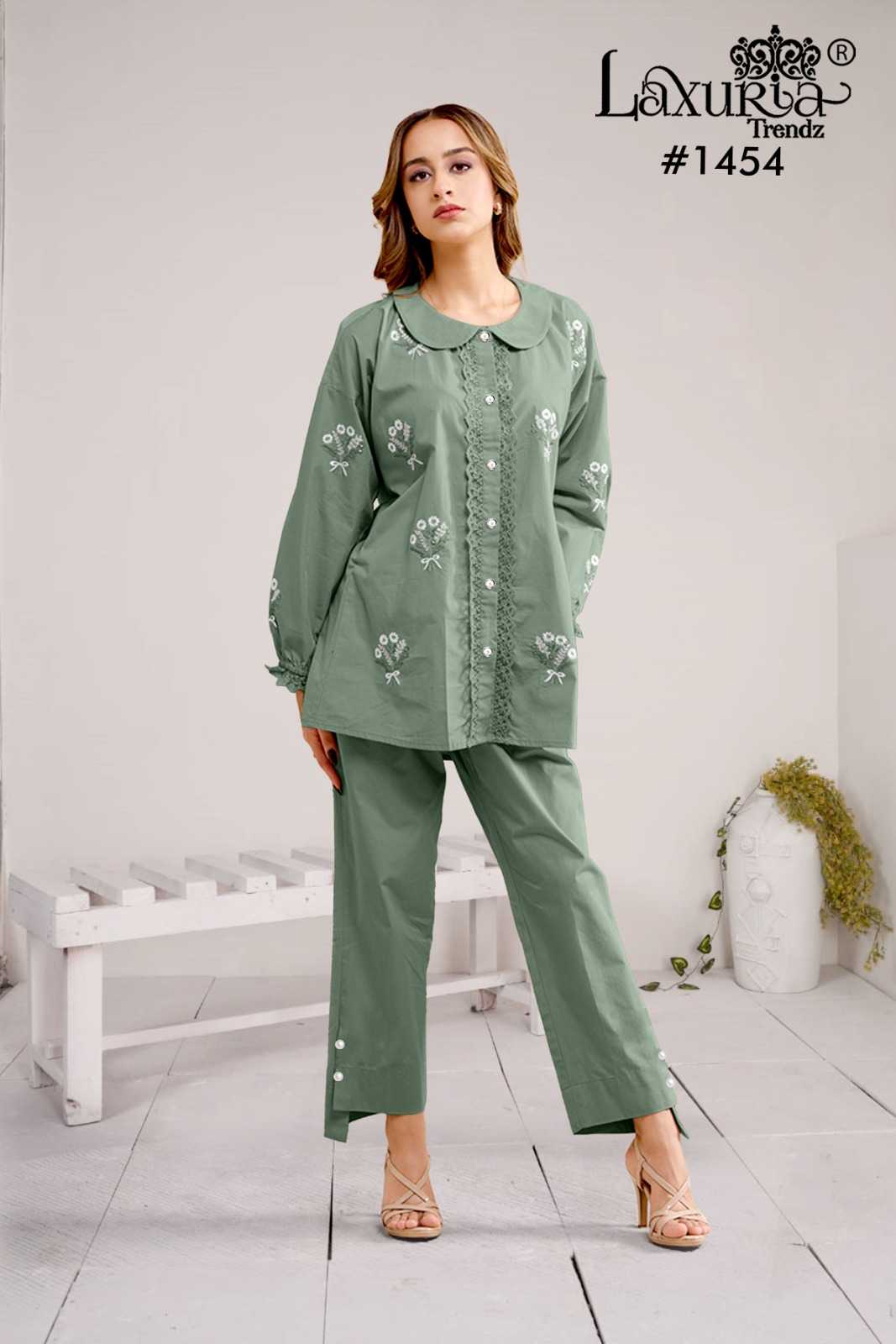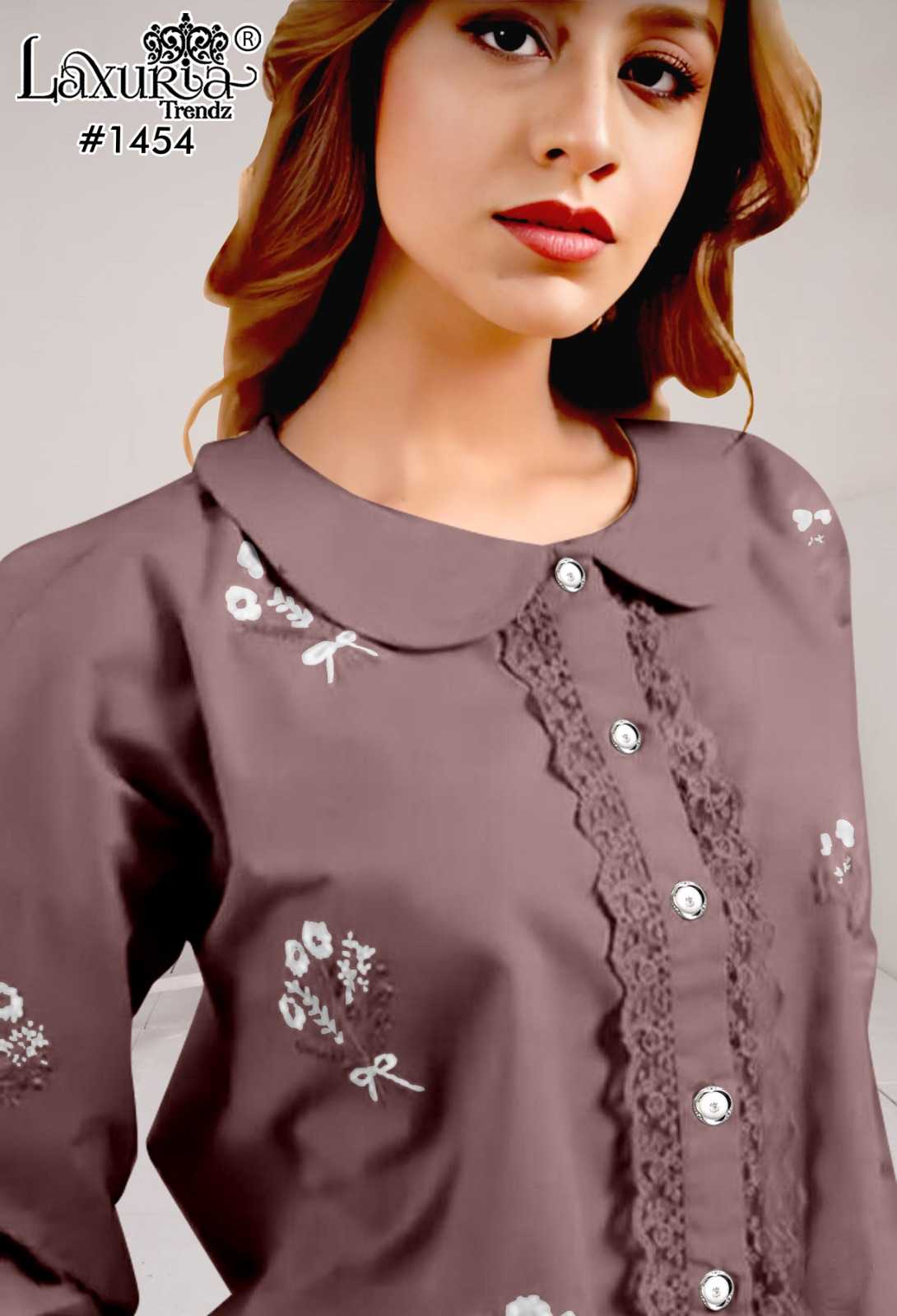 1454 by laxuria trendz gorgeous look roman silk full stitch kurti with pant