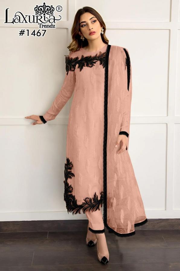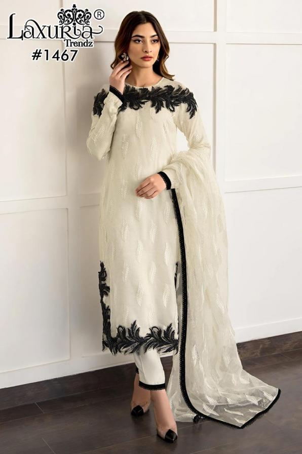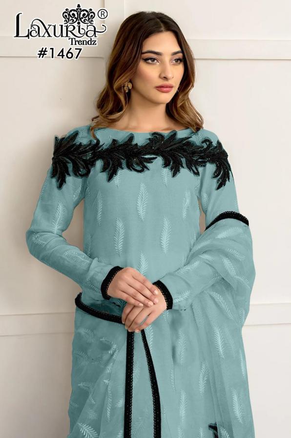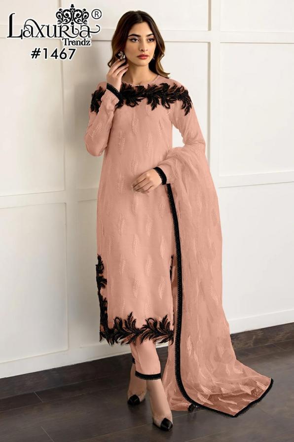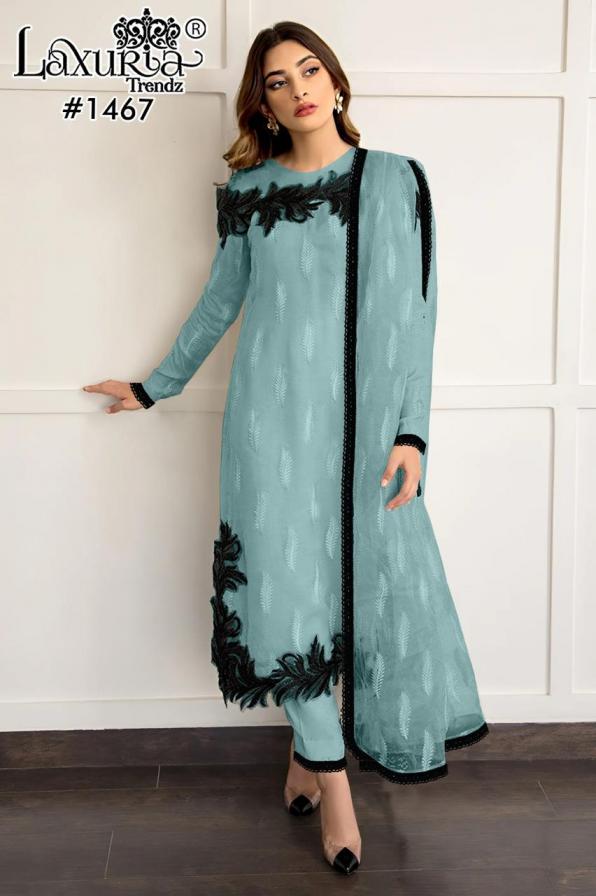 1467 by laxuria trendz fox georgette fashionable full stitch pakistani dress