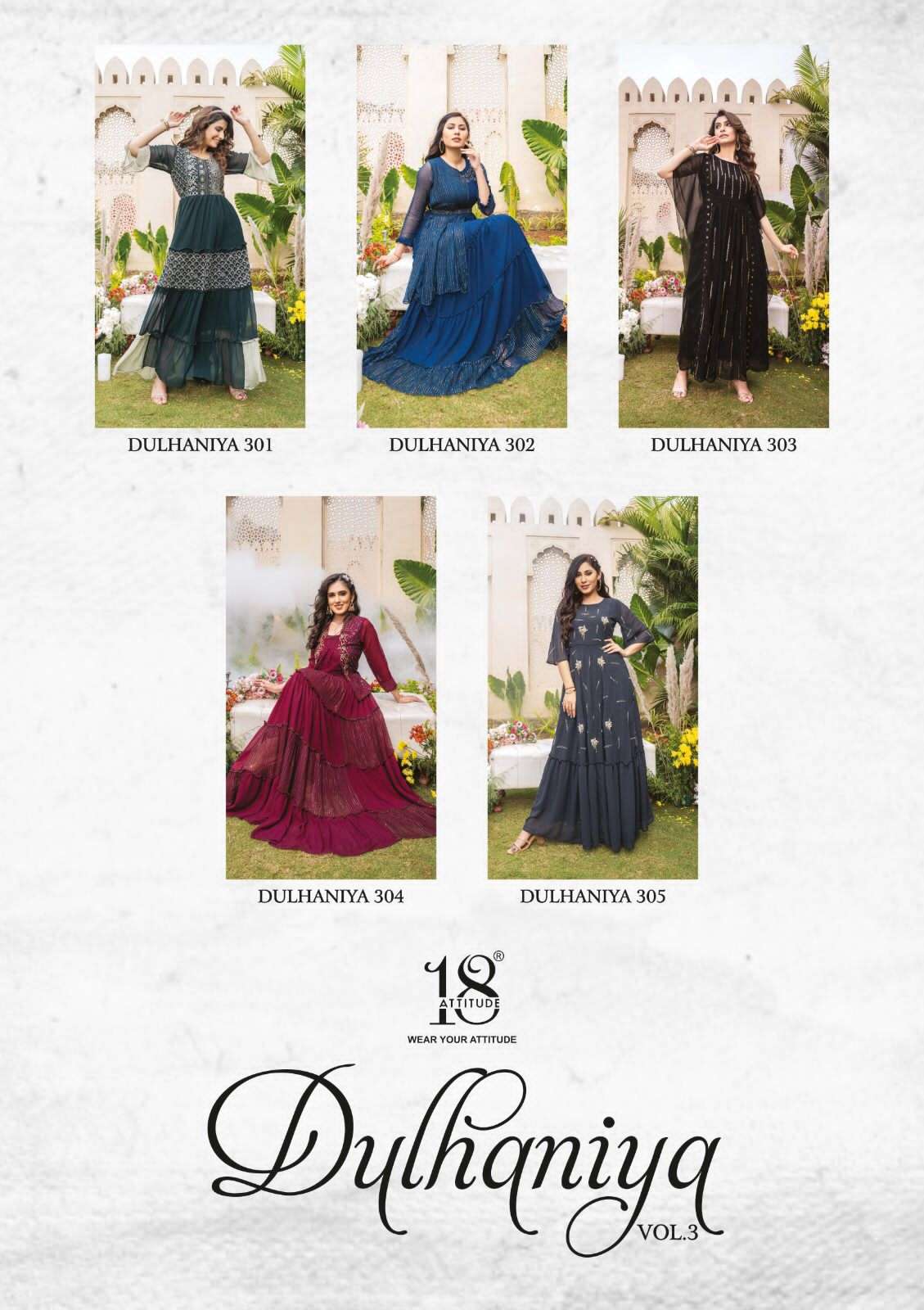 18 attitude dulhaniya vol 3 designer one piece kurtis collection 2023