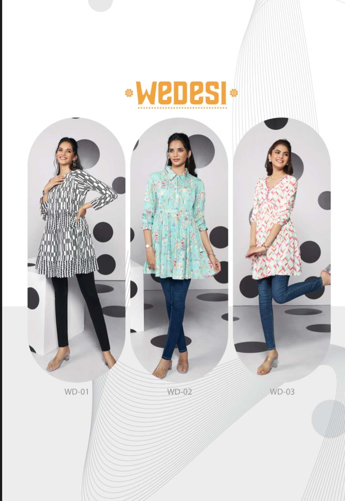 Breathe in the most refreshing prints of the season ,Presenting"WE-DESI". To accentuate your curves, In Beautiful necklines , Fine detailings & flared silhouettes add on to perfection ! Fabric :-Cotton & Premium Rayon Note- colors may vary slightly due to the light effect during photography. *Dispatching__ Saturday |