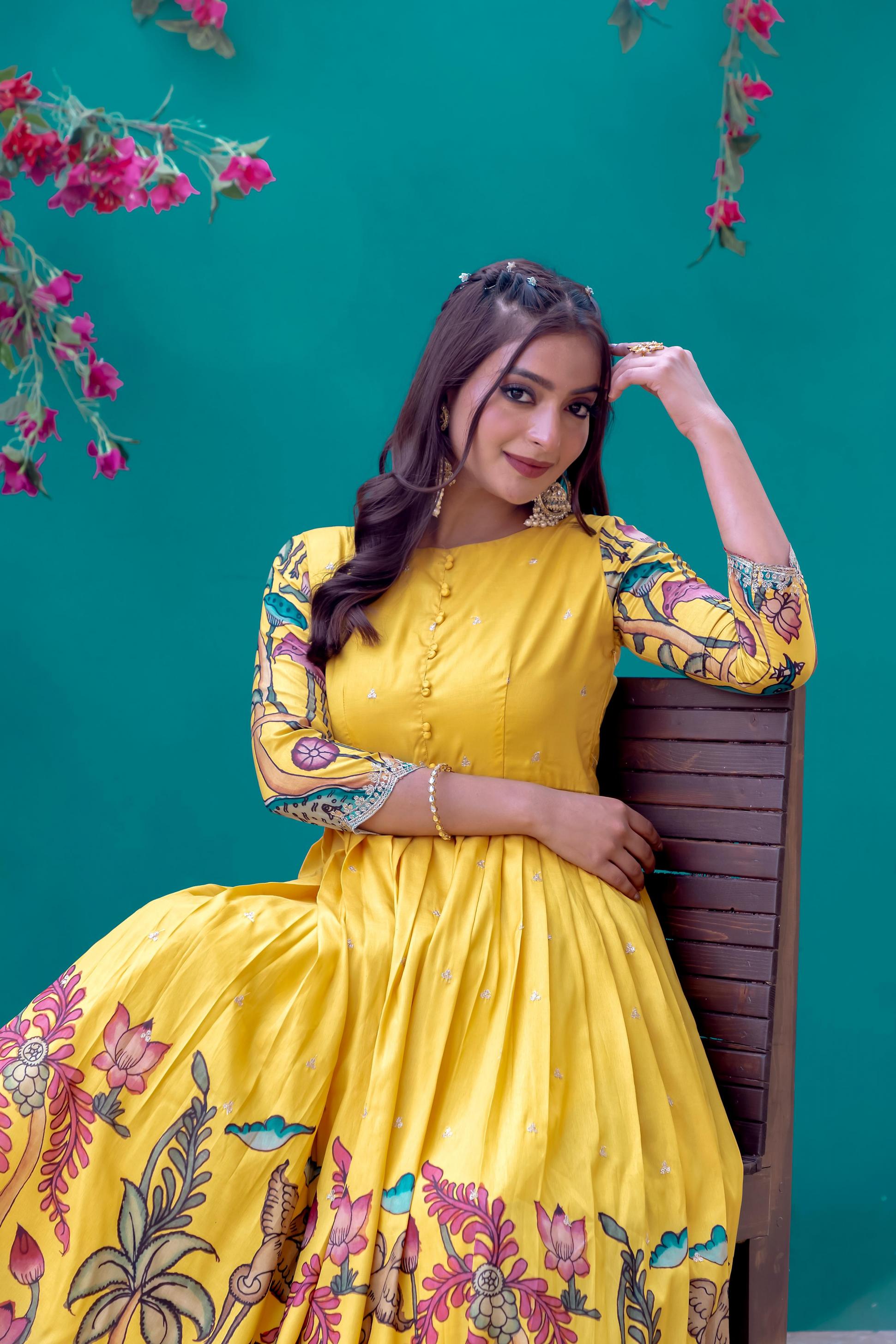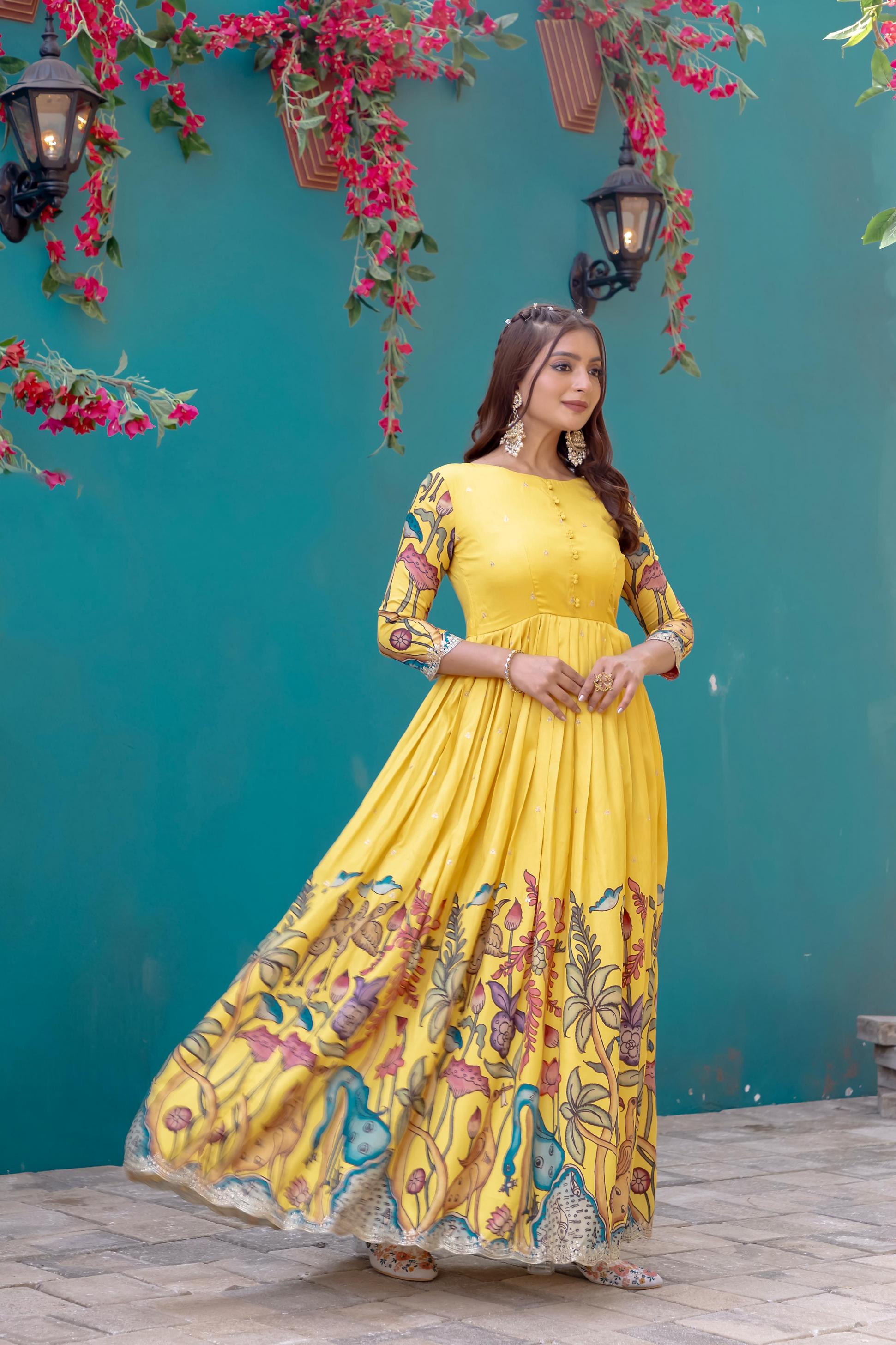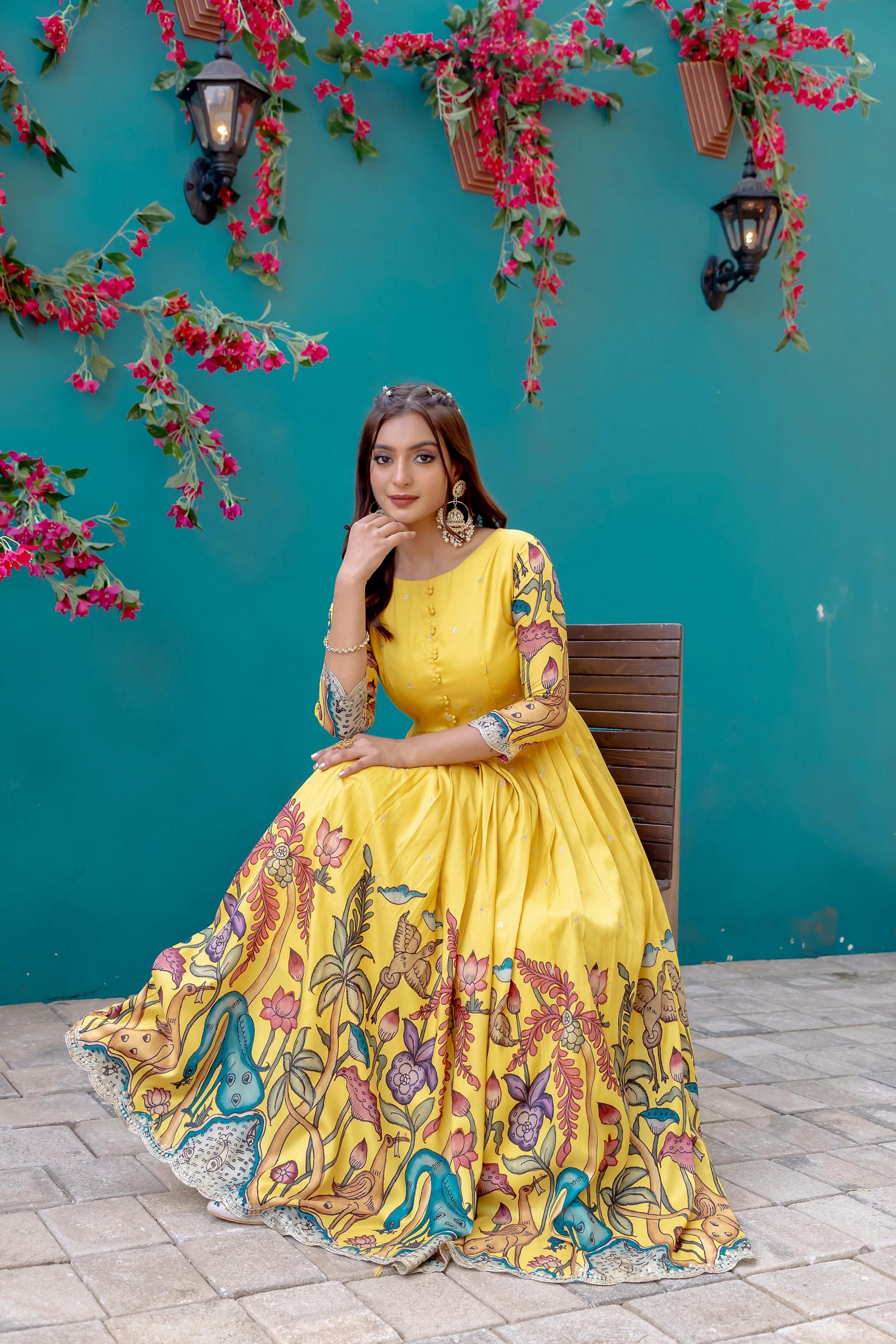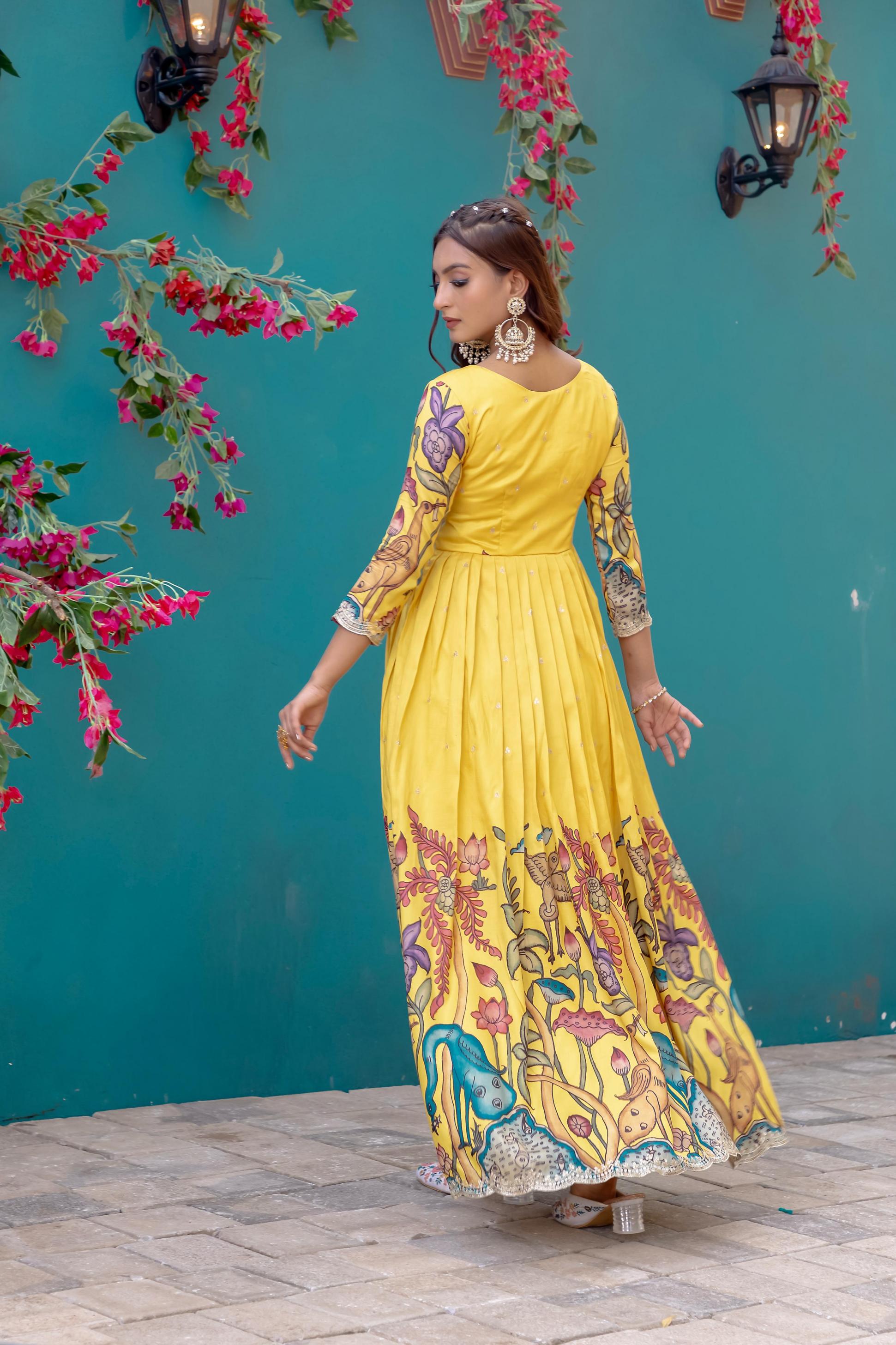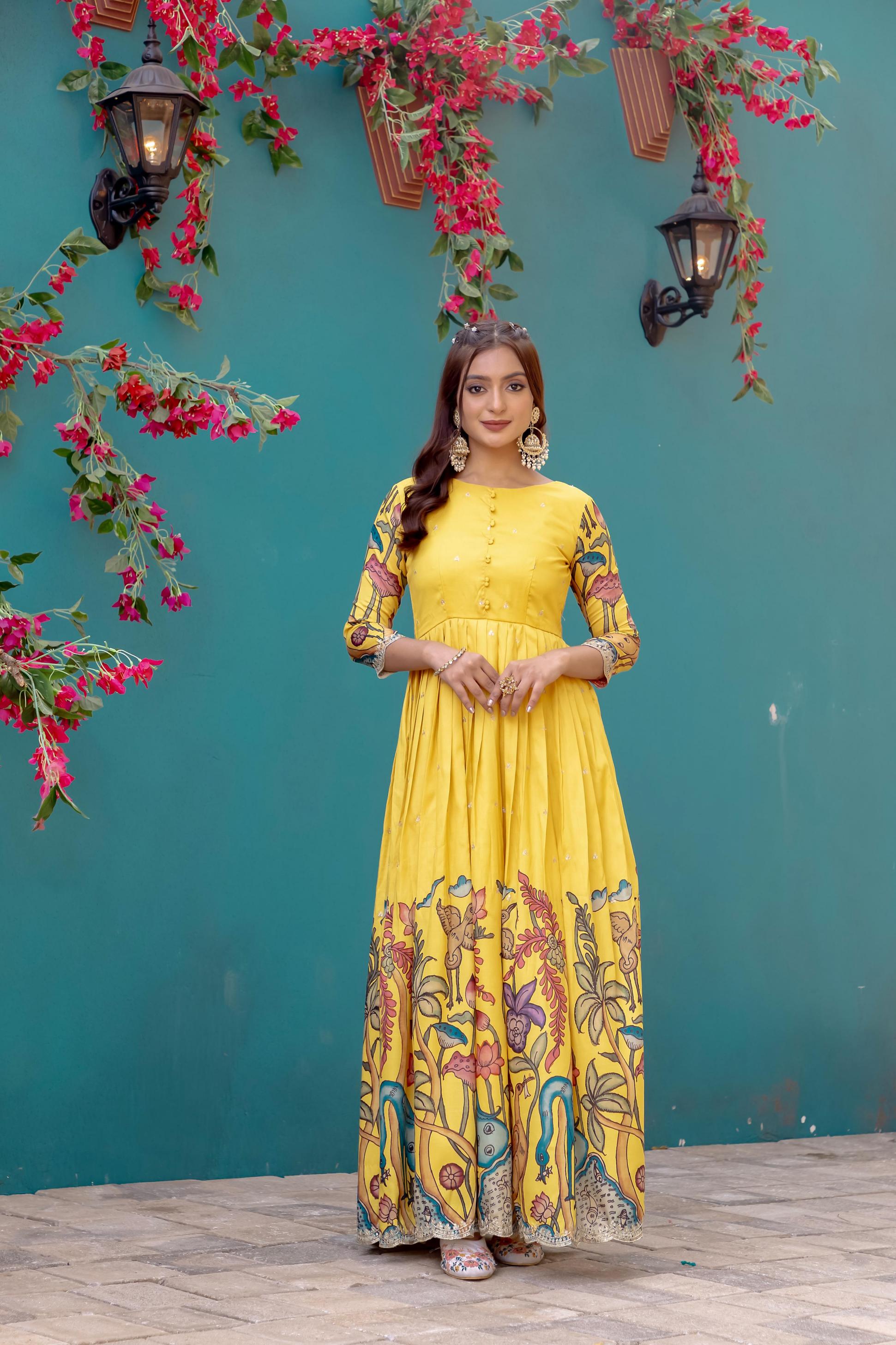 🌺New catalog🌺 Design No : 200002 This printed gown with 3/4th sleeves and scallop embroidery details is a must-have addition to your wardrobe for any occasion. Its elegant design and flattering silhouette make it perfect for both casual and festive events. Gown fabric :- silk blend Price:- 1699/- Note :- Size customization is available as per requirements. |