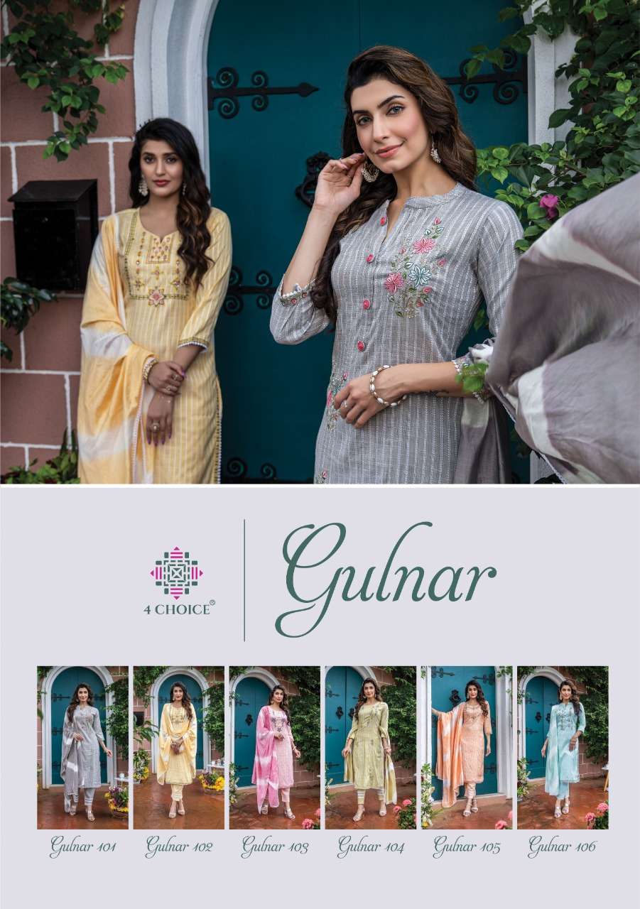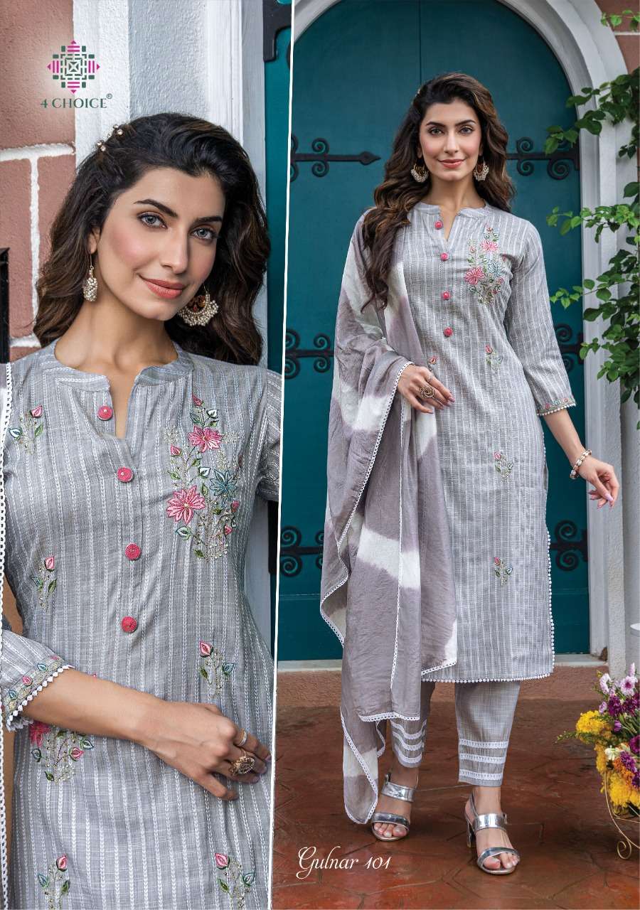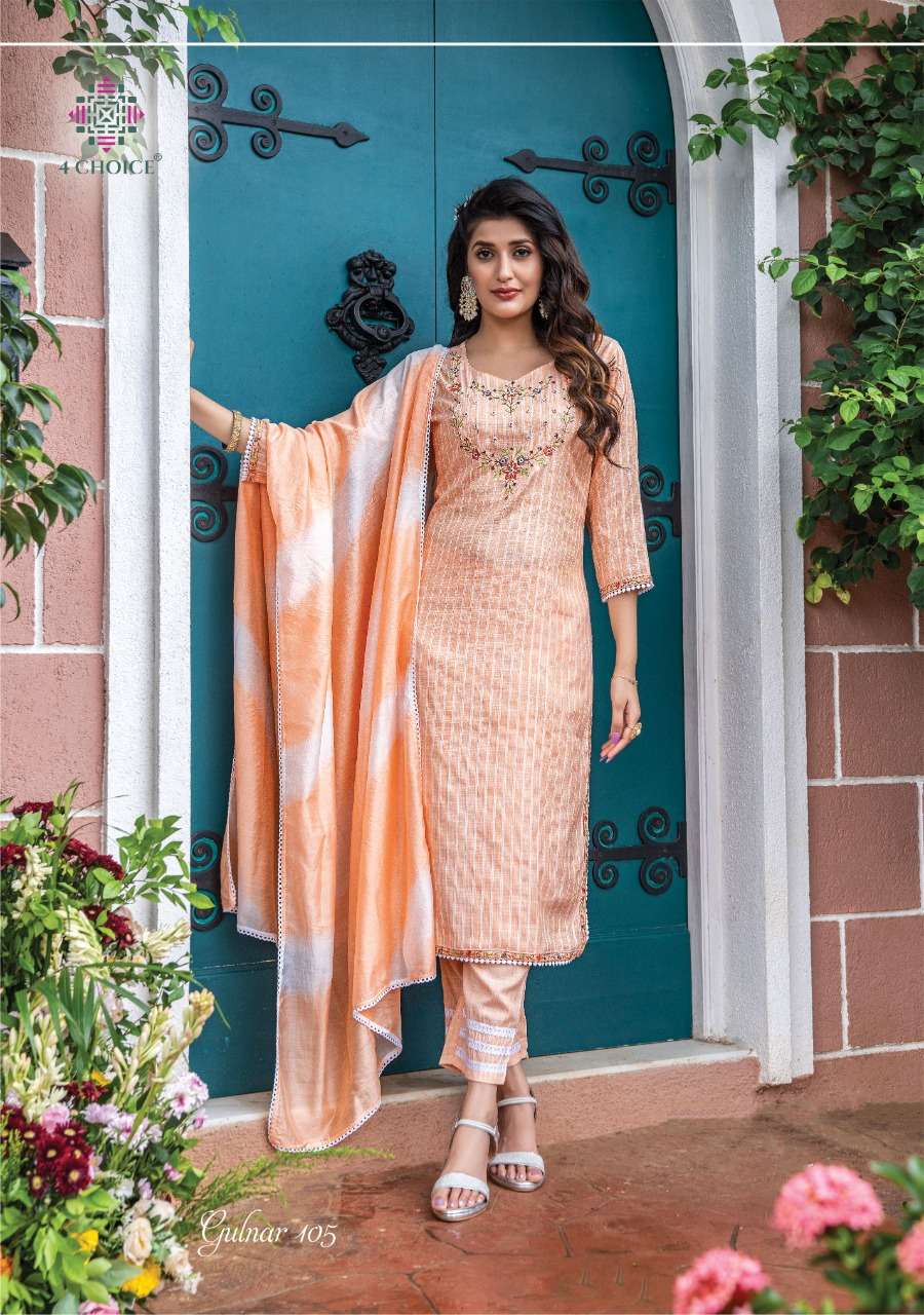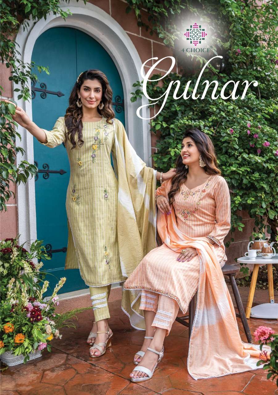 4 choice gulnar stylish 3 piece top with pant and dupatta stitched collection