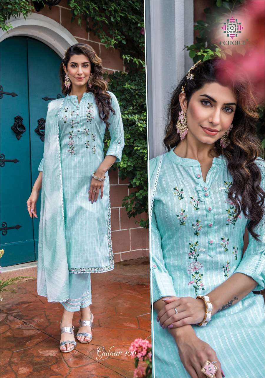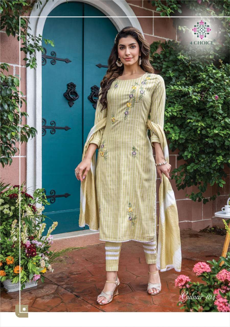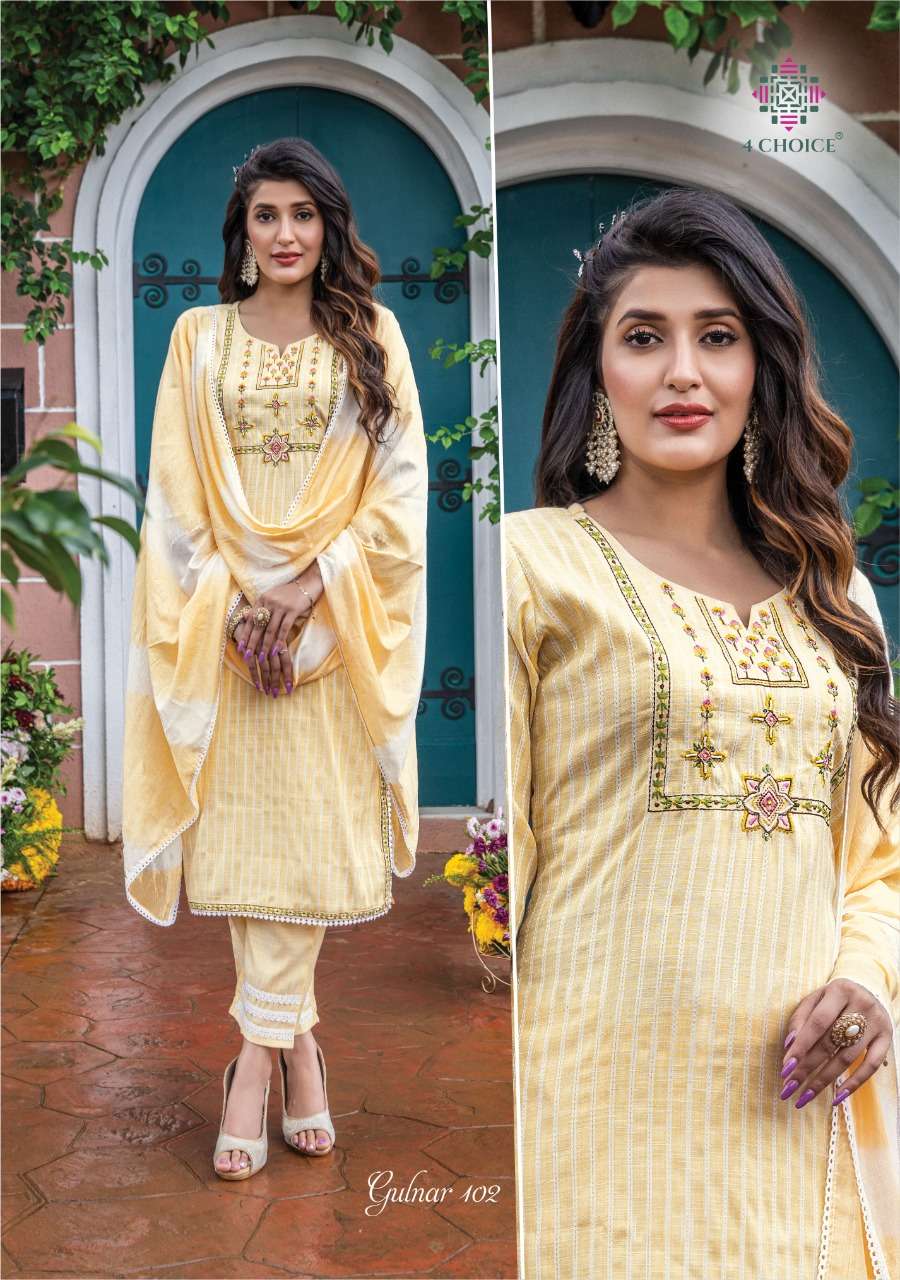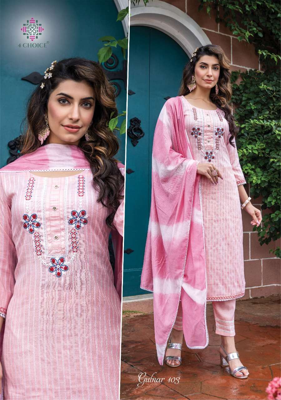 4 choice gulnar stylish 3 piece top with pant and dupatta stitched collection