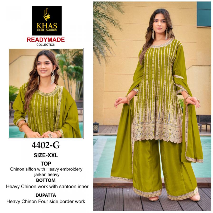 4402 by khas chinon chiffon readymade designer plazzo kurti dupatta