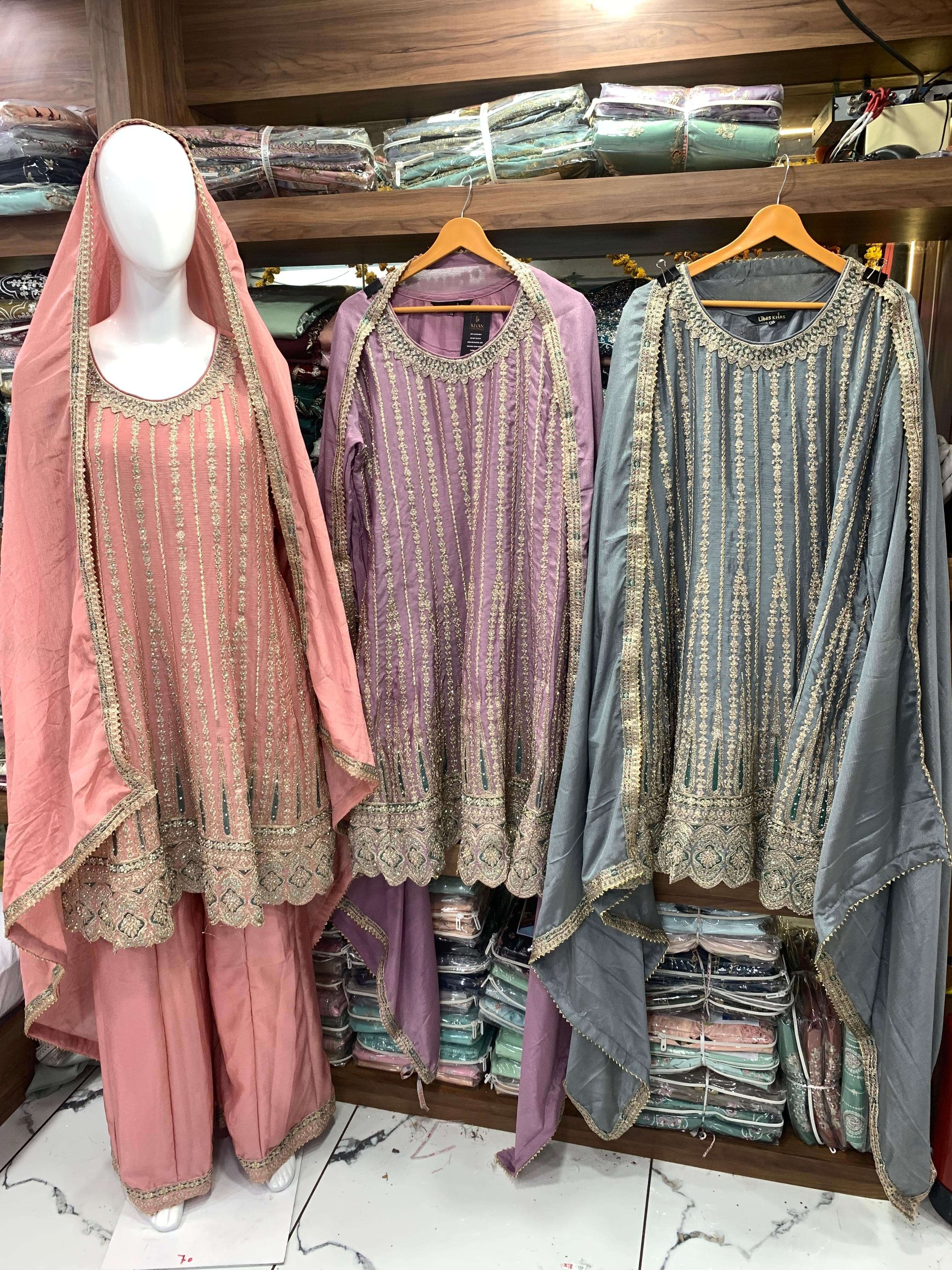 KHAS CHINON SILK BEEUTIFUL NEW RADY MADE COLLECTION READY TO DISPATCH D num _4402 Size- xl/xxl ( 3 pis set,) Rate_1999/- |