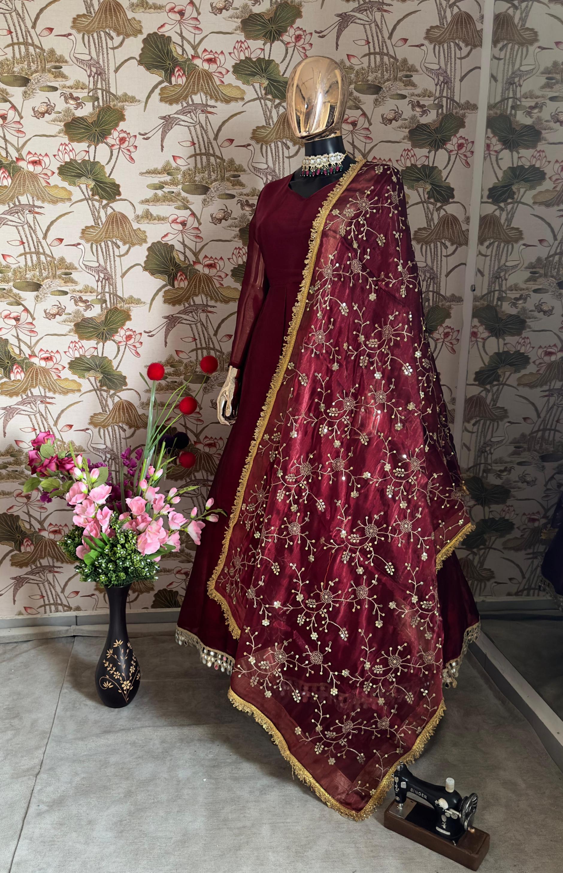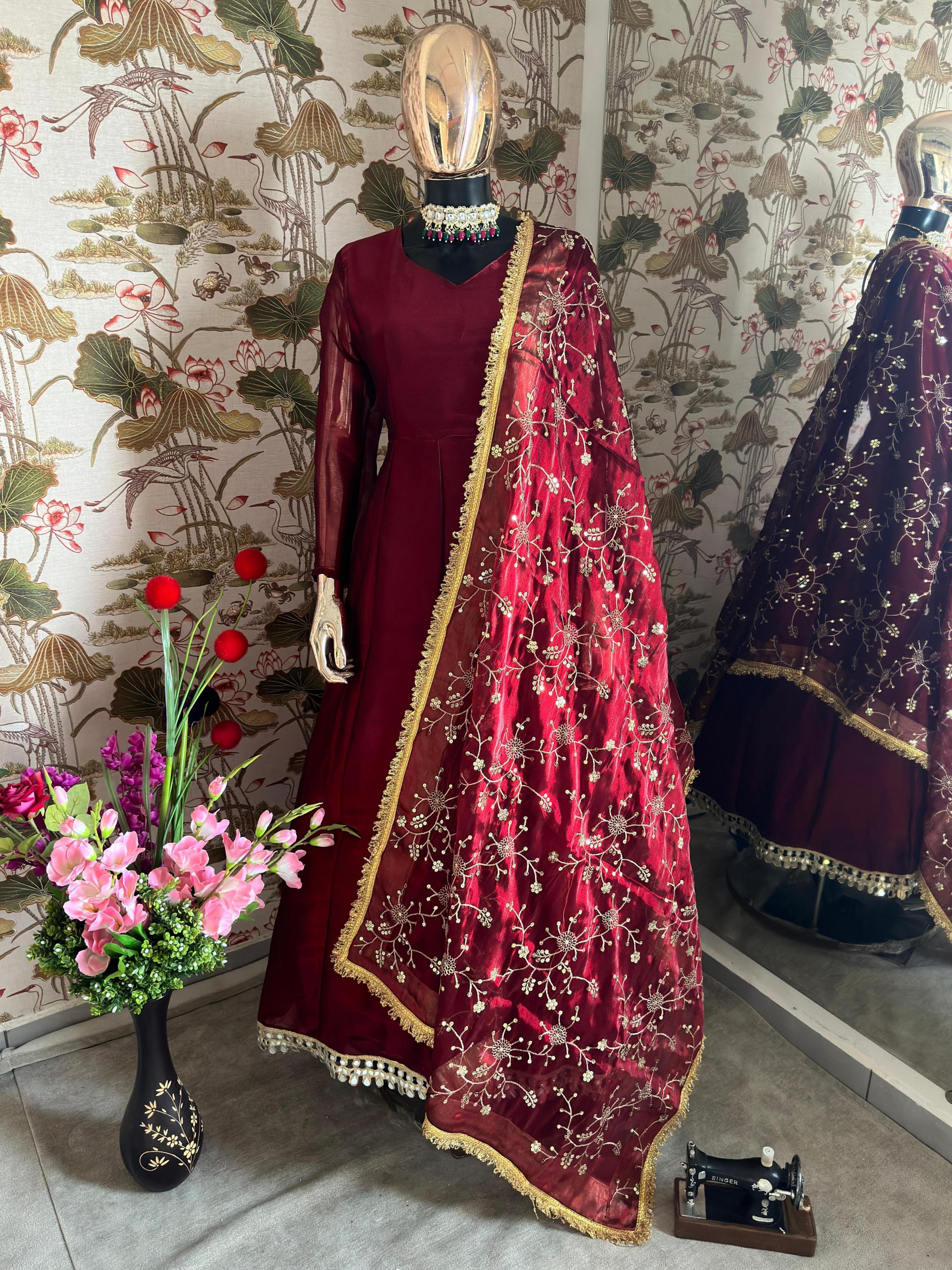 ⭐️DN: 5033 👗GOWN FABRIC :BARBARI SILK WITH FULL FLAIR FULL STEACH GOWN WITH EMBROIDERY LACE BORDER 🧣DUPTTA:BARBARI SILK WITH EMBROIDERY SEQUENCE DESIGN WORK WITH GOTA SATIN ZALAR LACE BORDER WITH GOTA PACKING 👖BOTTOM:CRAP WITH FULL STEACH WITH ELASTIC RUBBER 👗GOWN FLAIR: 3MTR+ 📏SIZE: M,L,Xl,2XL 💴RATE: 1150₹ ✅DESIGNER PREMIUM BOUTIQUE COLLECTION |
