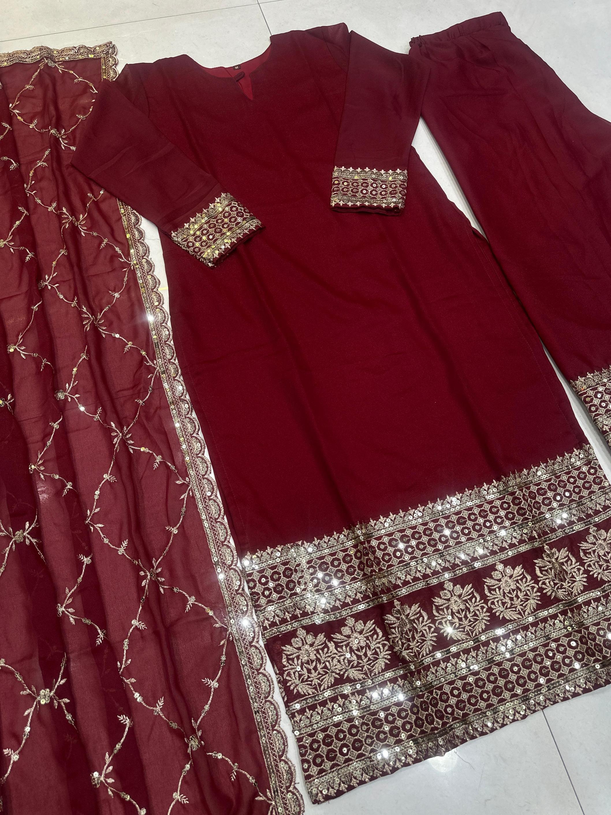 💃🏼Elegance redefined: maroon embroidery kurti with dupatta and pant ✍️DN: 5064 📝FABRIC DETAILS INNER:CRAP 🧣DUPATTA:STAR GEORGEET WITH EMBROIDERY SEQUENCE DESIGN WORK 👖BOTTOM/PANT:STAR GEORGEET WITH EMBROIDERY DESIGN WORK AND FULLY STEACH WITH ELASTIC RUBBER 👘SIZE:M,L,XL,2XL ⚖️WEIGHT:760GMS 💵RATE: 1150 ✅दिखायेंगे, वो ही आयेगा। |
