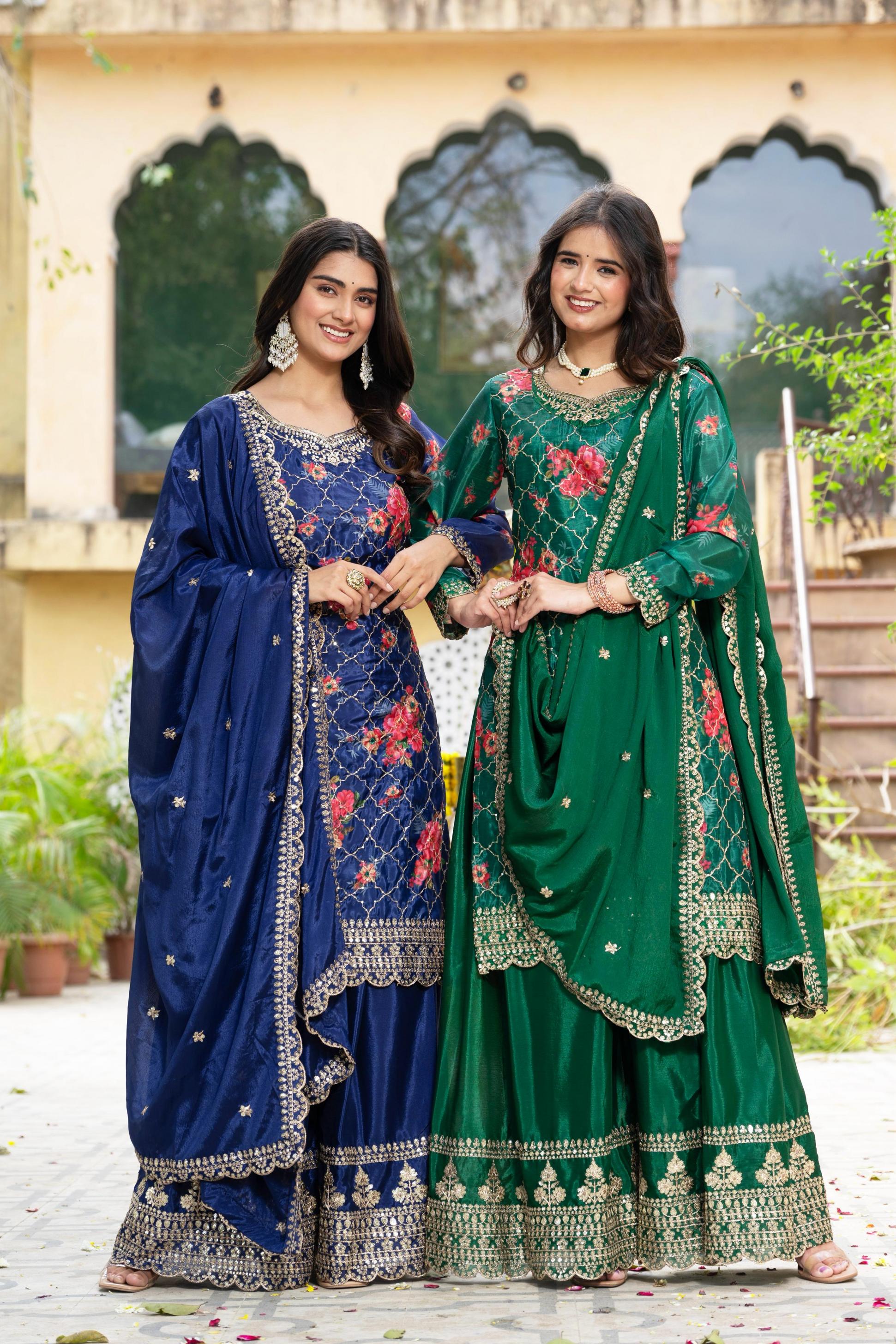 ✔️PREMIUM 👗 DRESS SERIES NAME: *✍️DN: 5085 📝FABRIC DETAILS INNER:CRAP 🧣DUPATTA:CHINON WITH EMBROIDERY SEQUENCE DESIGN WORK 👖PLAZO:CHINON SILK WITH EMBROIDERY SEQUENCE DESIGN WORK WITH FULL FLAIR WITH FULL STEACH WITH ELASTIC RUBBER 👘SIZE: M,L,XL,2XL 💵RATE: 1195/- ₹ ✅BOUTIQUE AND SHOWROOM COLLECTION |