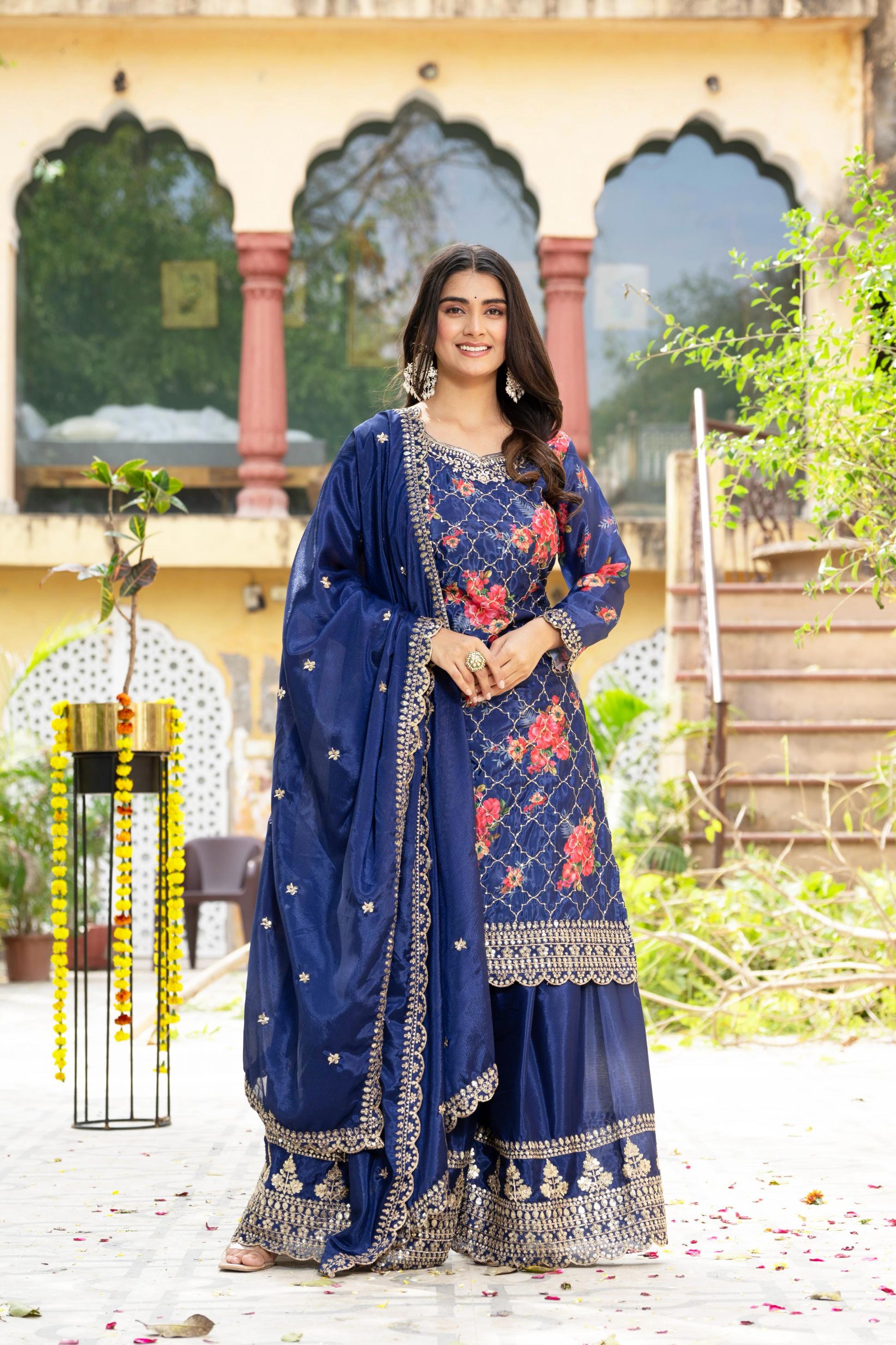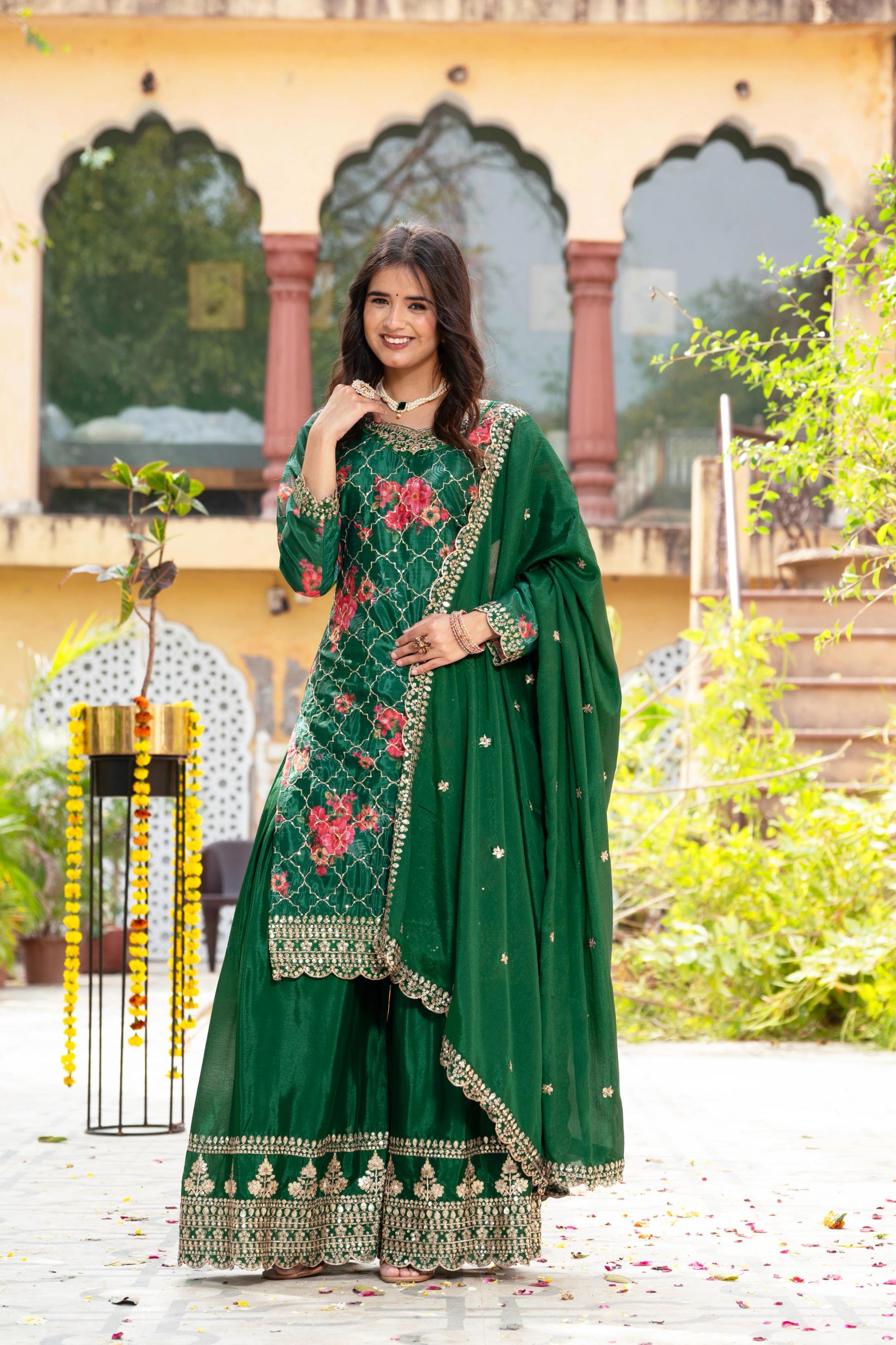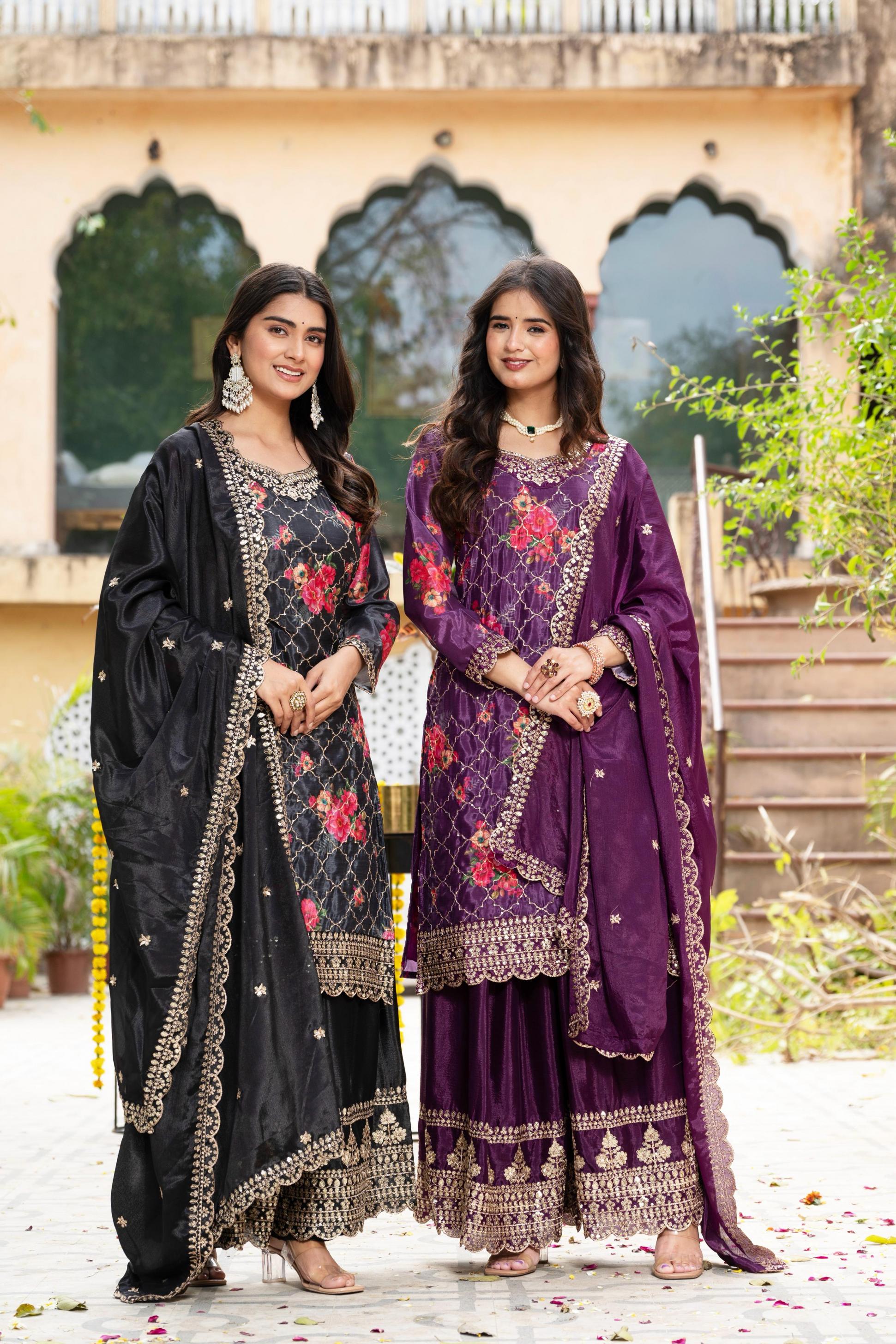 5085 chinon readymade occasion wear plazzo kurti with dupatta for womens