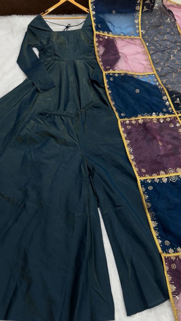 5113 hit design fully stitch roman simmer silk combo plazzo kurti with dupatta