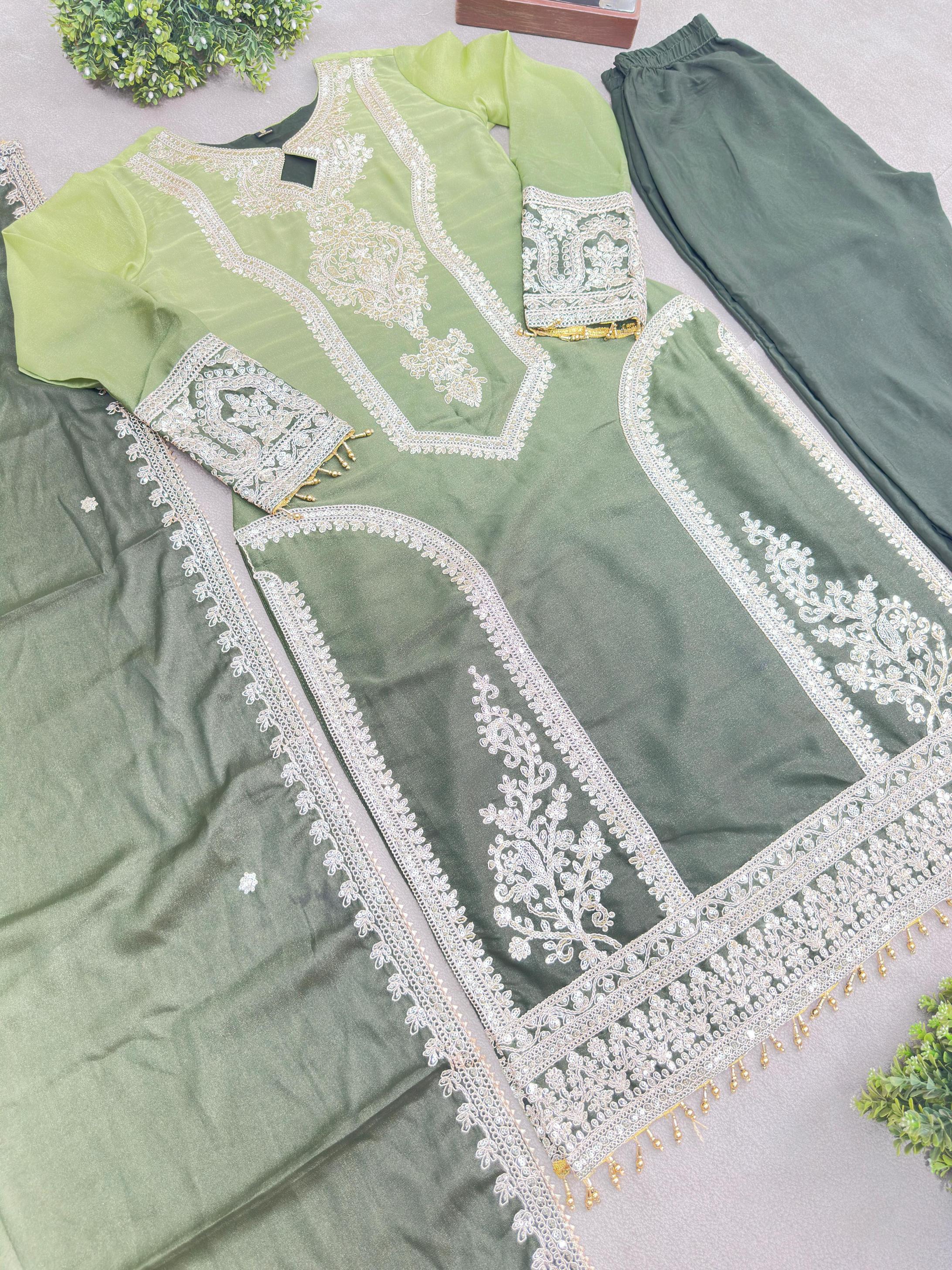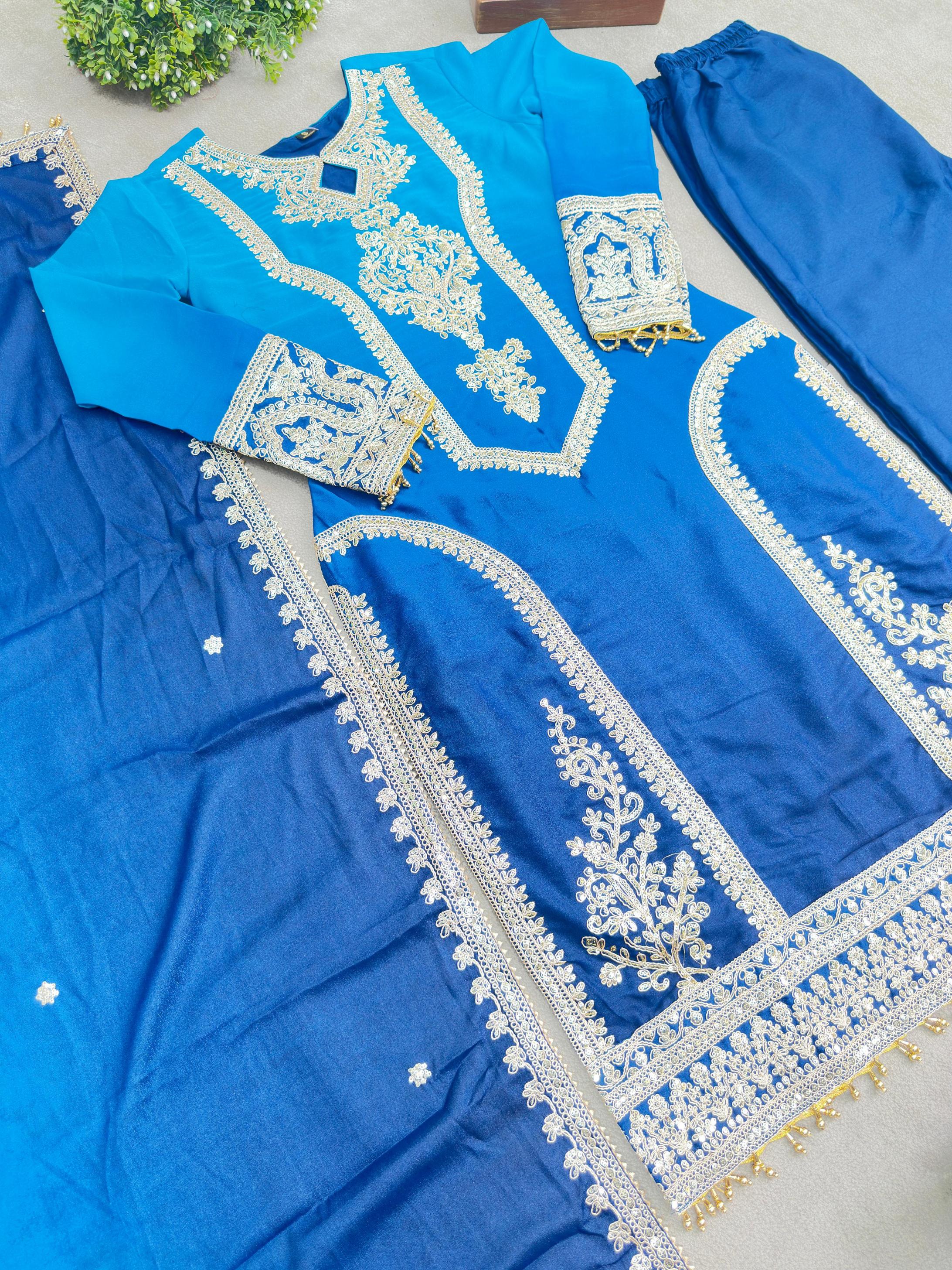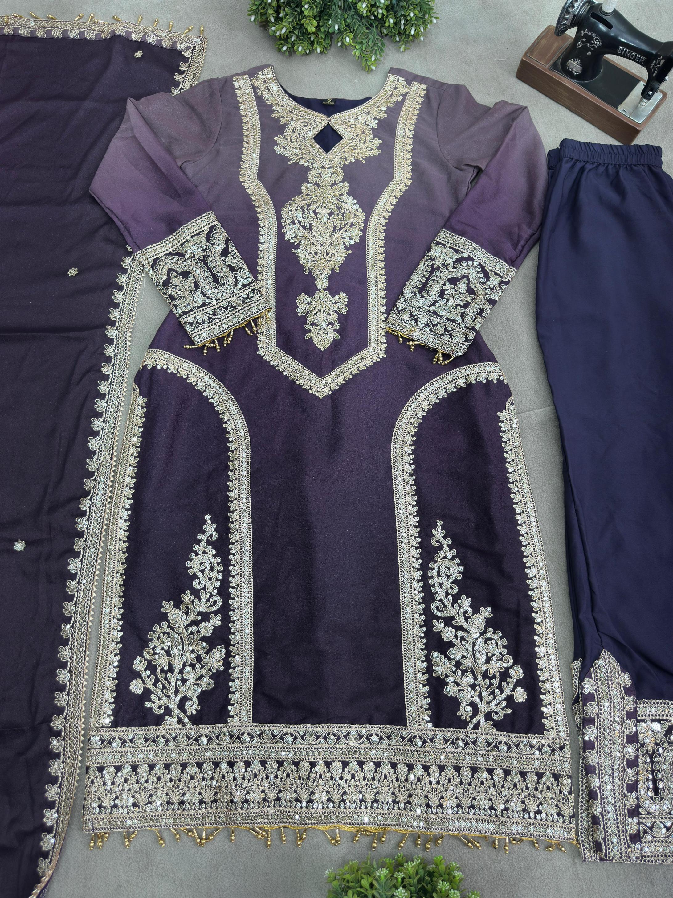 REAL MODEL SHOOT DESIGN “Radiating grace in royal blue,purple,majenta,pista green,colour This intricately embroidered ethnic ensemble, paired with a sheer dupatta and golden accents, is the perfect blend of tradition and sophistication.” DN: 5114 👗TOP 👖BOTTOM Fabric :- CRAP 👗Dupata Fabric : STAR GEORGEET PEDDING Weight :- 1KG Price:- 1095₹ ❤️PREMIUM AND SHOWROOM COLLECTION |