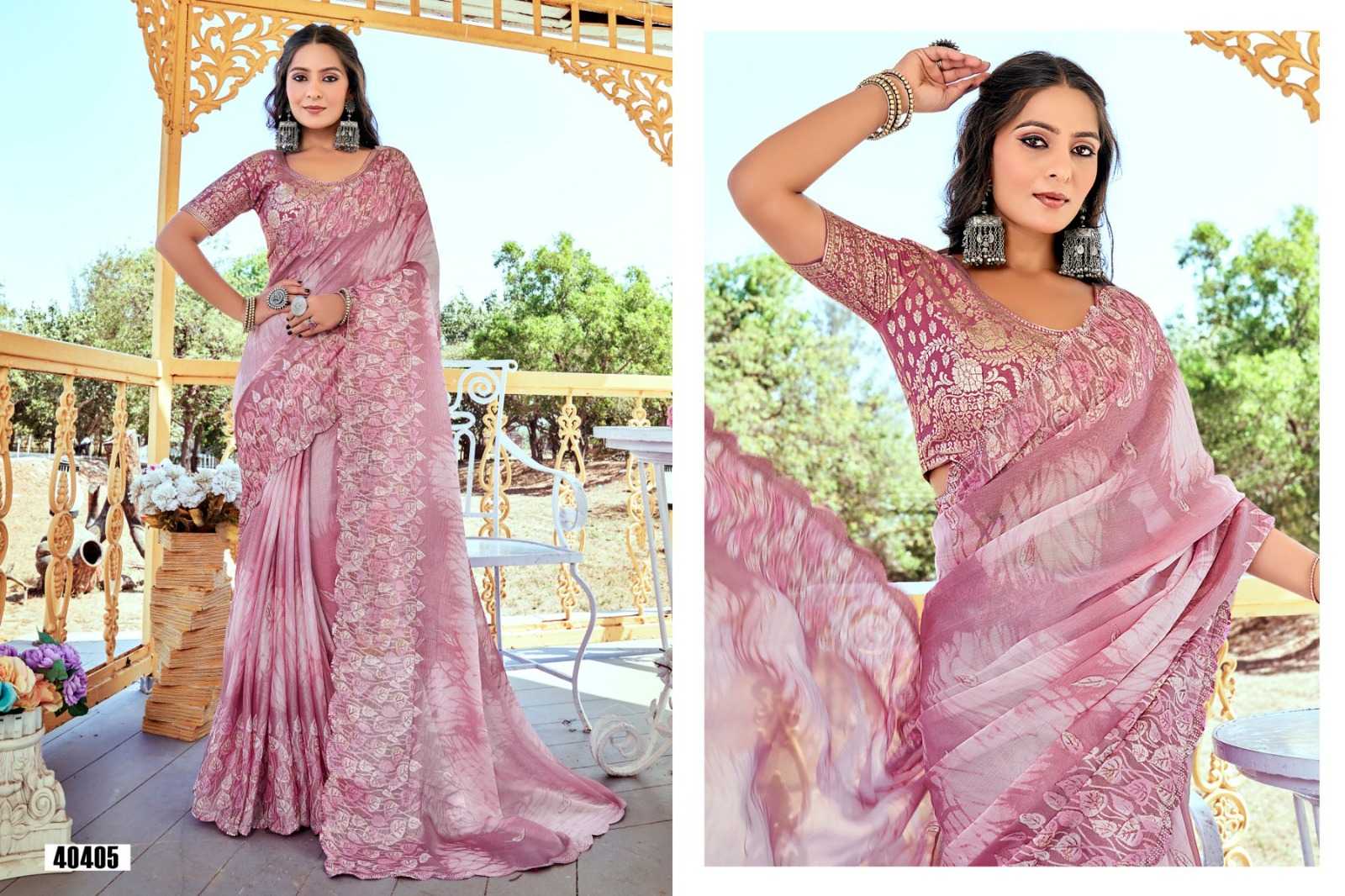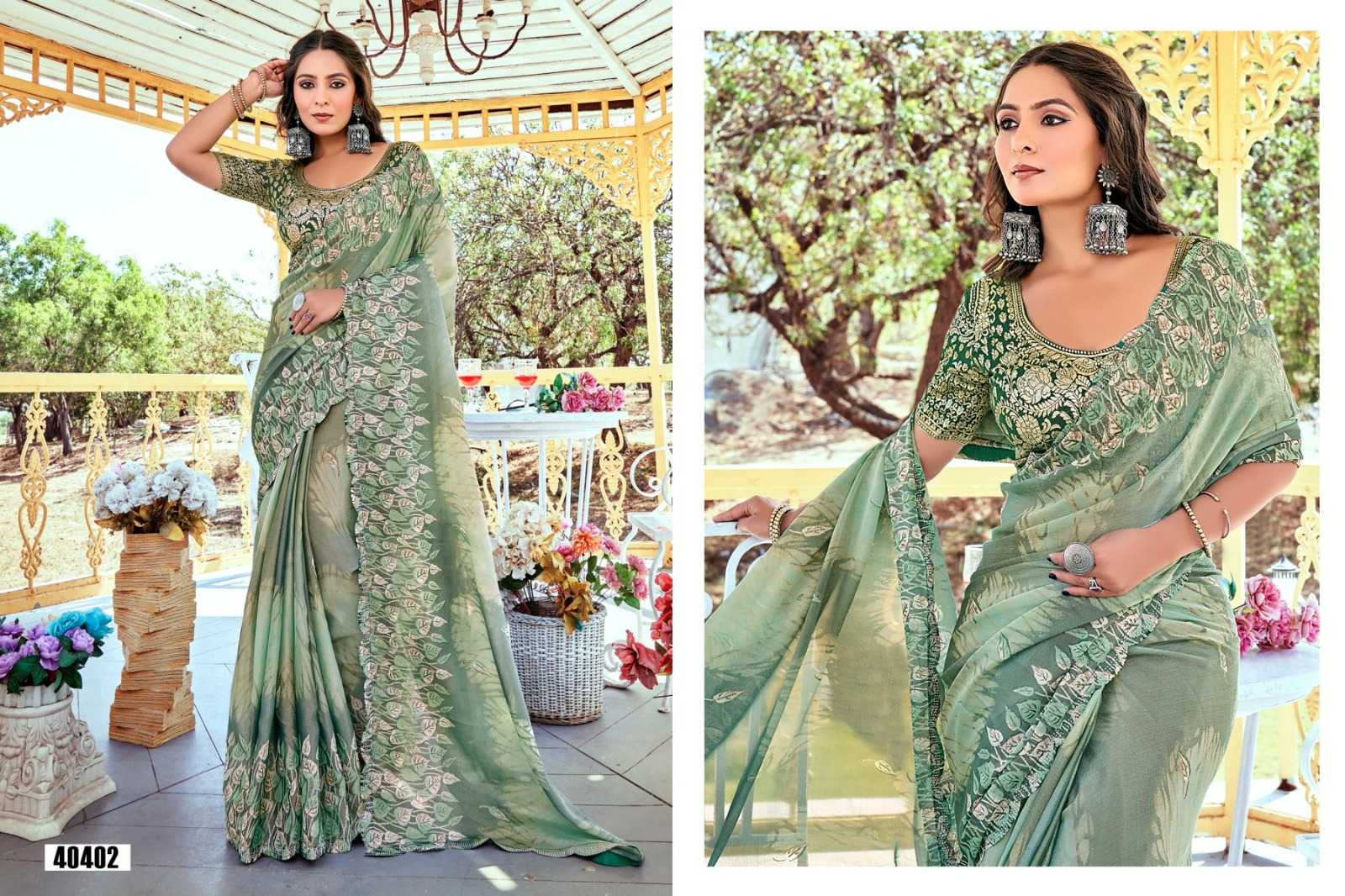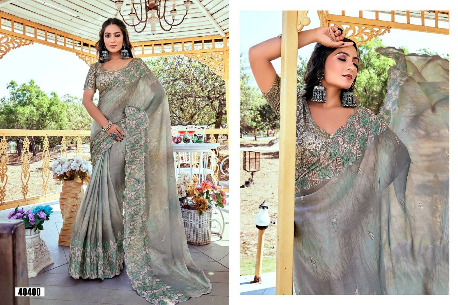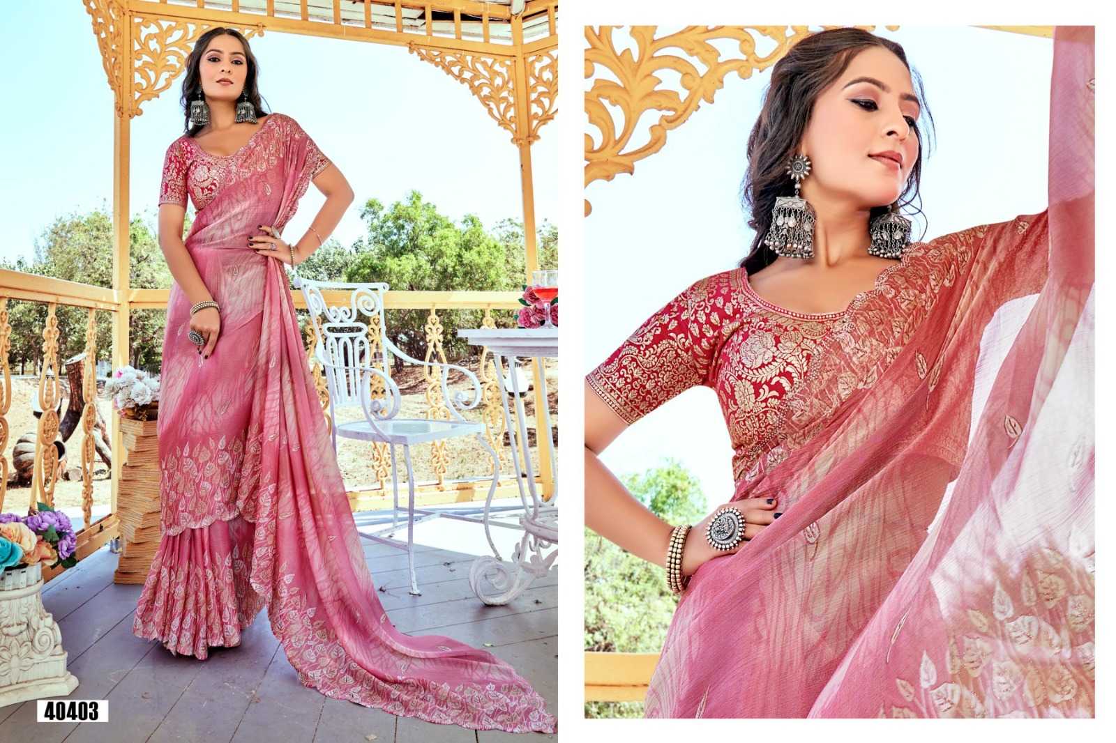 5d designer paridhi vol 4 comfy wear chiffon brasso sarvoski work saree with weaving blouse