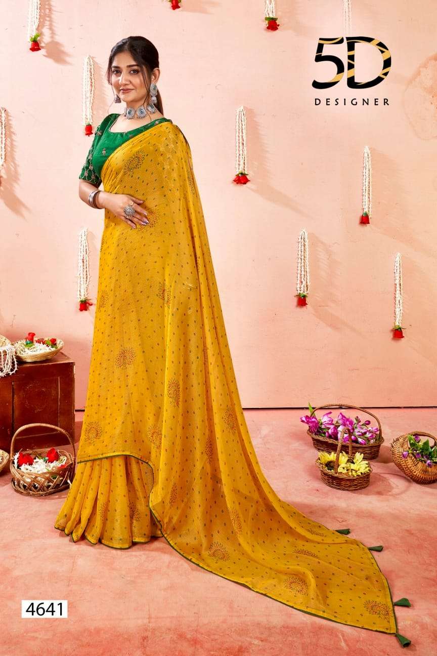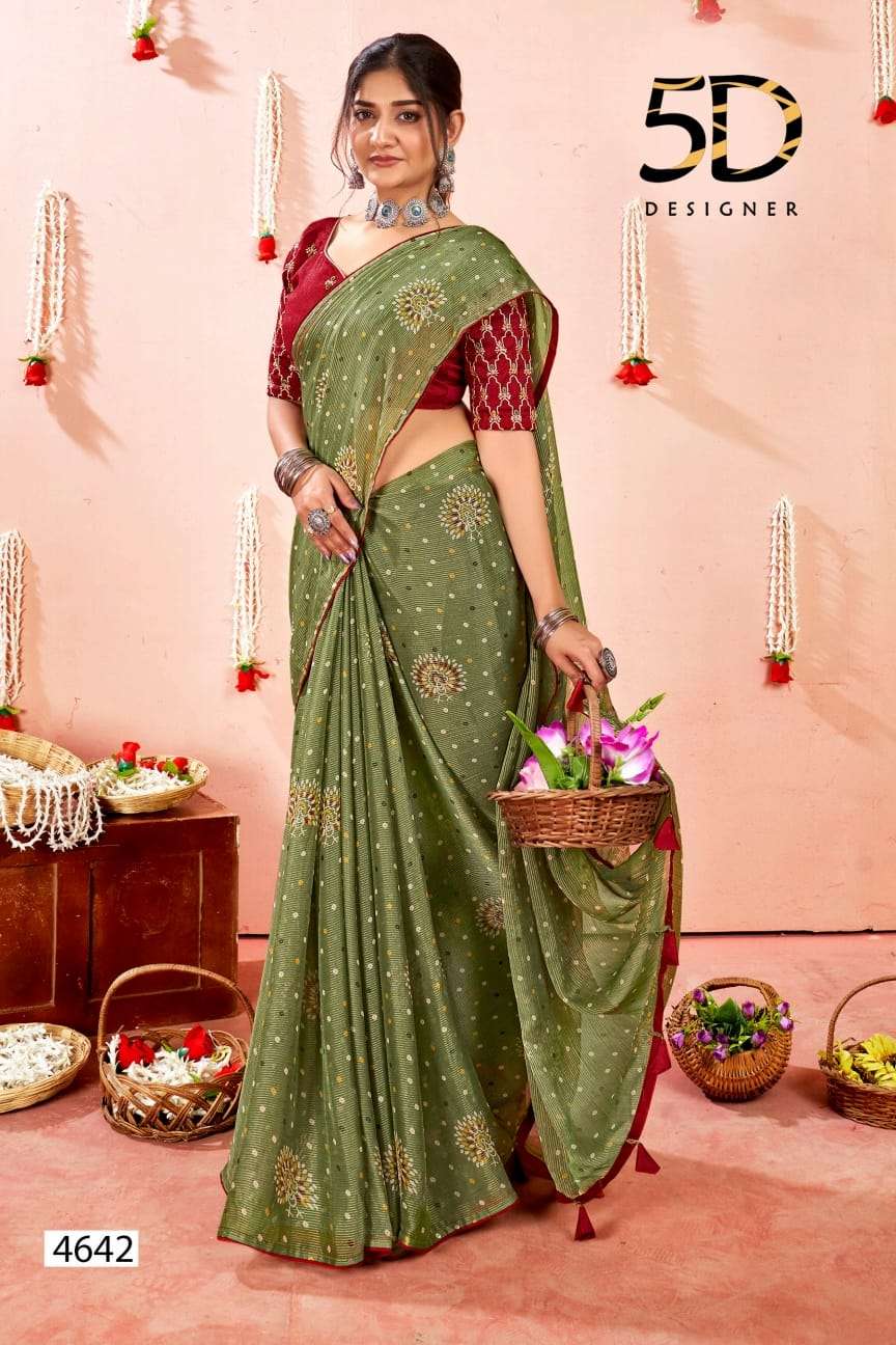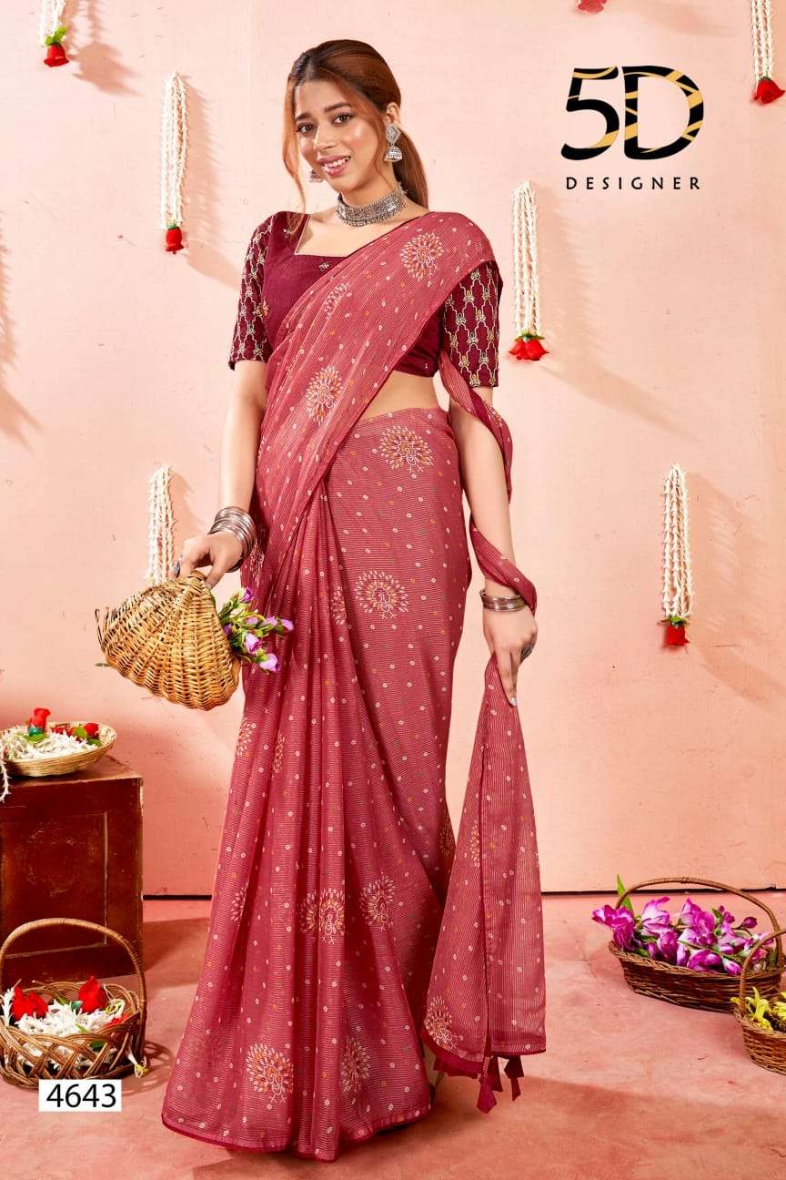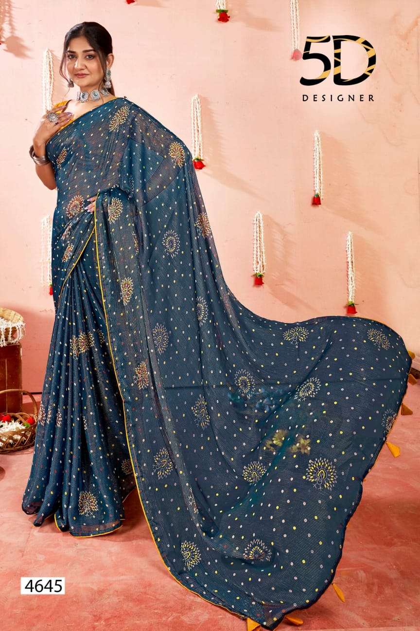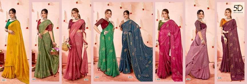 5d designer present bindu fancy chiffon saree with work blouse collection