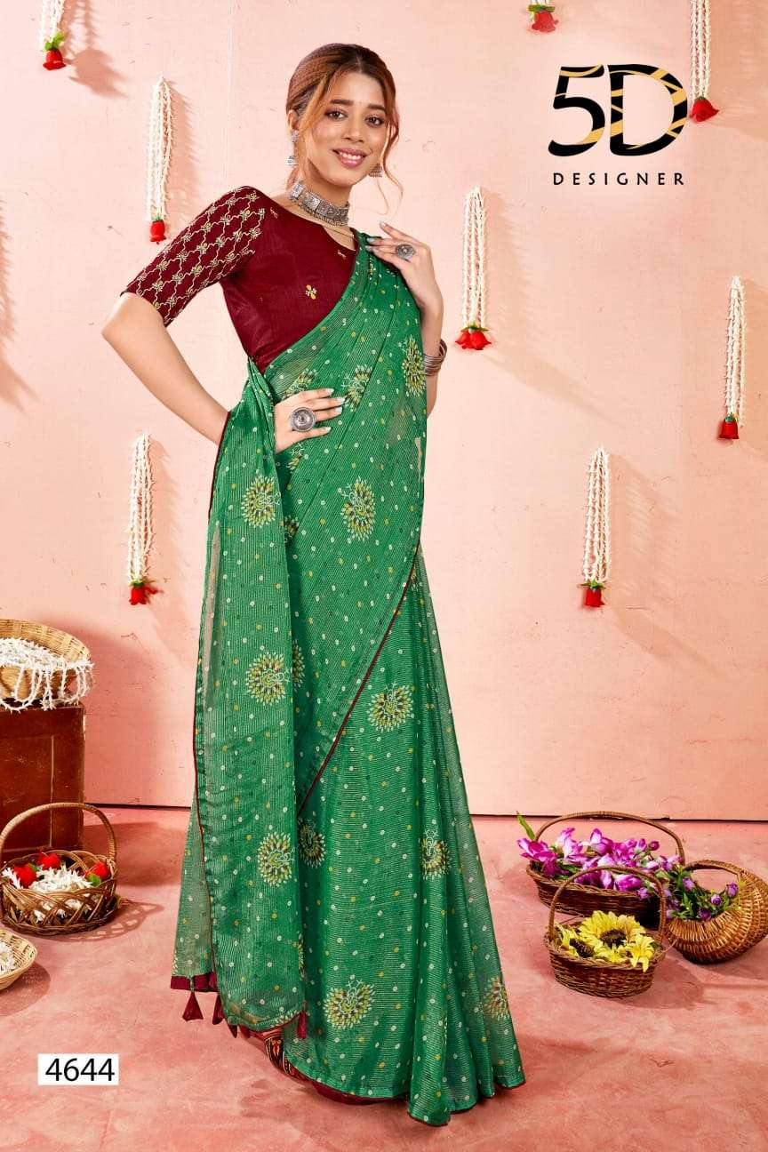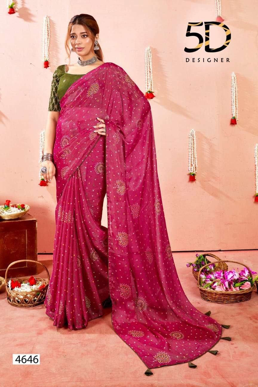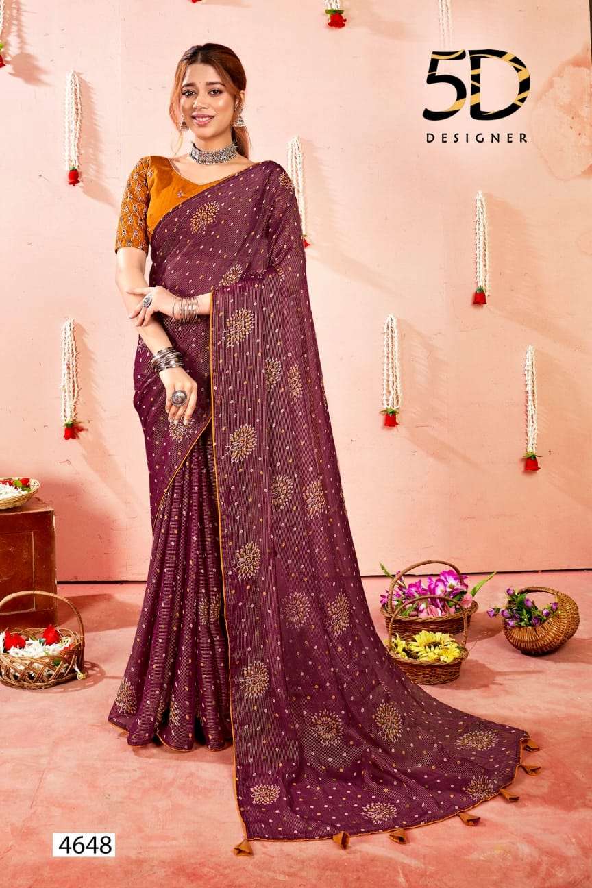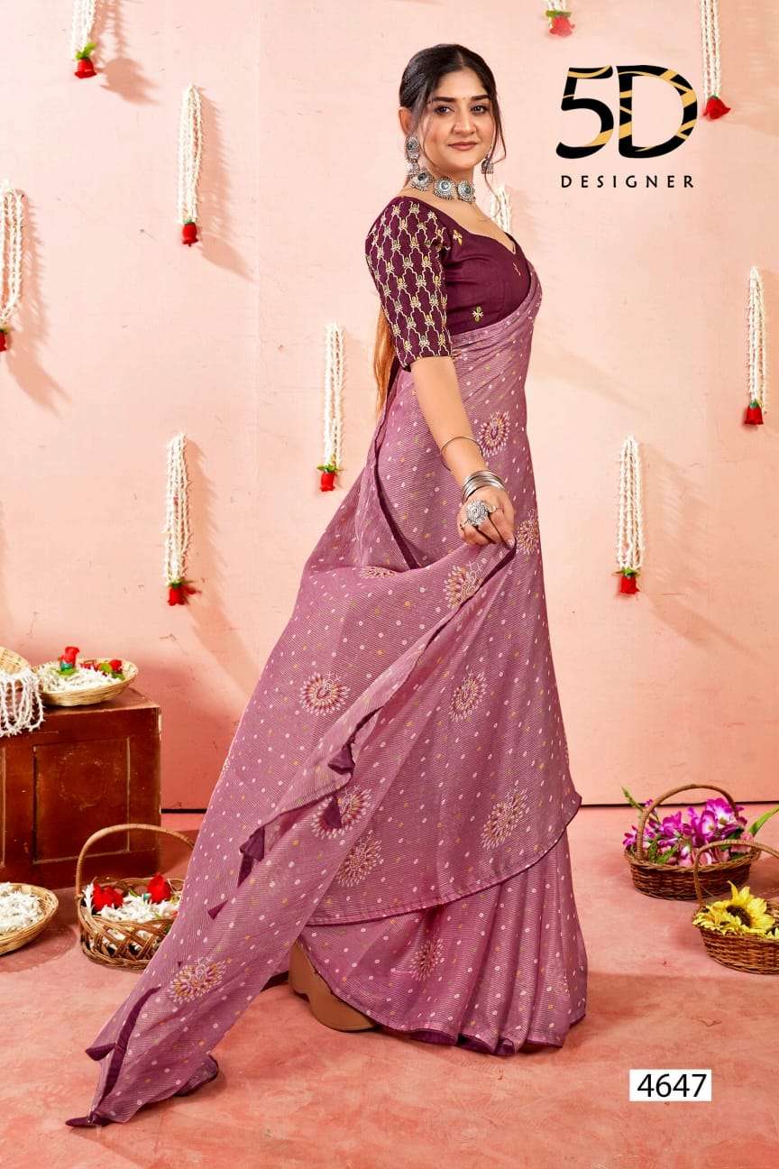 5d designer present bindu fancy chiffon saree with work blouse collection