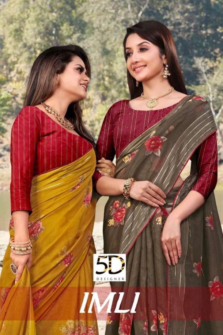 5d designer present imli fancy cotton zari print saree collection