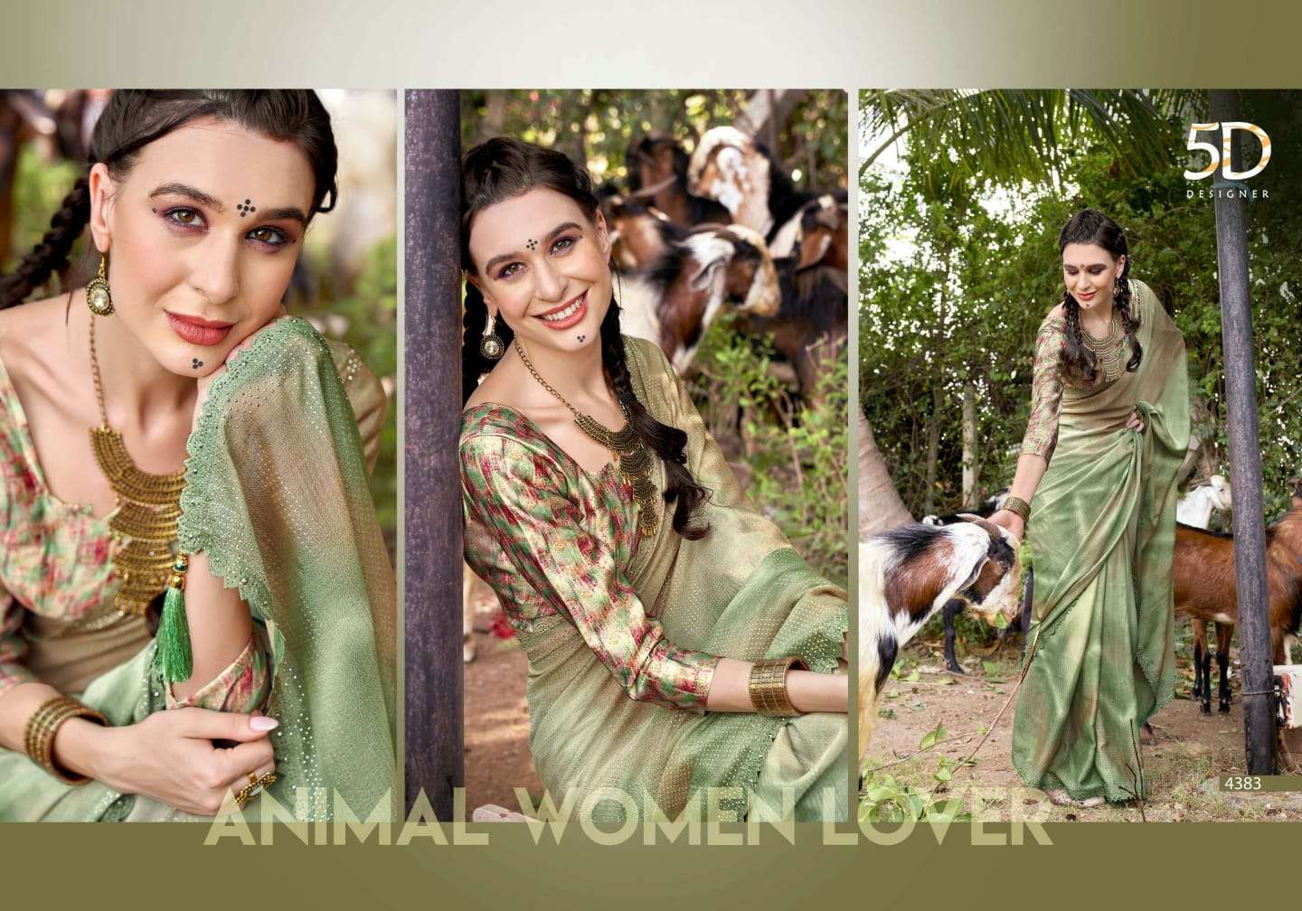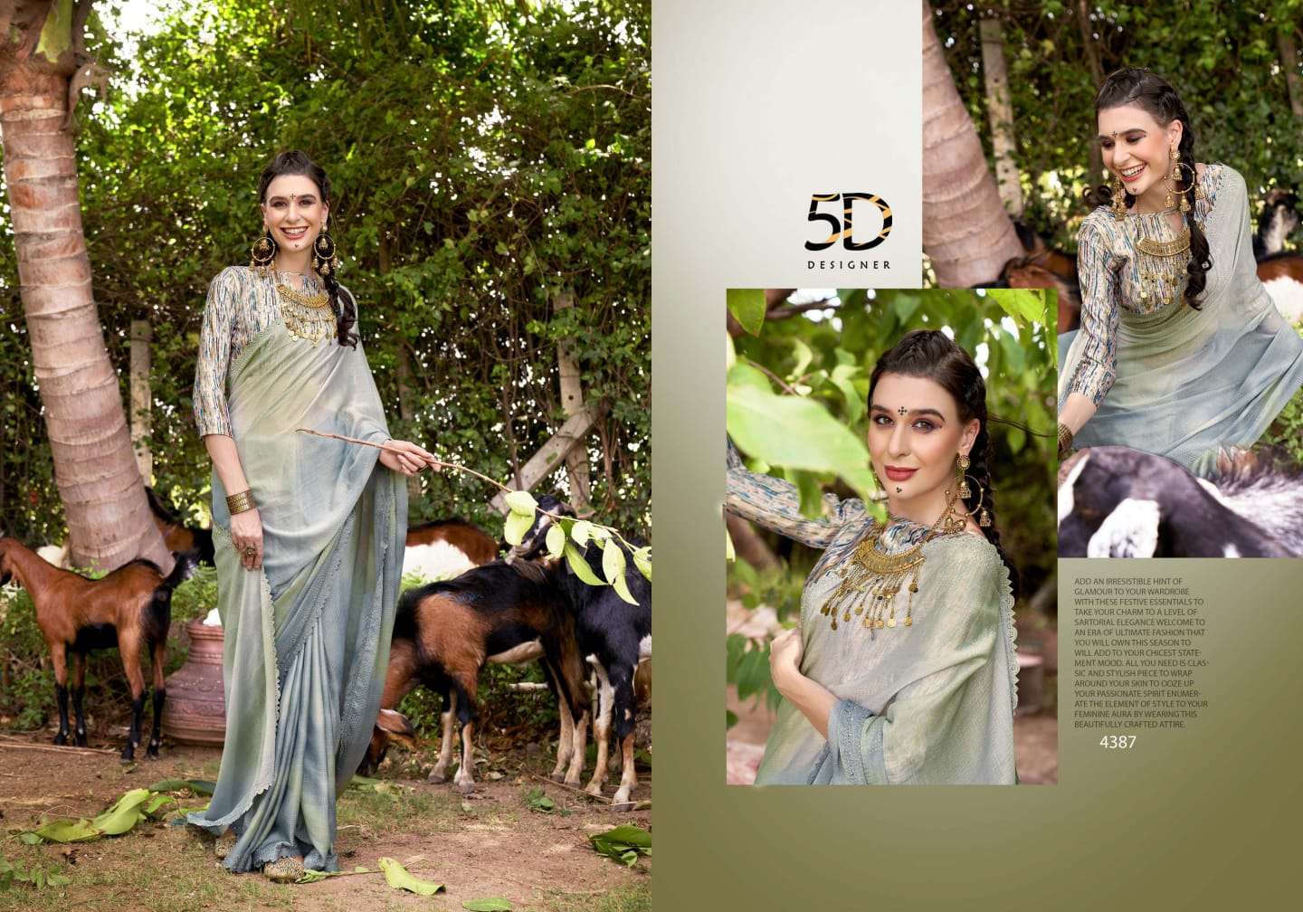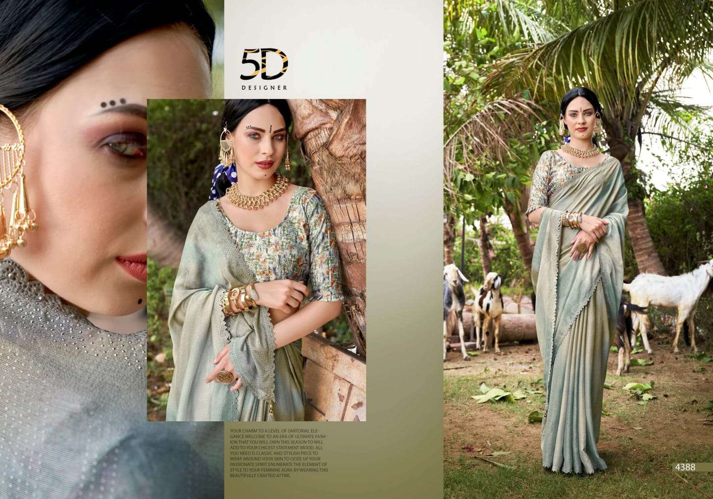 5d designer present madhumati fancy foil print with swaroski work sarees with digital blouse peice collection